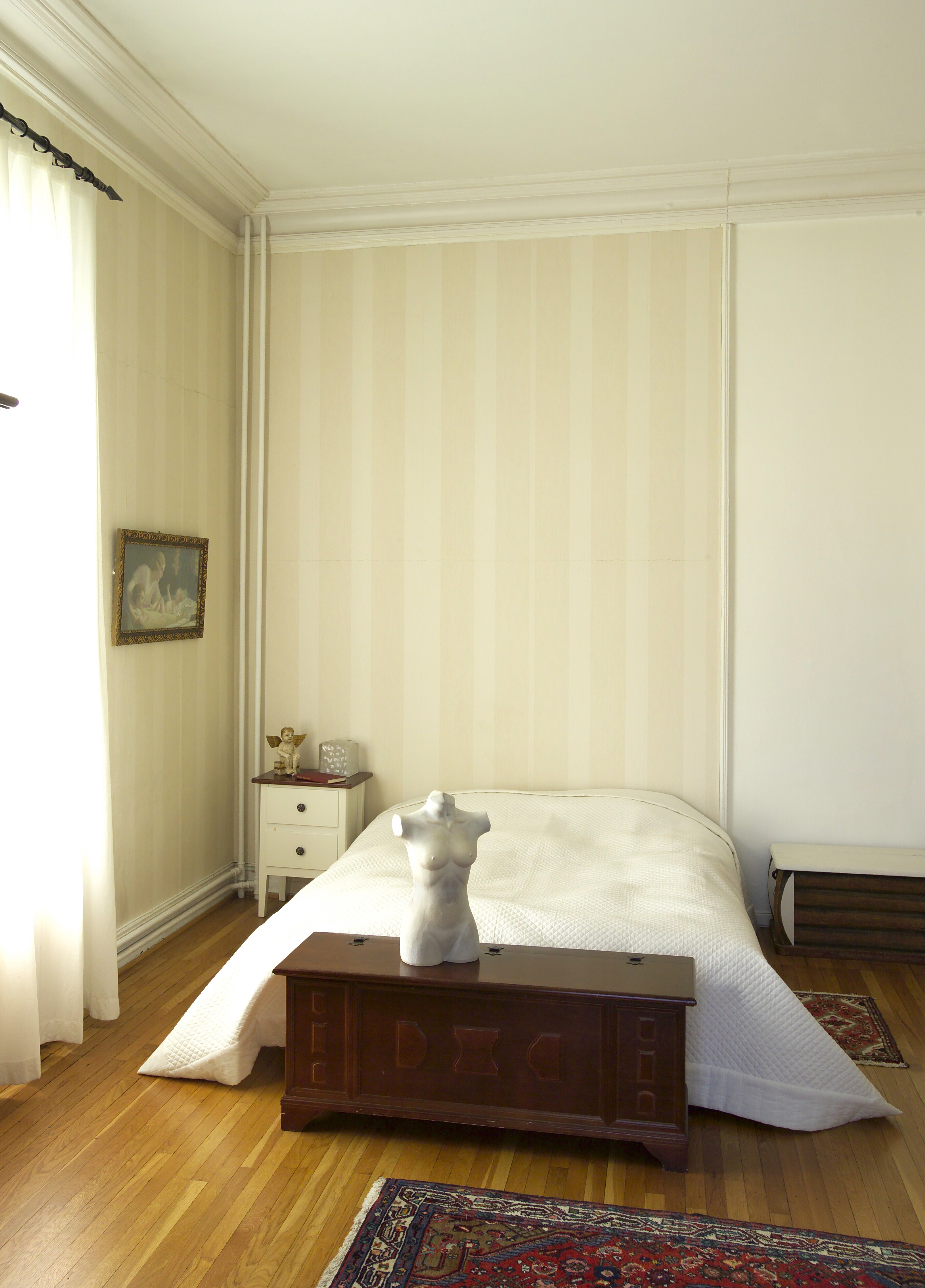 En opprydning og ommøblering gjorde rommet mer åpnet og innbydende. Ved hjelp av en spesialbygd hjørnebenk ble sitteplassene og overnattingsmulighetene beholdt, men samtidig fikk rommet større gulvplass enn før. Avlastningsbordene ble fjernet og plantene ble samlet i ett hjørne. Opprydningen ga rom til en kjærkommen arbeidsplass, men likevel økte romfølelsen.