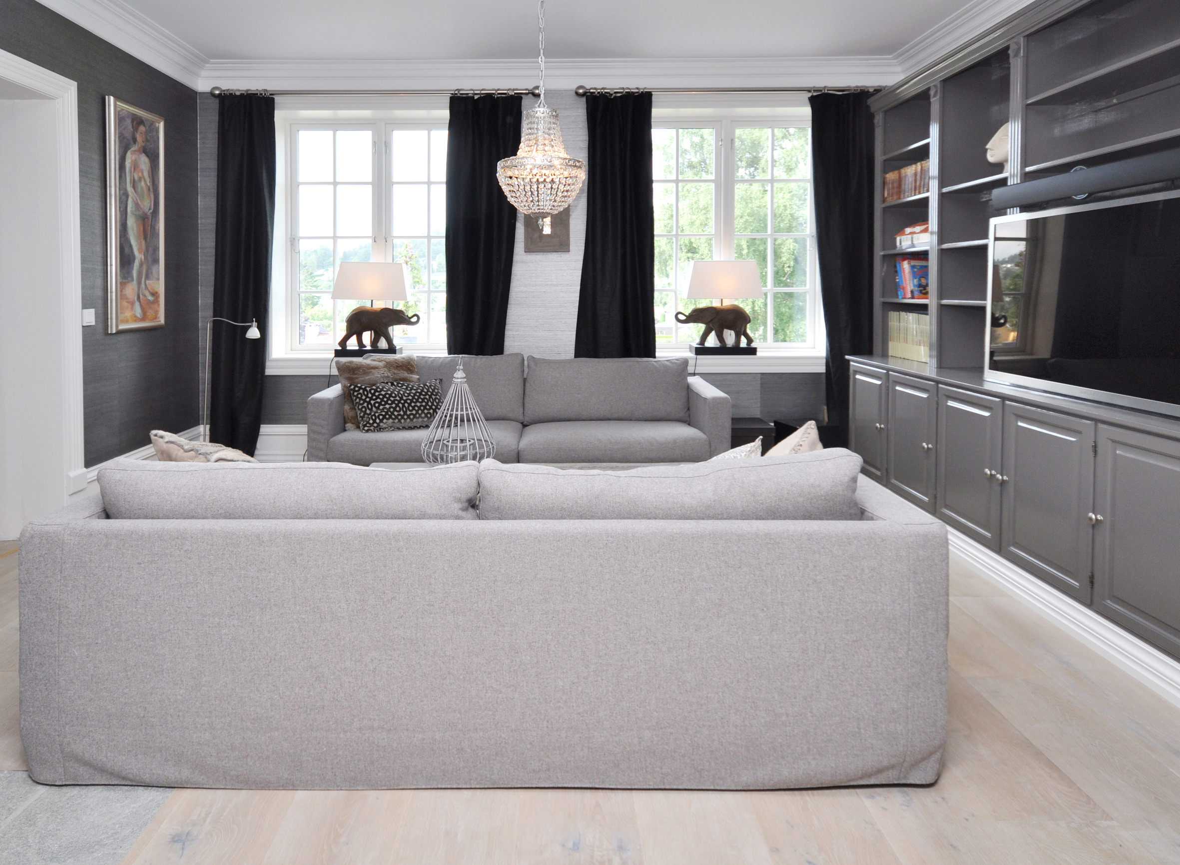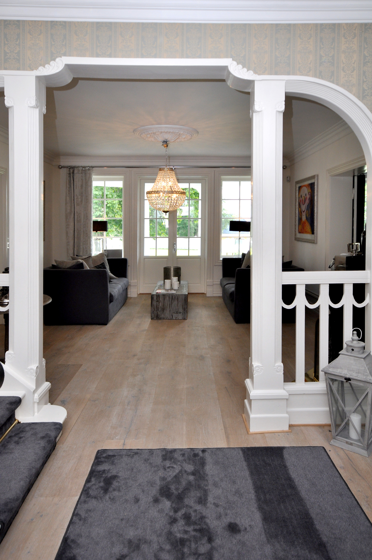 – Vi valgte tapetet først. Så var det å finne gulv. Vi ønsket en herskapelig stil, men man skal også kunne bo i huset. Vi så derfor etter en middelvei; - et stilfullt men praktisk gulv.