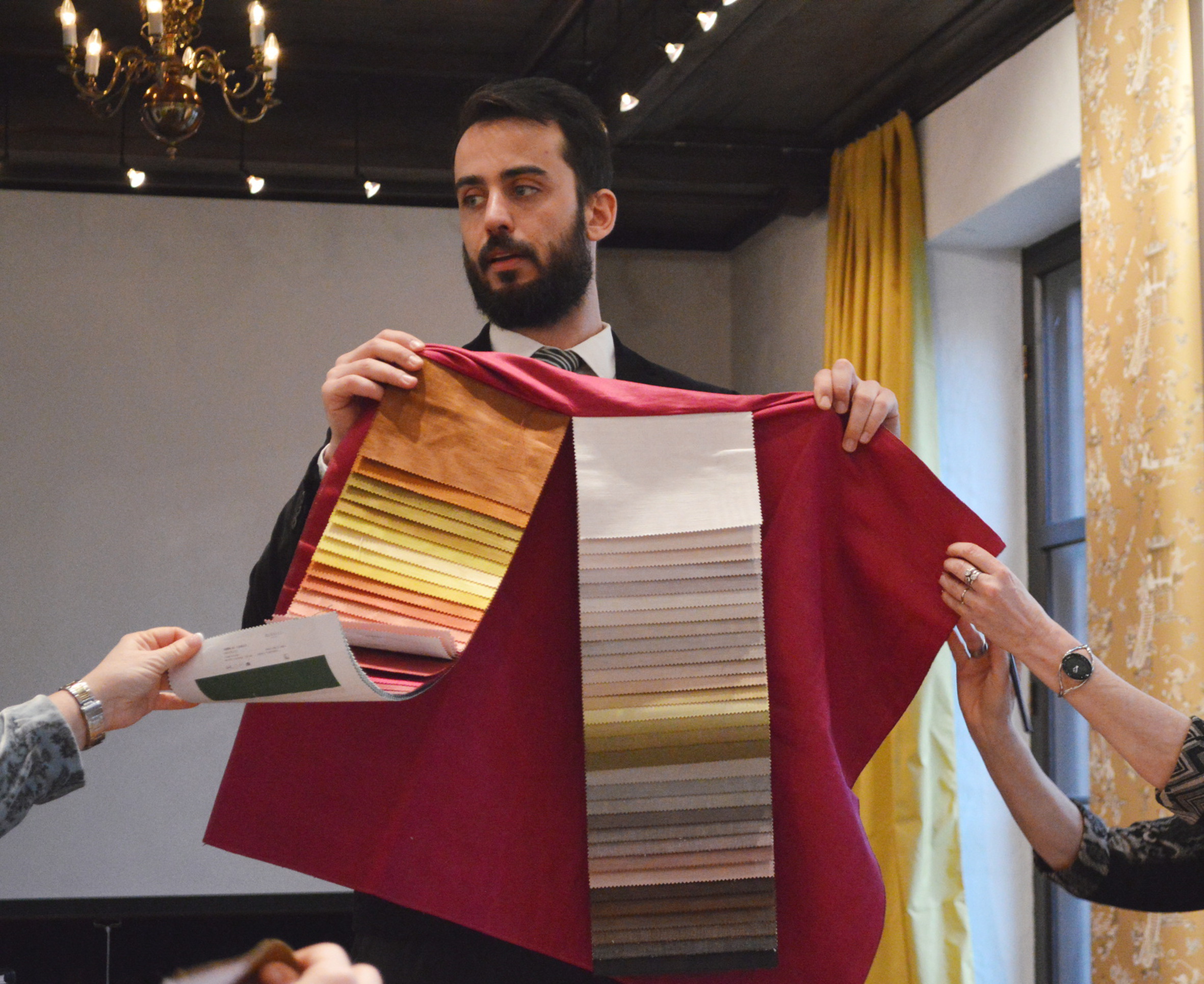 – Rubelli står for genuint håndverk. Det er mye kunnskap, fra fem generasjoner, som ligger bak arbeidet deres. I den nye kolleksjonen er det brukt mye avansert teknologi til veven, blant annet sees malingsteknikken «dripping» omgjort til vevingsteknikk. Samtidig med å bevare tradisjoner, er de både trendsettende og innovative, forteller Bolme.