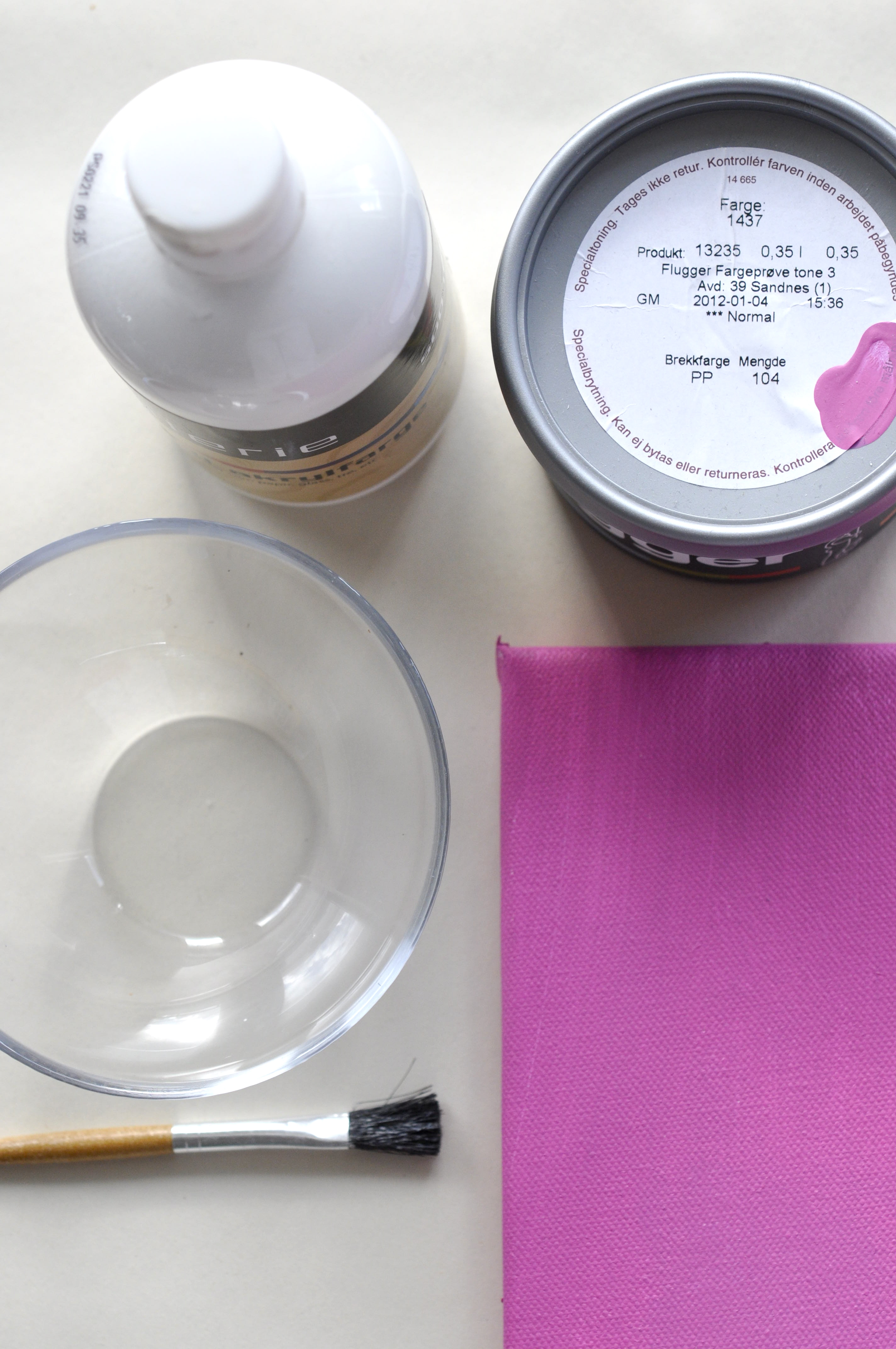 Manuela Hardy har her, i samarbeid med NIB - Norske Interiørblogger, malt et lerret som fungerer som et kunstverk på veggen. Siden det ikke var nødvendig med så mye maling, var en fargeprøve fra Flügger med enn nok. Valget falt på en frisk rosa!