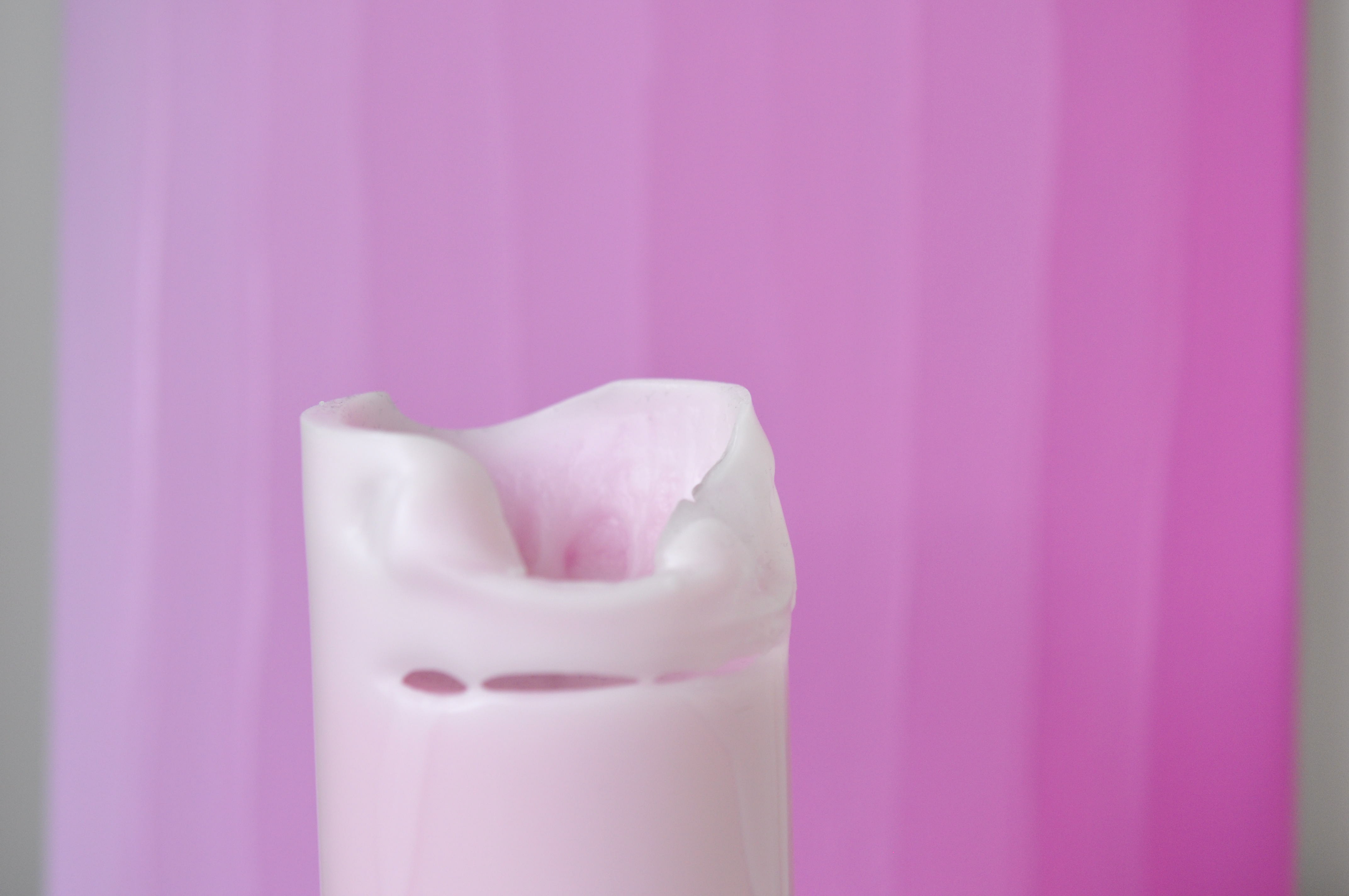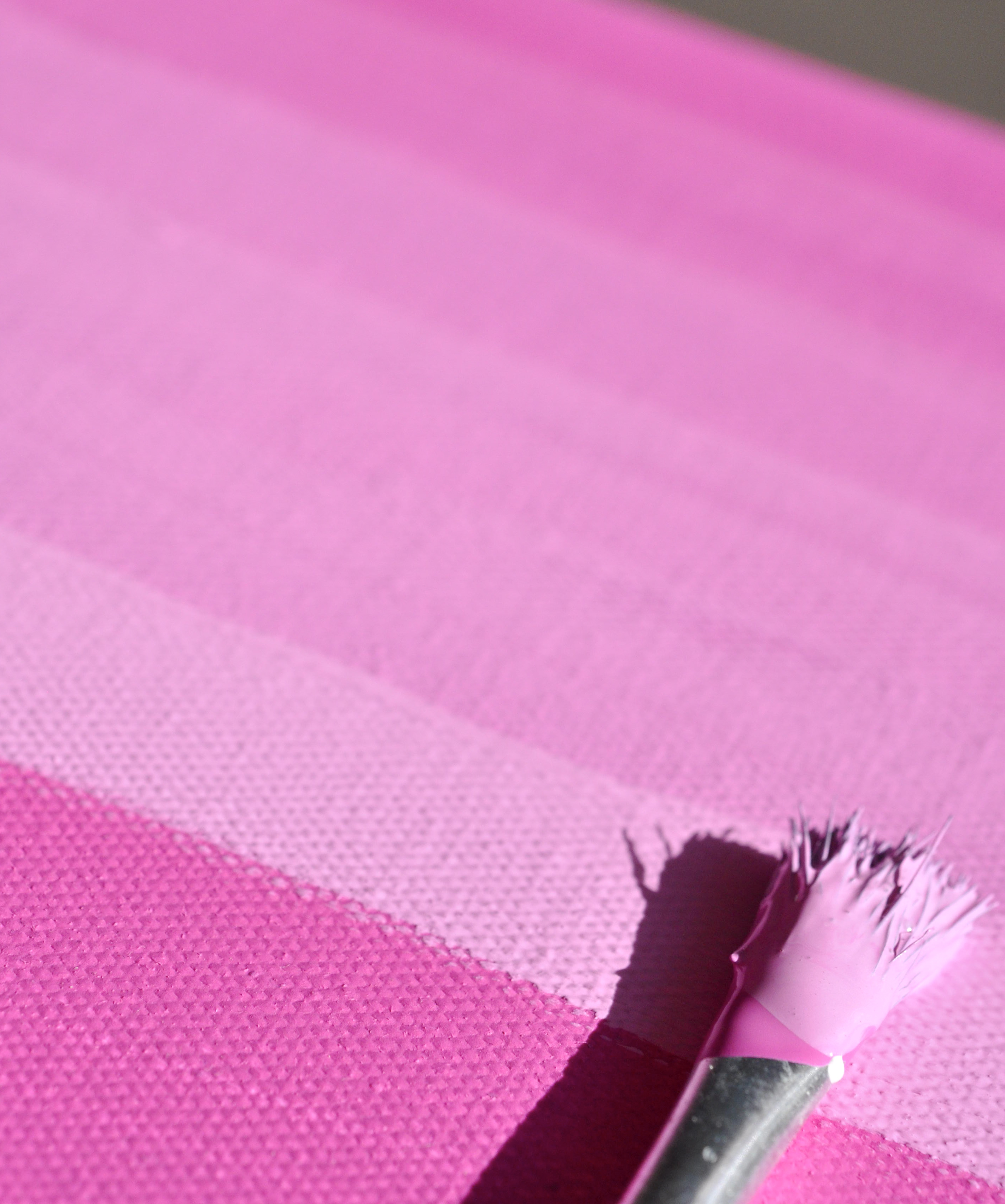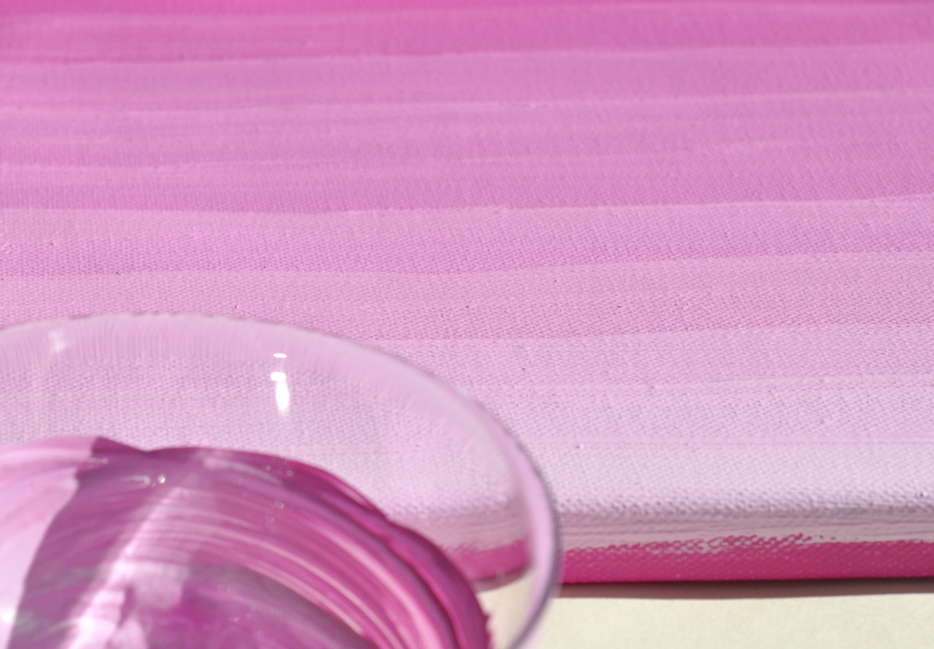 Hun startet grunnet hele flaten i den rosa hovedfargen først, for å være sikker på at fargen skulle dekke helt, og tilsatte deretter litt og litt hvit maling for hver nye rad.