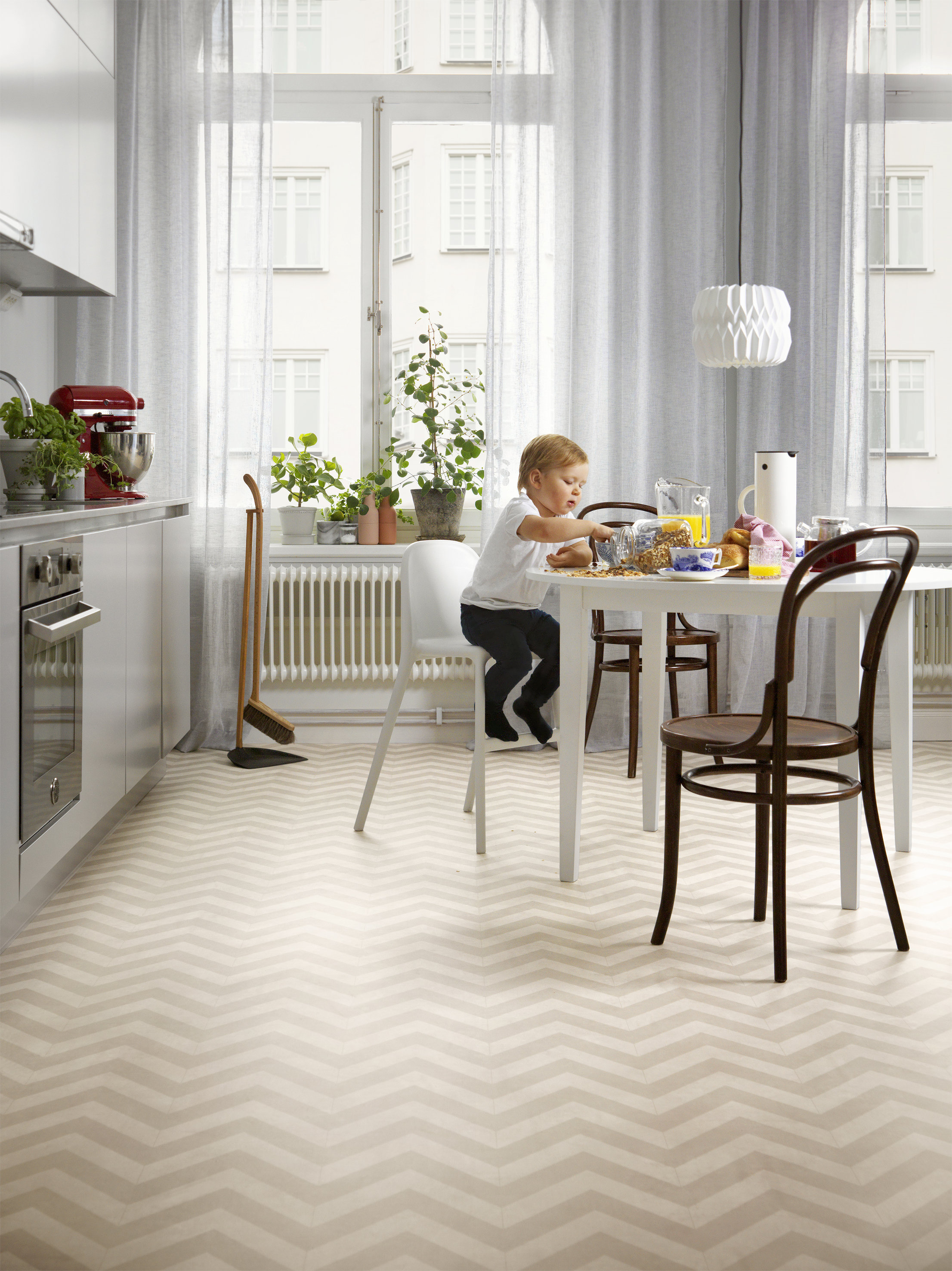 Med noen typer gulv, som klikk-linoleum fra Forbo Flooring, kan du enkelt lage mønsteret du selv ønsker, for eksempel med utgangspunkt i fiskebeinstrenden.