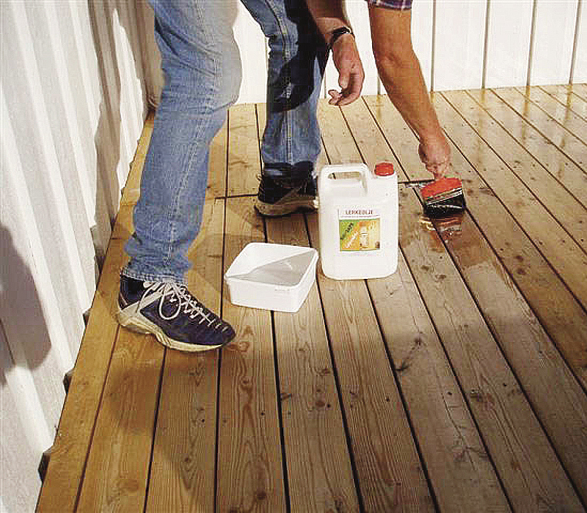Har du terrasse eller bordkledning av lerk, bør du ikke male over treet. Men du kan godt bruke en oljebeis. Det finnes også spesielle oljer for terrasser. Oljen beskytter treverket mot søl fra all den mat og drikke som vanligvis lander på gulvet i løpet av sesongen.