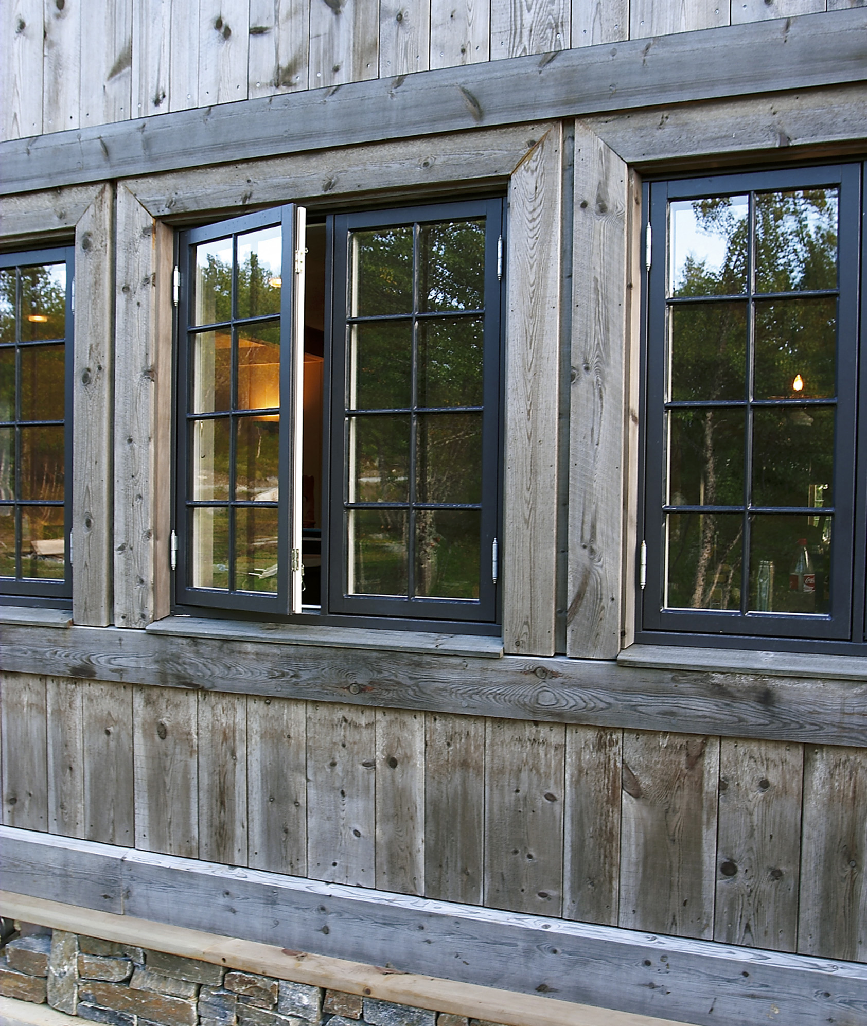 Behandling av en treoverflate med jernvitriolløsning (jernsulfat) gir etter kort tid en gråbrun til sølvgrå inntoning av treverkets overflate, lik en vind- og værutsatt yttervegg. Takutspring og lignende gjør at graden av påvirkning av sol og regn vil variere på veggen, og dette kan gi veggen et skjoldet utseende til å begynne med.