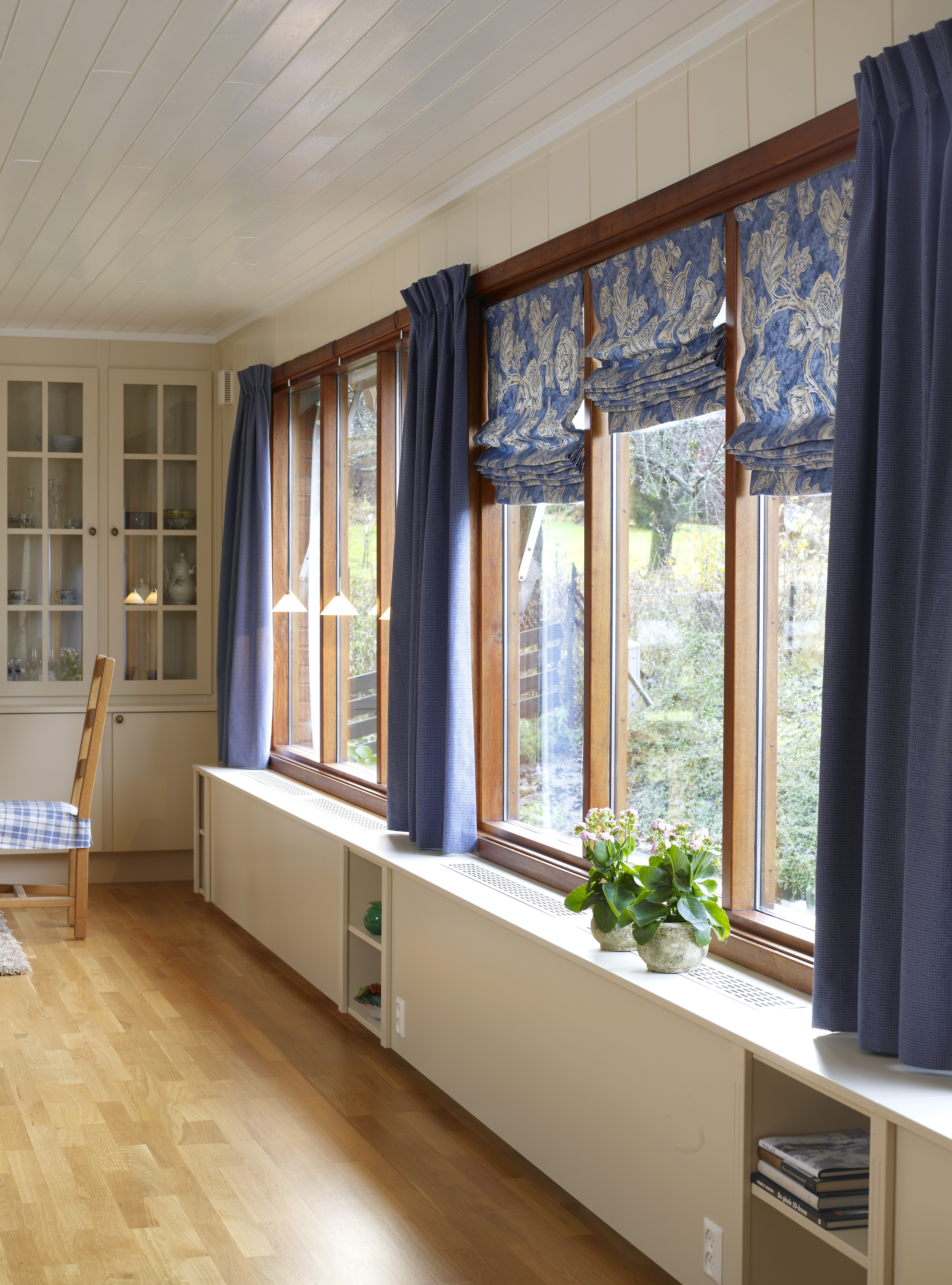Liftene bør henges slik at de akkurat dekker lysåpningen. Med denne løsningen kan du også ha sidegardiner som dekor.
