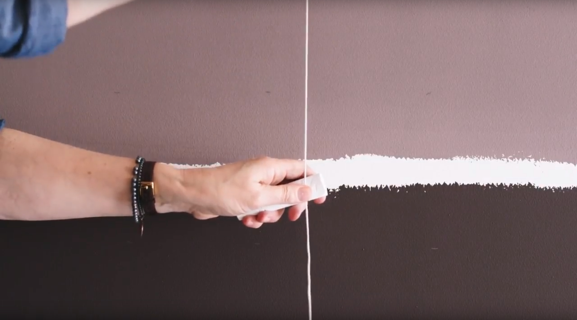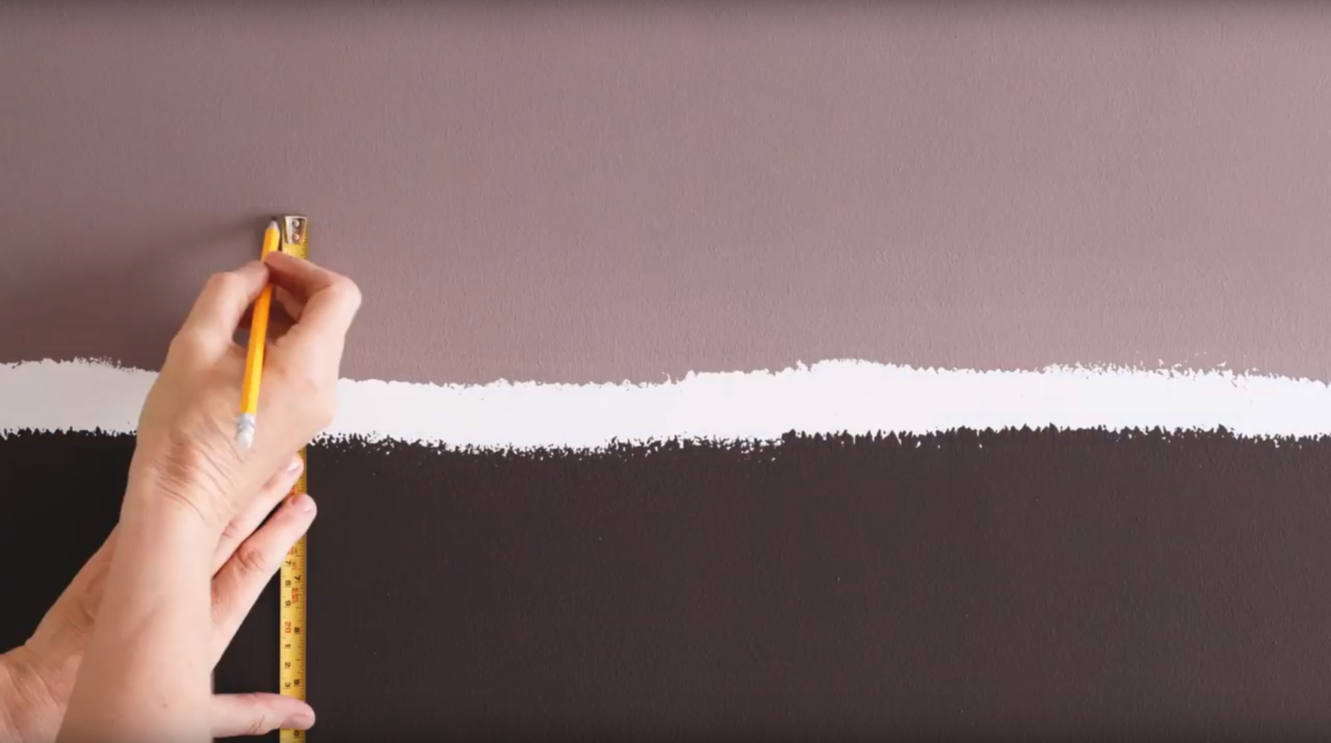 Tegn opp to parallelle, stiplede linjer langs veggen der du vil at skillet skal gå. Bruk målebånd og blyant.