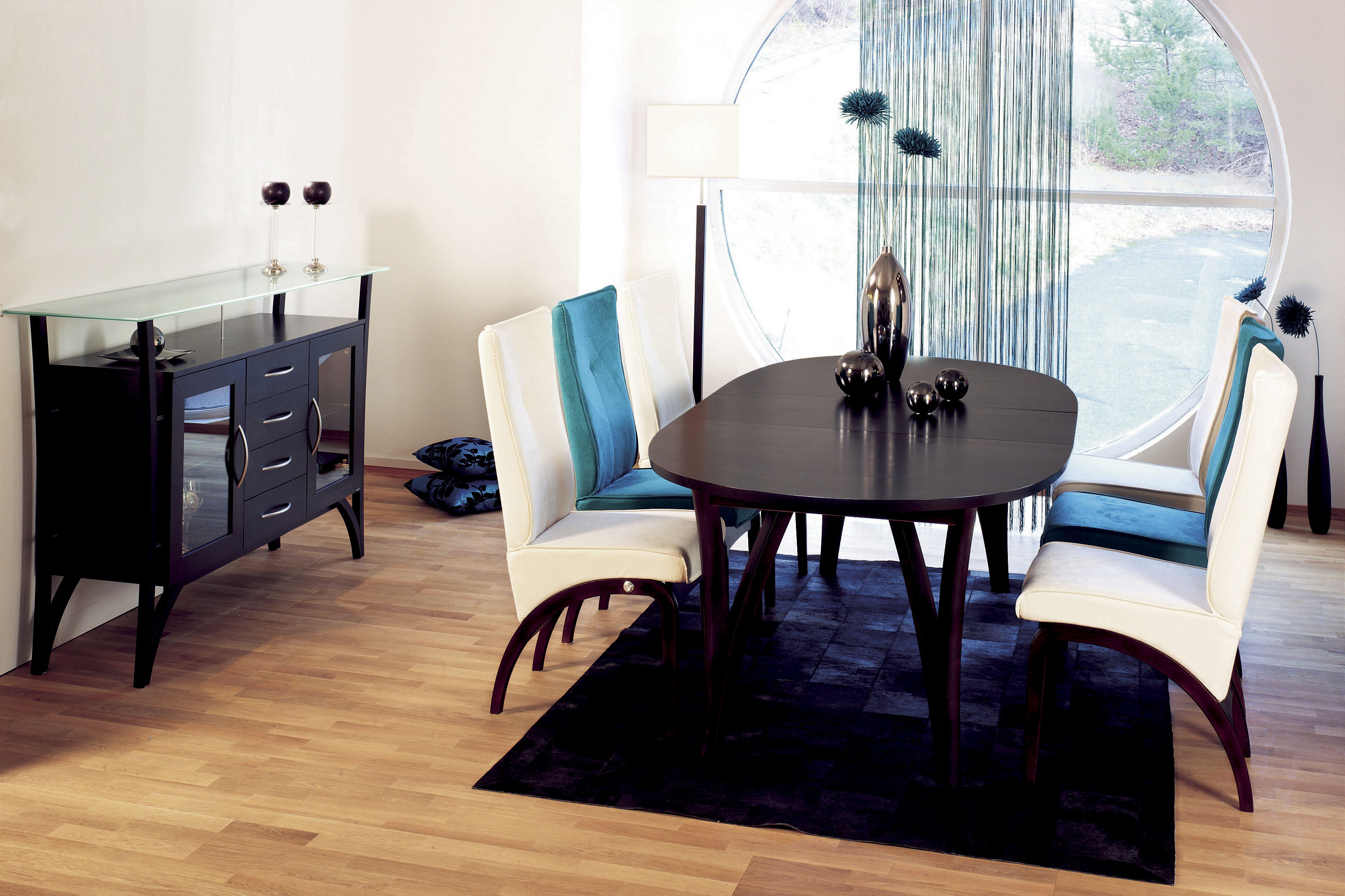 De mørke tekstilene får selskap av mørkt treverk i bord, stoler, sofabein og reoler. Wenge er et nesten sort afrikansk treslag, som er midt i skuddet i den mørke interiørtrenden, men også eik beises for å ligne på wenge. Det helt mørke, nesten sorte treverket blir brukt i alt fra sofabein til salongbord, reoler og stoler.