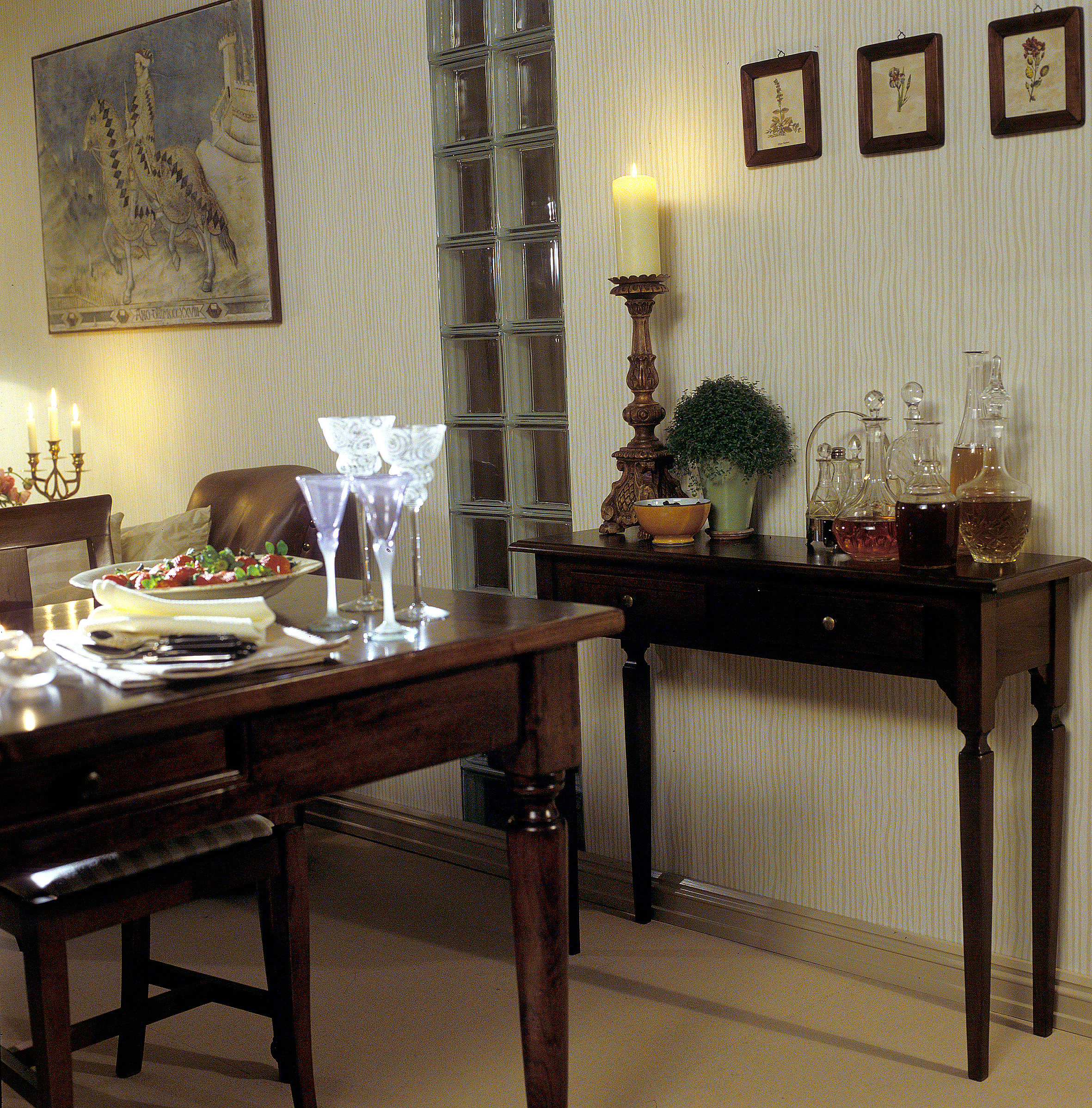 Klassisk og elegant IFI.NOPublisert 14.04.2002 Her har tradisjonelle møbler fått nye og lysere omgivelser. Det er brukt en naturfarge-skala fra rent hvitt, via krem og beige, til mørk brunt og sort. De myke overgangene i fargene og mye bruk av tekstil på vegg, gulv og gardiner gjør rommet varmt og lunt. Innhold Følg Dele Innhold Følj Følg ifi.no på Facebook, TikTok og Instagram.Registrer deg her og motta vårt nyhetsbrev, med nye artikler og nyttige tips 2-3 ganger i måneden. Motta nyhetsbrev Dele Send til epost Cancel Send Annonse Mørke og polerte møbler befinner seg i lyse og lette omgivelser. Eksklusive og gode natur-materialer er valgt, og de skal gjerne være enkle i utførelsen. Silke brukes mye, men her er ikke plass til kompliserte gardinarrangement. Tekstiler er viktig, men det betyr ikke at det må være mengder av dem. Myke tepper, gjerne heldekkende, og nye tapeter i tekstil hører med. Kremfargene står godt i den klassiske stilen. Det samme med okerlignende toner og dempede rødtoner. Glem ikke den lille kontrasten - som gjerne kan være sterk orange, rødt eller cyklamen. Annonse Dette har vi brukt:Gulv: Palette 2000/542962 Linen, InterfaceVegger: Omexco/Giverny/GYA 106, InteriøragentureLister: Ready S 2010-Y40R glans 40, NordsjöDør, vindu: Ready 1010-Y30R, glans 40, NordsjöGardin: UtgåttGardinstang: 802 YA Sthal 10 mm, Norsk Silent GlissPuter: UtgåttStoltrekk: UtgåttLenestoler, pledd, vaser: R.O.O.MBord og stol i jern: Martin OlsenAlle spisstuemøbler, bilder: Toscana MøblerLamper, småting: IKEA Vær klar over at fargene på skjermen avviker fra originalene.Enkelte produkter kan være utgått.Produkter som ikke er listet opp i fasit er privat eie. Les også: Legg til huskeliste Se huskelisten din Hei, denne artikkelen er over 2 år gammel, og kan inneholde utdatert informasjon. Annonse Siste artikler Bli kvitt knirk i gulvet Fargerike lanserer Årets Farge 2026: Havperle Kald hytte, varm peis, unngå sprengfyring Tapet tar plass i trendbildet