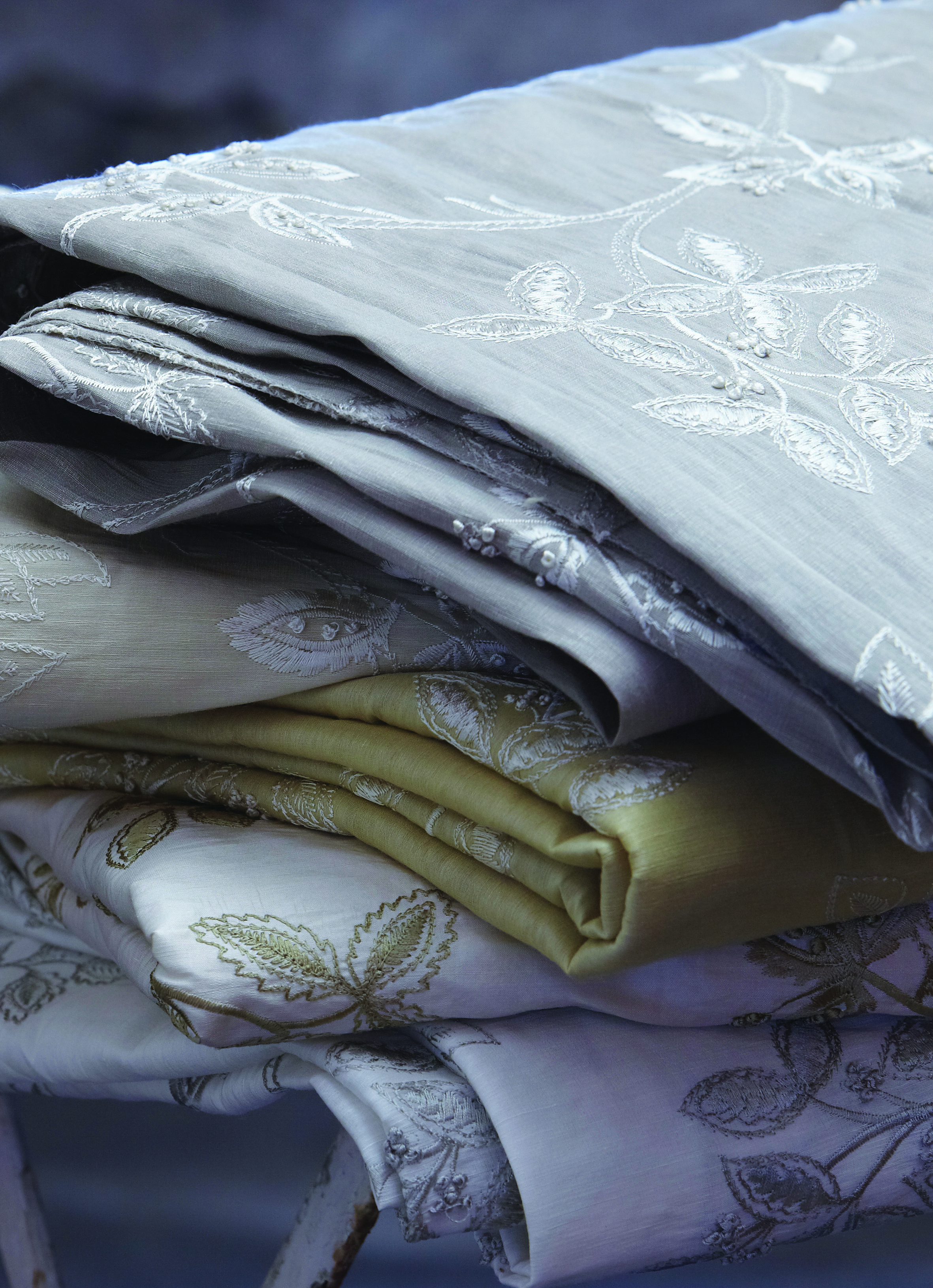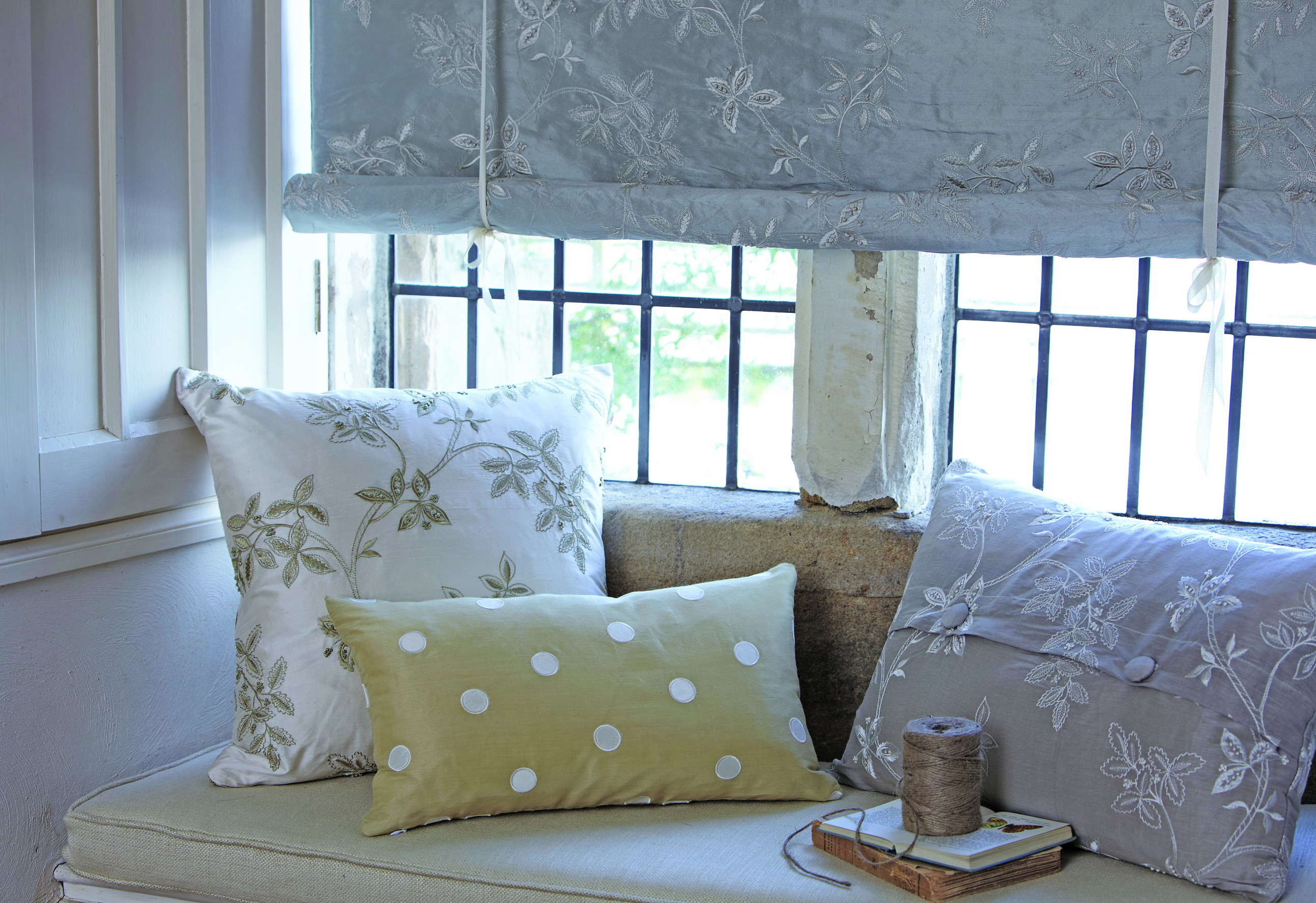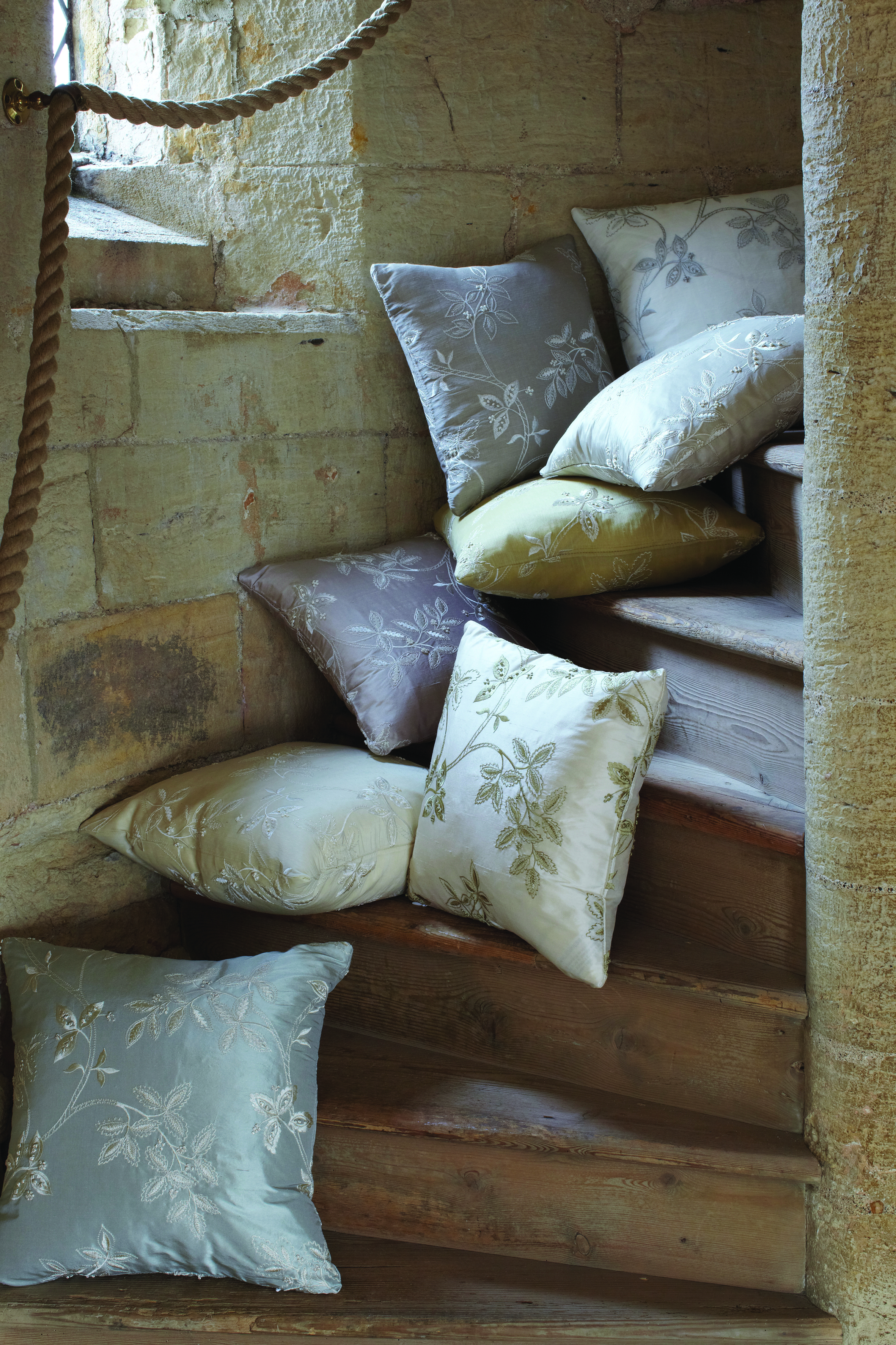 Nå kan vi omramme vinduet med silke og linstoff i klassisk engelsk design, og matche med puter og lampeskjermer. Alt med nydelige broderier og i delikate, jordnære farger. Kvalitetsprodusenten James Hare, introduseres nå i Norge av Green Apple, med kolleksjonen Westbury Silks som består av stoffer egnet for gardiner, lifter, persienner, samt puter, lampeskjermer og veggtrekk.
