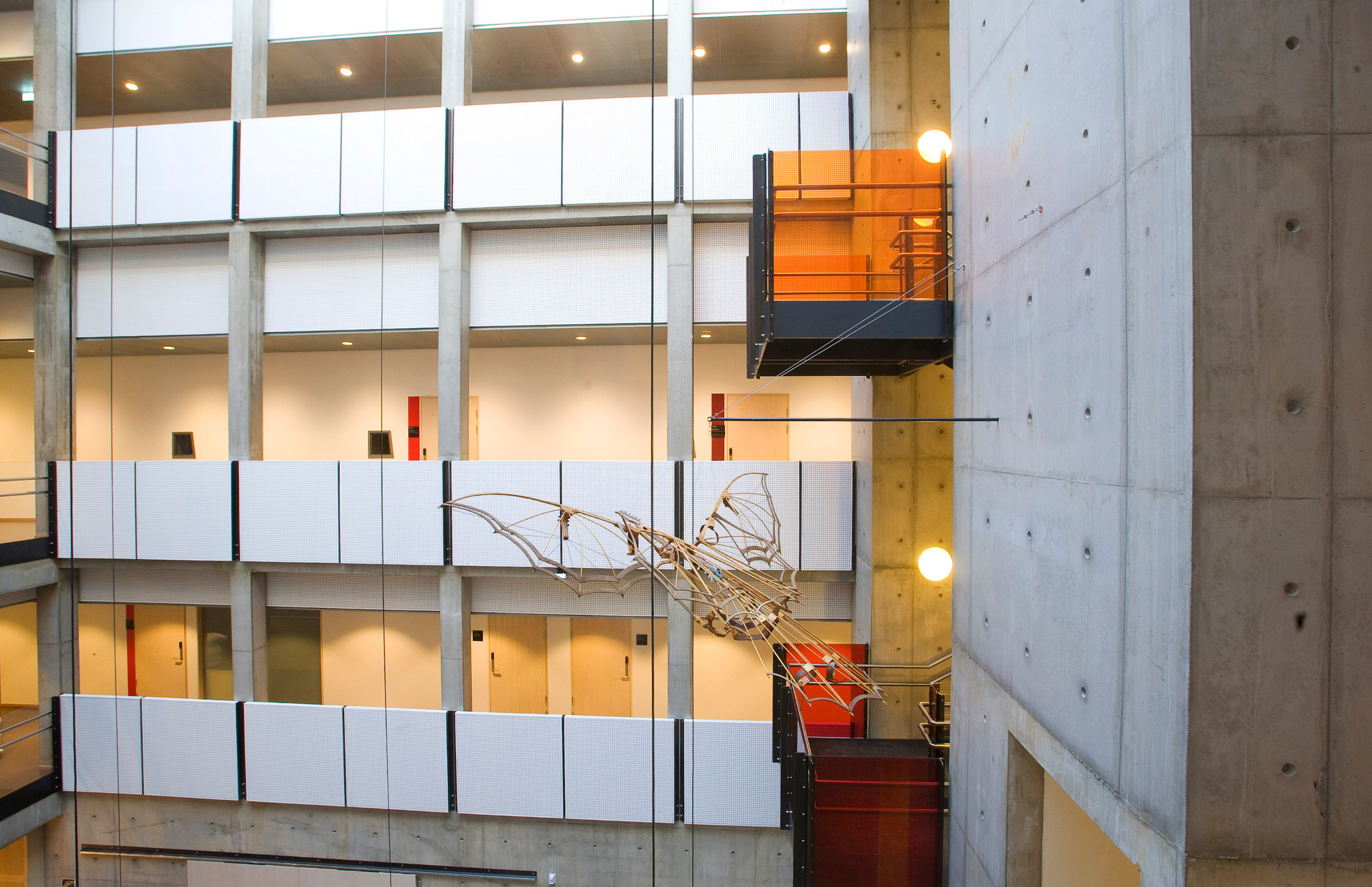 Av de store mengder betong som er brukt – 27.000 kubikkmeter tilsvarende 4.500 lass – finner vi hovedsakelig de synlige flatene i administrasjonsdelen, der konserthusets ansatte har sine arbeidsplasser.
