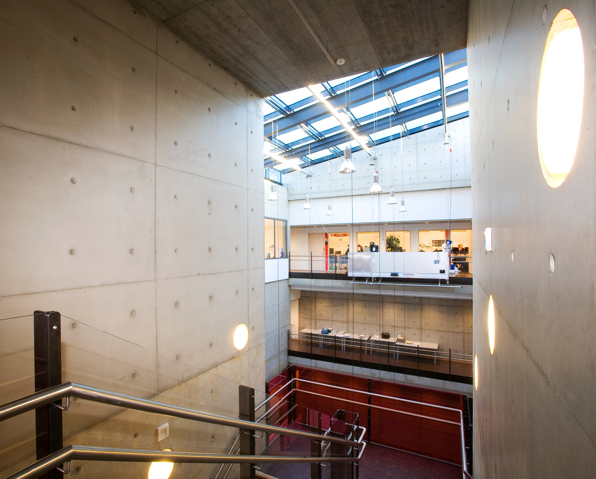 Der har arkitekten valgt å beholde betongen som den er. Behandlingen er usynlig for det blotte øyet.
