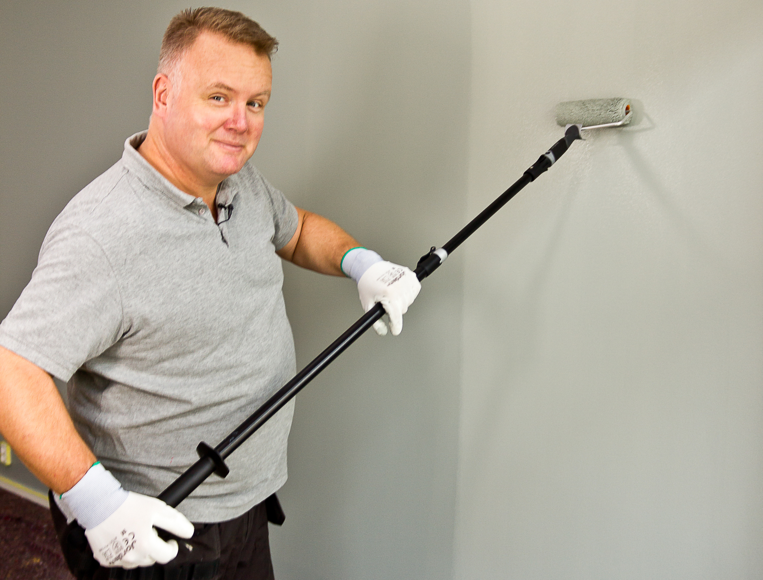 – Rullen skal peke i den retningen du maler. Hvis kroppen er plassert på feil side av skaftet og bøylen peker i motsatt retning, vil trykket på rullen bli ujevnt og du kan risikere å presse rullen av bøylen, sier han.