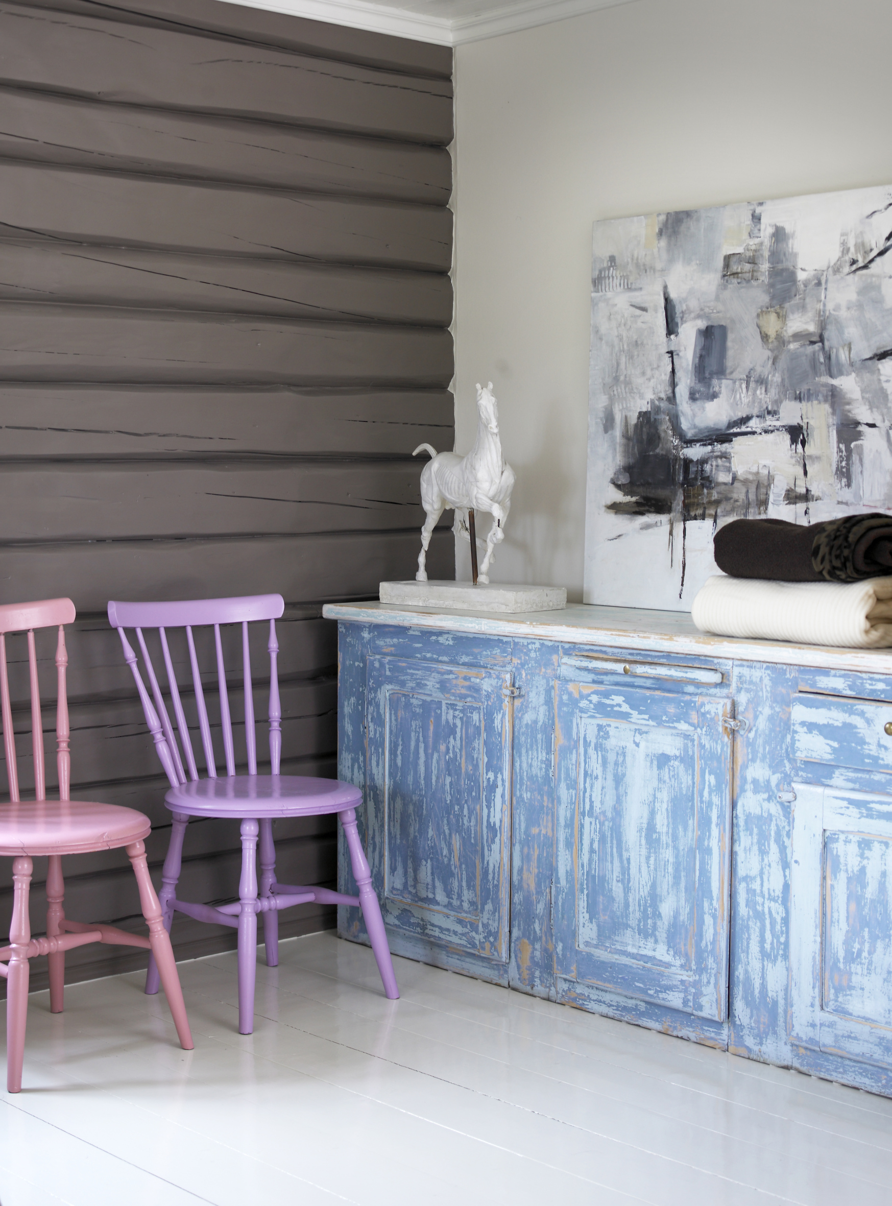 Her har vi samlet et knippe bilder, fra gamle, nyoppussede hus, hvor vegger fra langt tilbake i tid møter både panel og slette vegger, med maling og tapet.