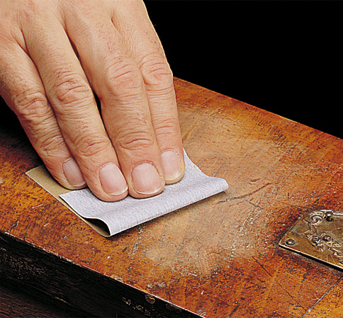 2. Etter ca. 3 timers tørk mellomslipes det lett med poleringsull nr. 0000.