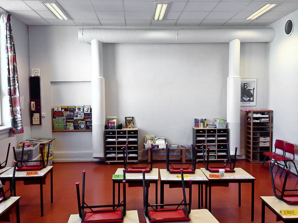 – Dagen etter fant kontaktlærer alternative undervisningsrom, slik at malerne skulle slippe å få mange små hjelpere, og veggen ble malt med to strøk i fargen "Glitre", en gul farge som inspirerer til ro og læring, forteller han.