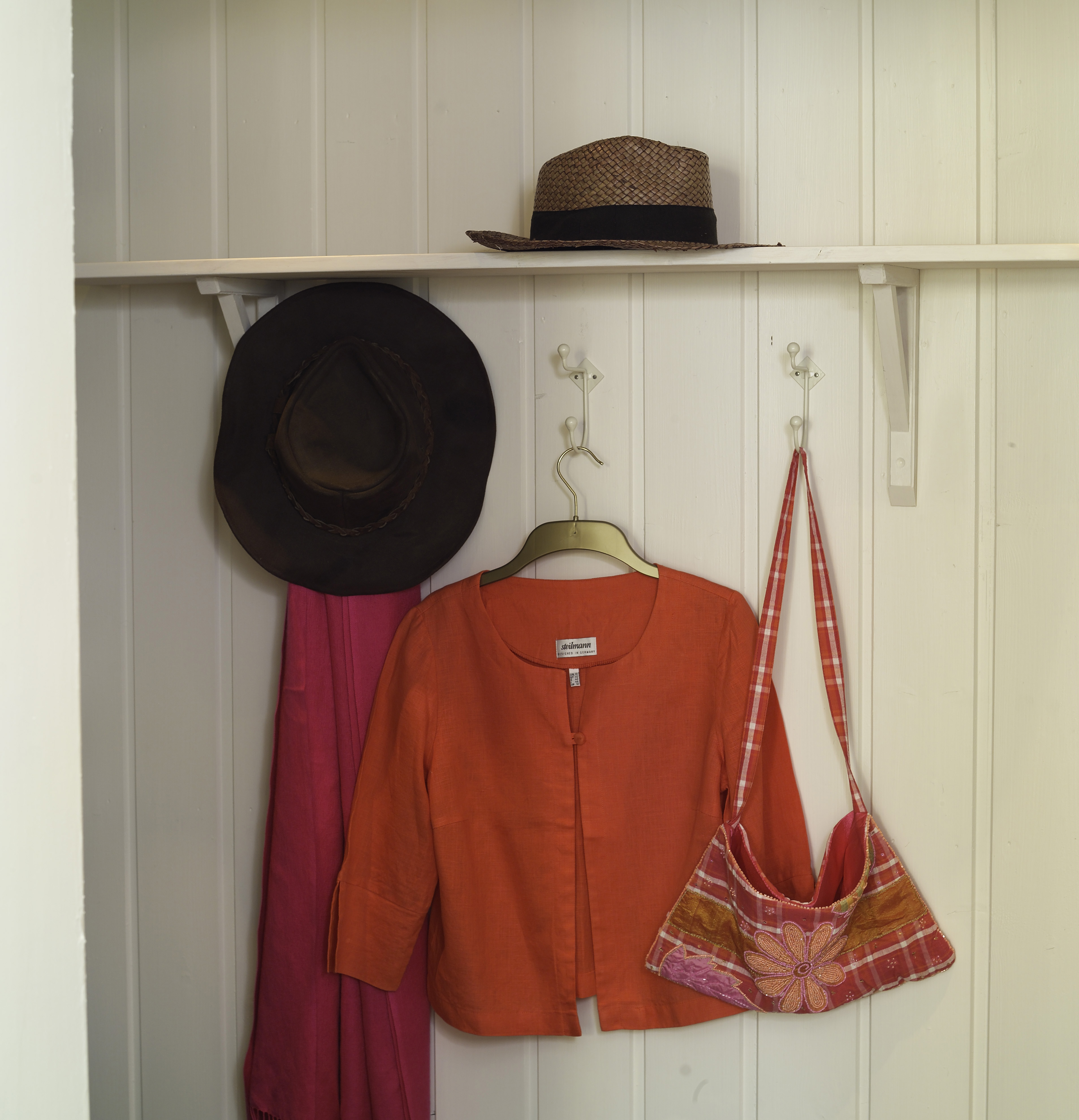 seg med knagger. I tillegg monterte interiørkonsulenten en lang hattehylle.