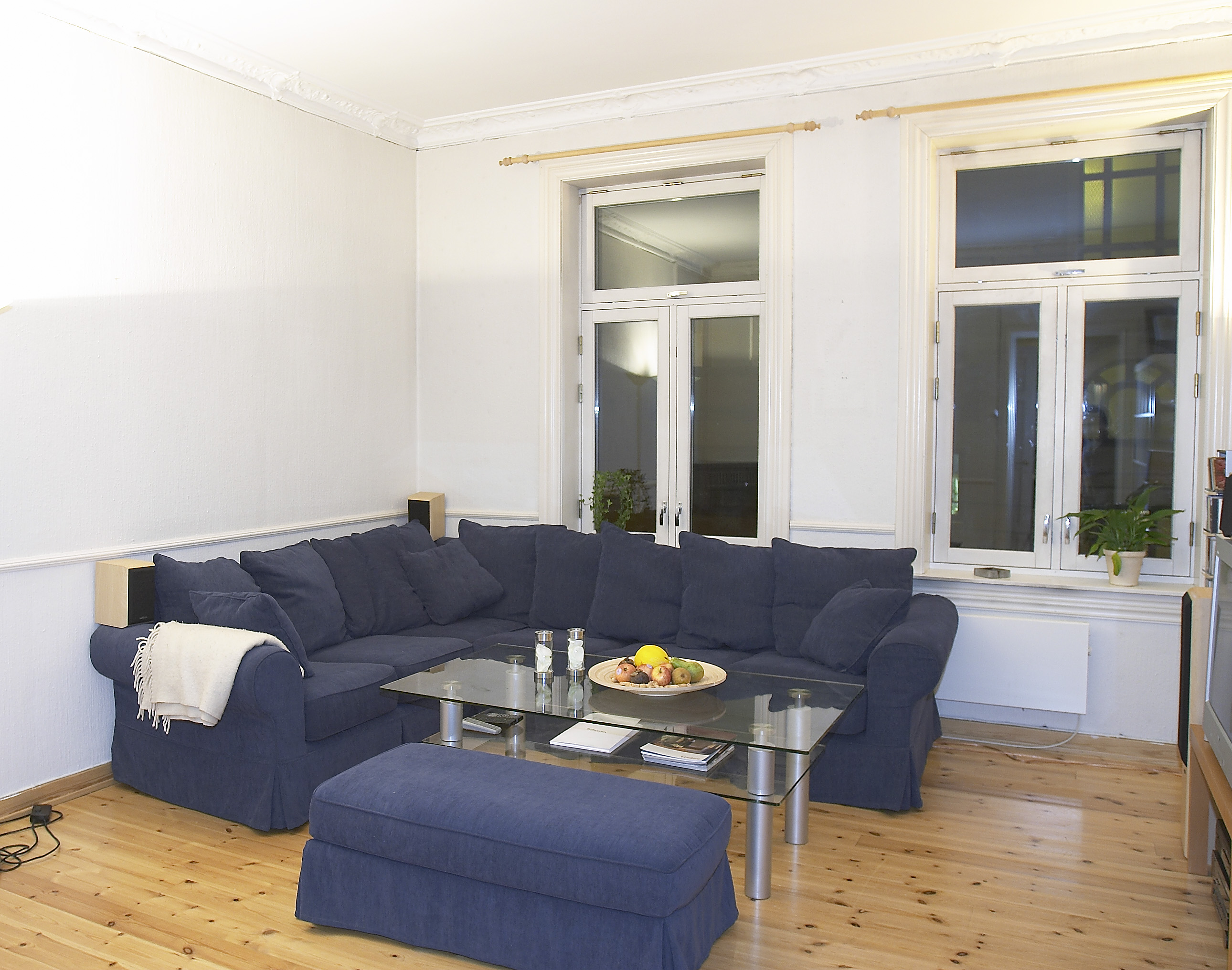 store vinduer i stuen gjør rommet lyst og luftig. De nye, lyse veggene