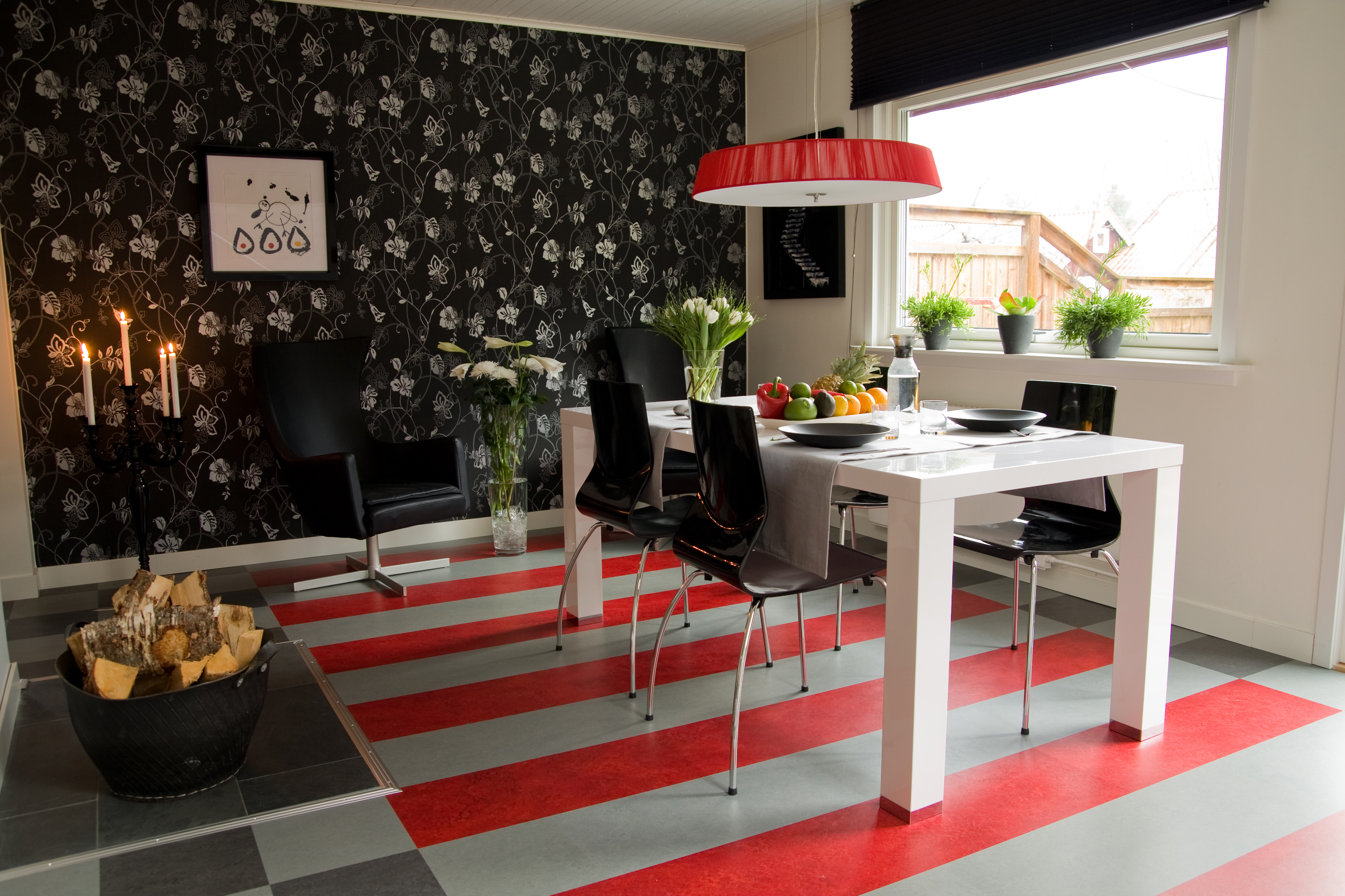 I europeiske land, som for eksempel Nederland og Frankrike, ser man også at flere kaféer og butikker velger linoleum og gjerne i litt friske farger som oransje, blå grønn og turkis. I Norge er det grått og beige som selger best - i hvert fall ennå.