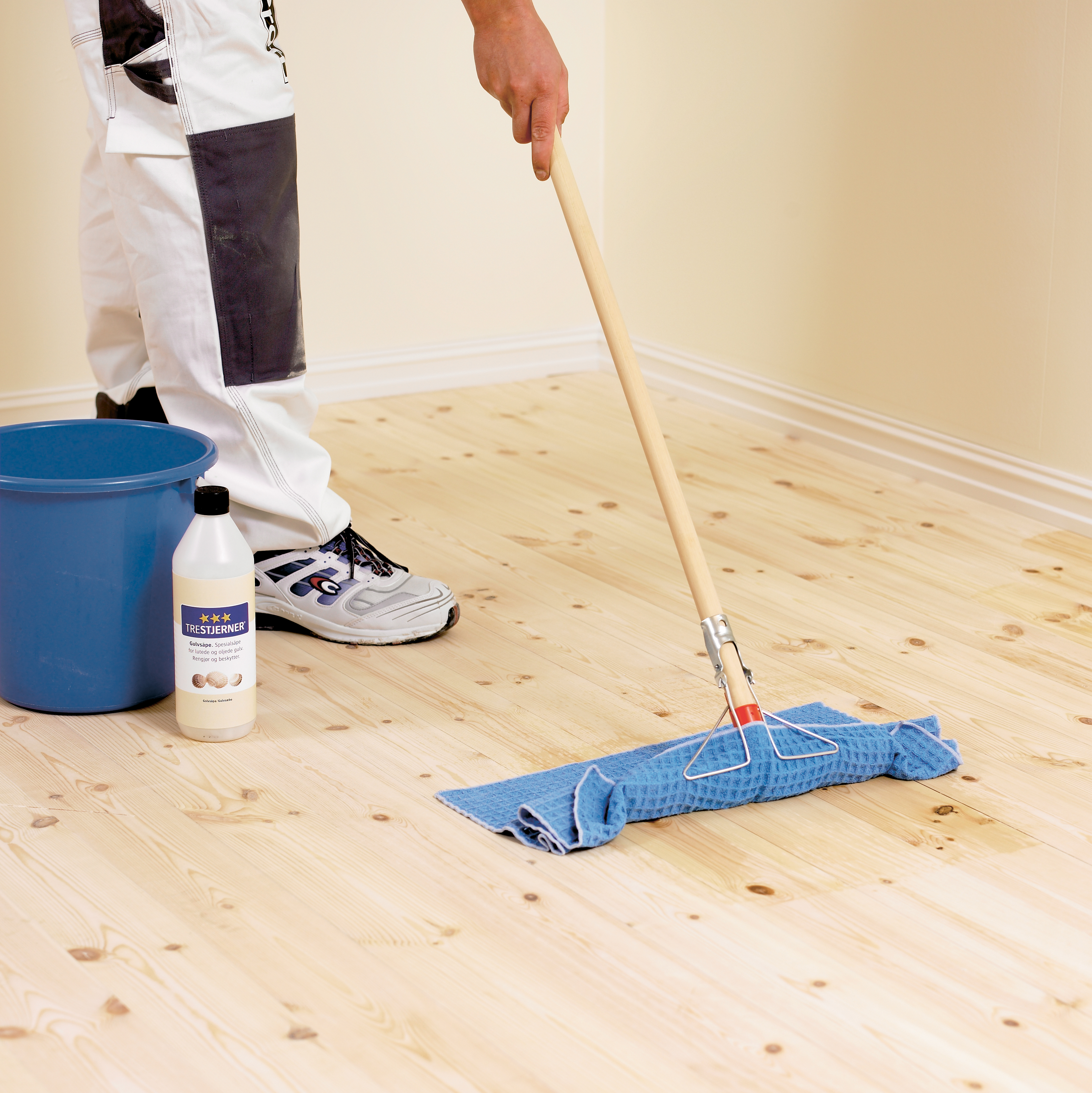 Rens først gulvet med trerens. La flaten tørke.