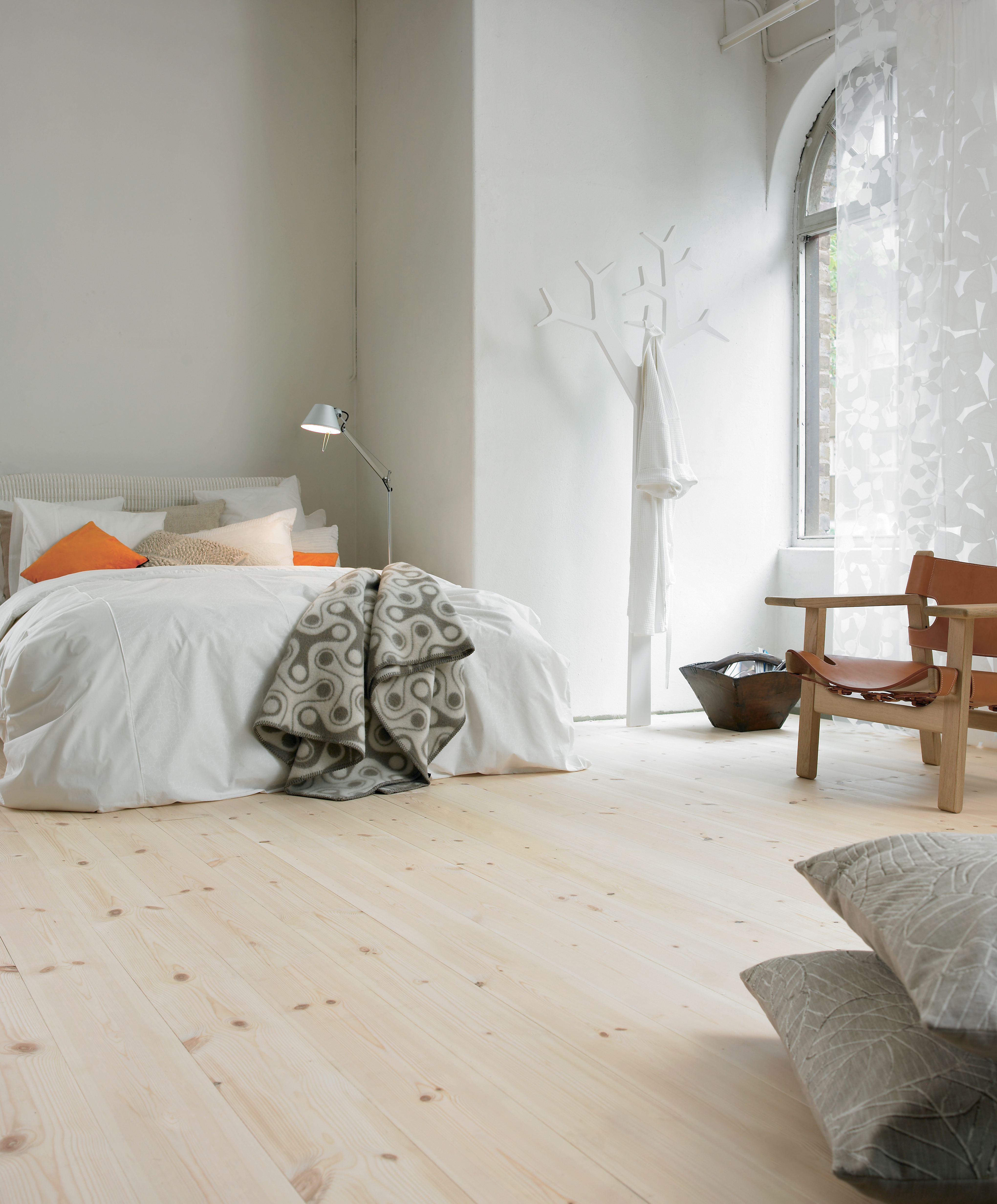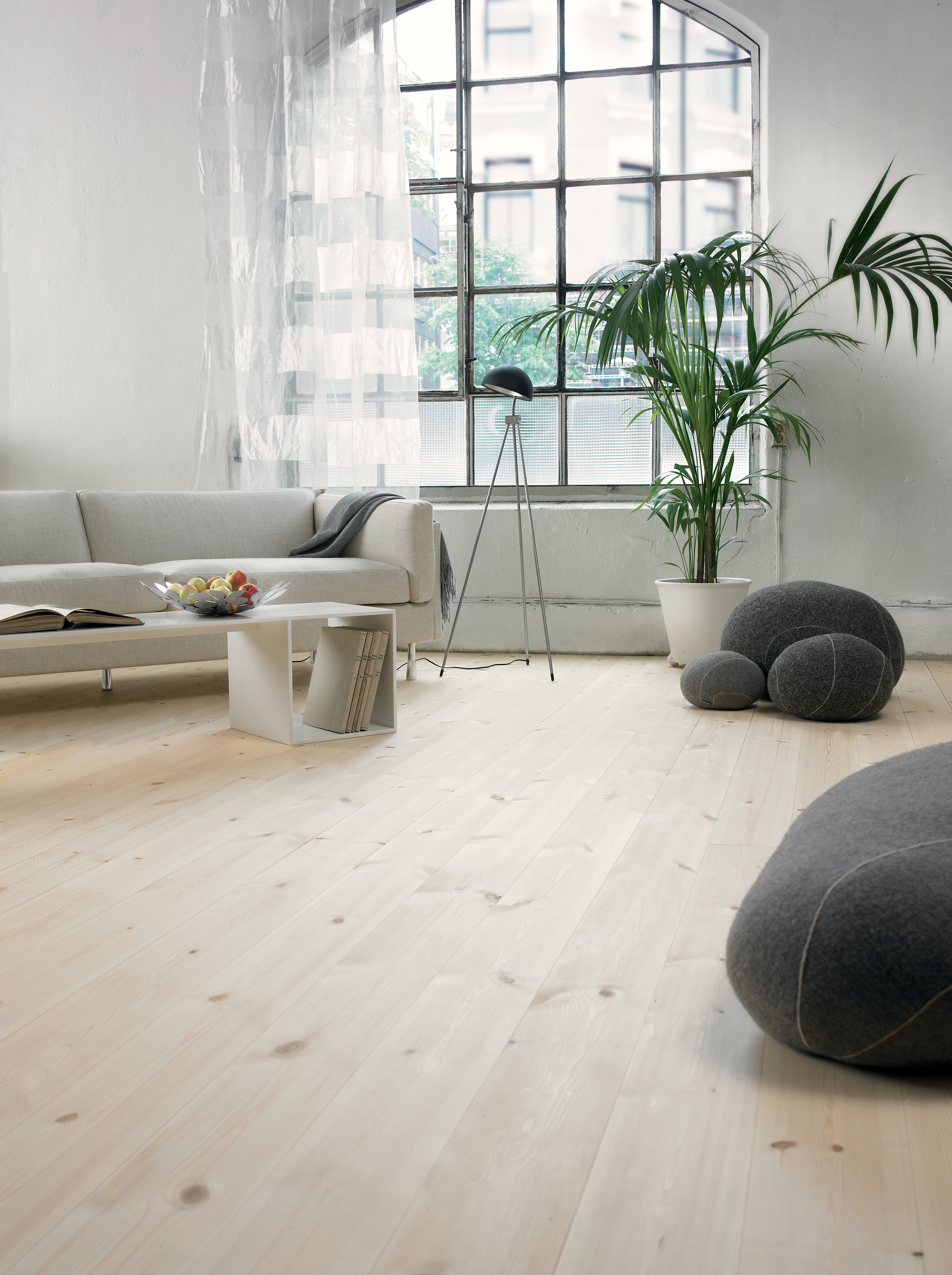 Etterbehandle gulvet med Gulvsåpe eller olje. Gulvsåpe blandes ut i vann etter det blandingsforhold produsenten anbefaler, og vaskes på gulvet i treets lengderetning. Vri opp kluten og tørk godt over. Gjenta behandlingen for best mulig beskyttelse. Treolje påføres etter produsentens anvisninger.
