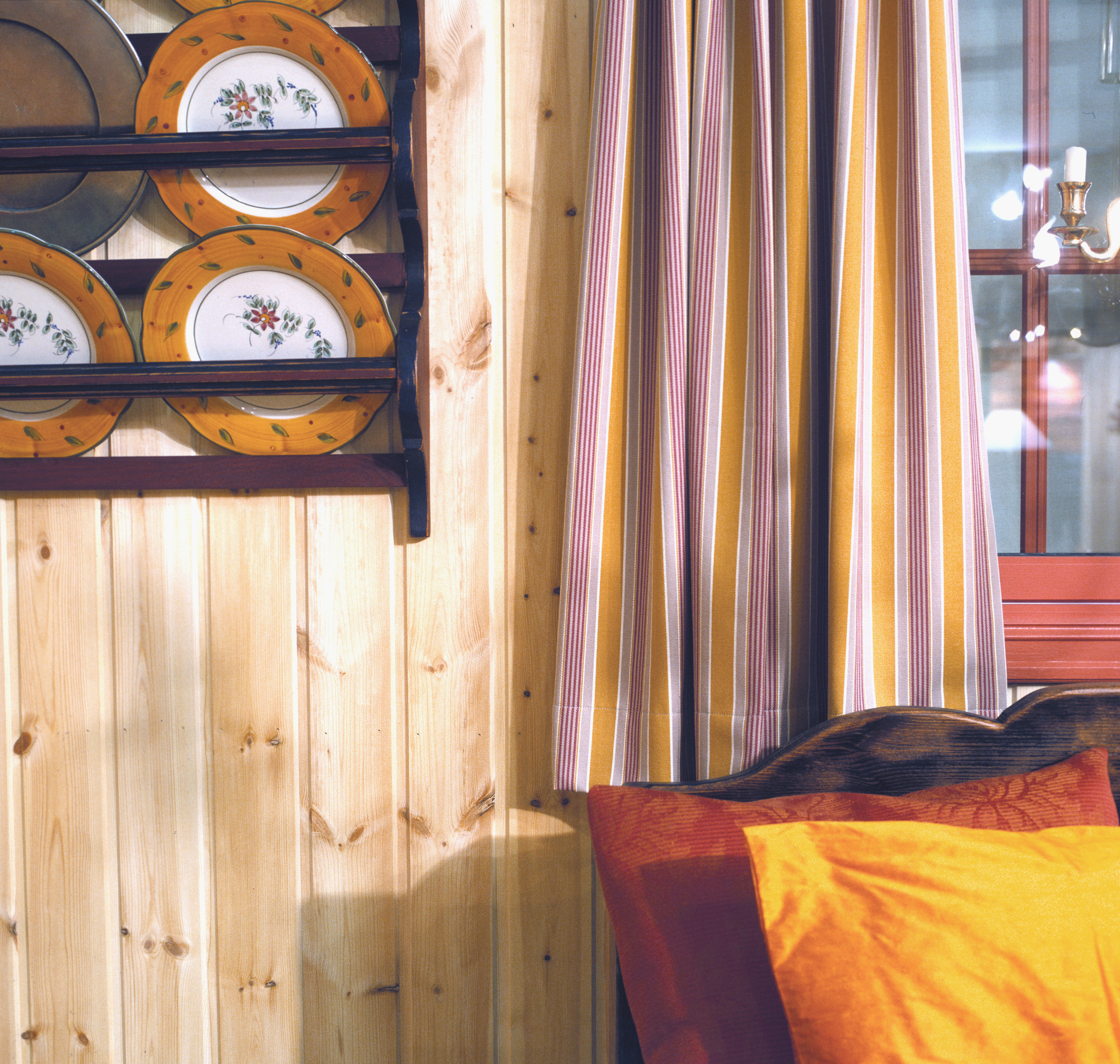 Hvis dere derimot ønsker en mer hvitaktig overflate, kan dere benytte en panellakk/-beis i en hvit utgave. Det finnes flere forskjellige varianter av disse hvitpigmenterte behandlingene, så det greieste er nok å ta turen til fargehandleren og se noen oppstrøksprøver. Panellakken med hvite pigmenter gir treverket en hvitere overflate, men treverkets struktur og lød synes allikevel godt gjennom.