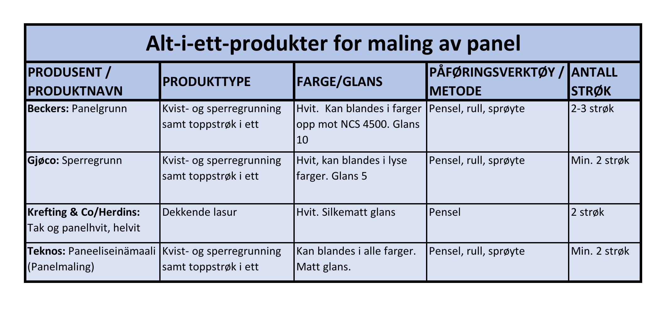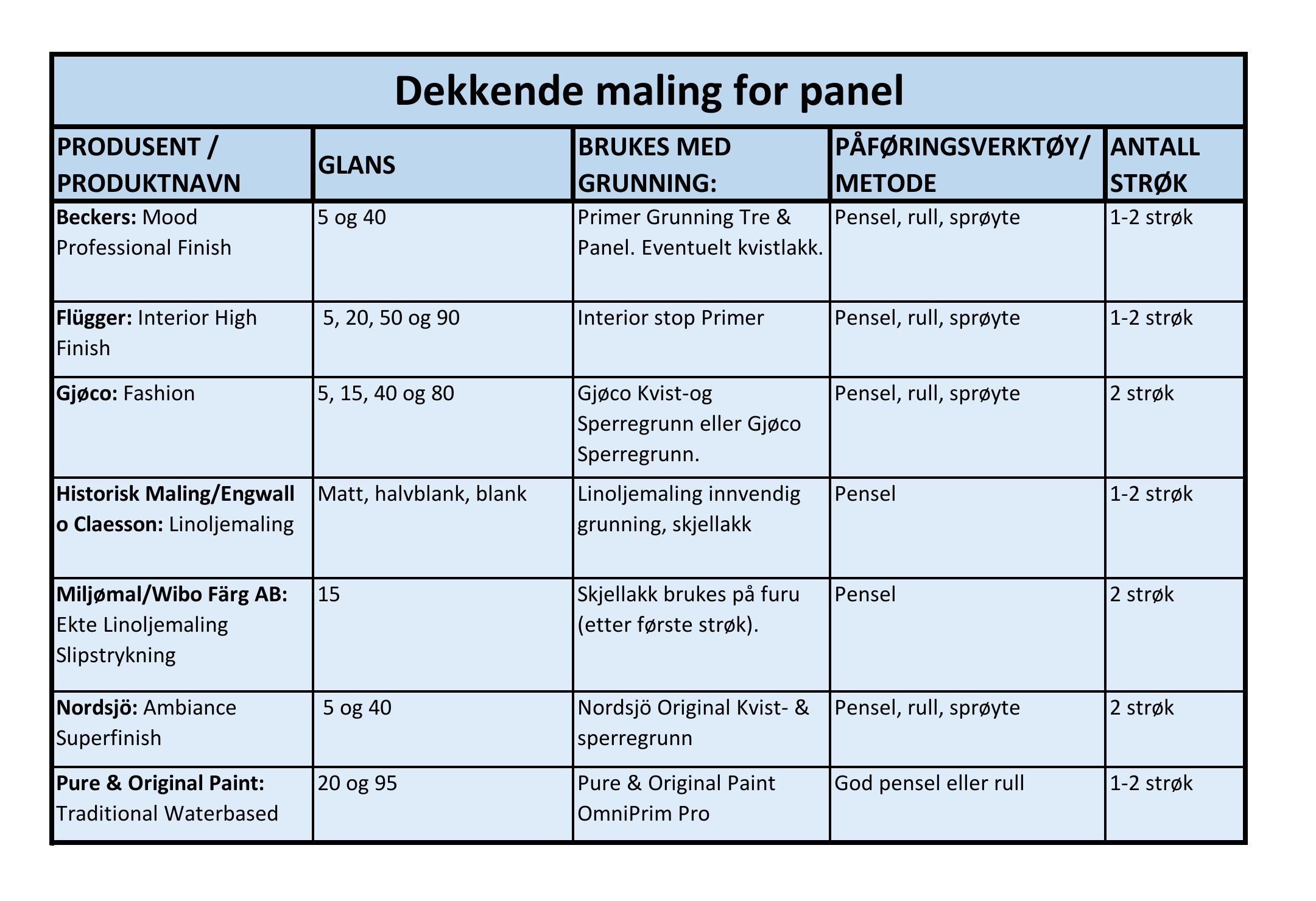 RIKTIG KVALITET: Når du skal male panel er det viktig å velge en maling som er beregnet for slikt treverk. Denne fungerer godt også på lister, dører, vinduer, kjøkkeninnredninger og møbler. Velg også god kvalitet p...