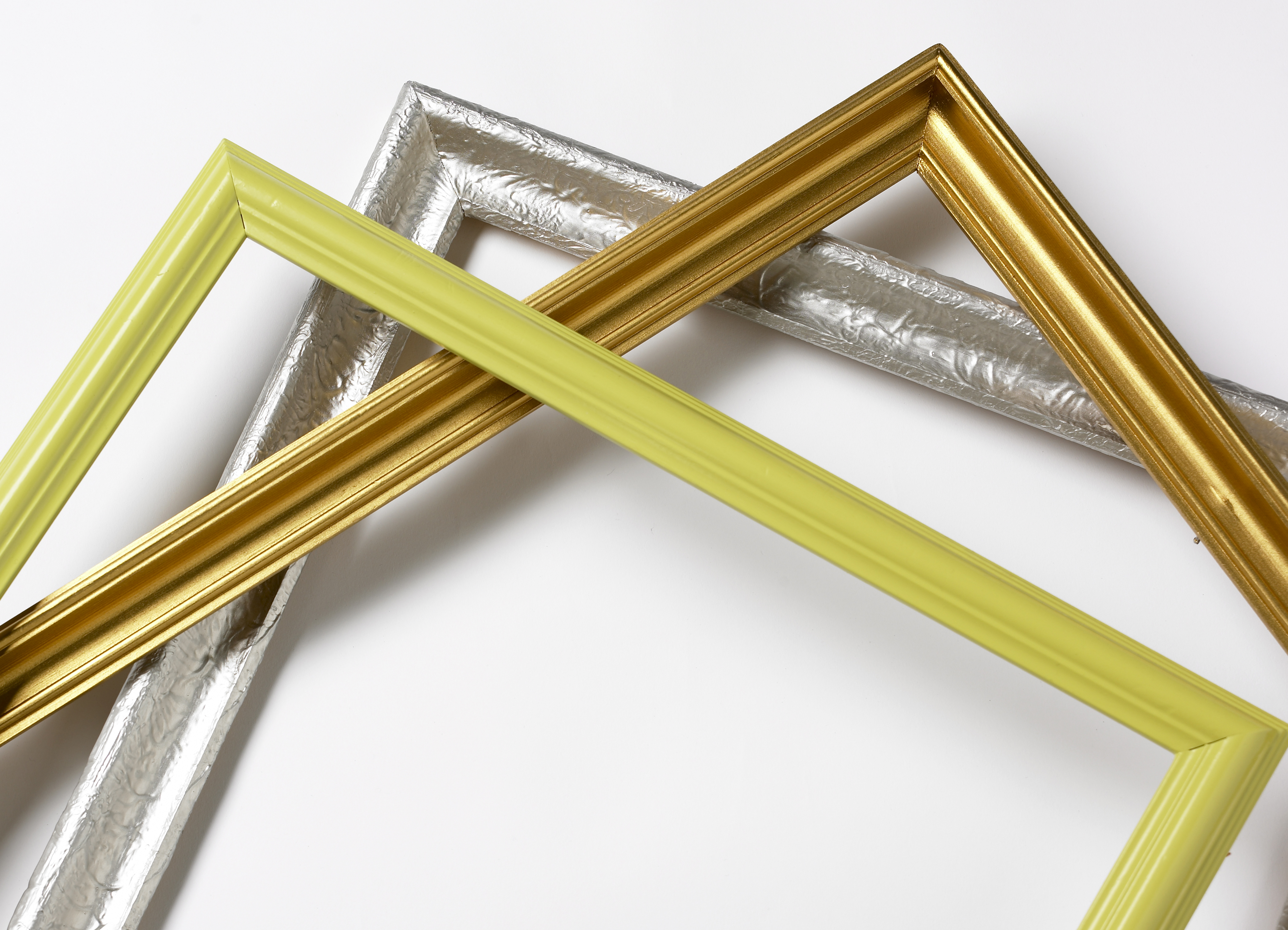 Sjablonger, wall stickers og frihåndstegninger - veggdekor er på full fart inn. En god og rimelig idé når veggen skal fornyes er å rett og slett male rammer på veggen. På den måten blir selve rammene dekor, og innhold i rammene overflødig.
