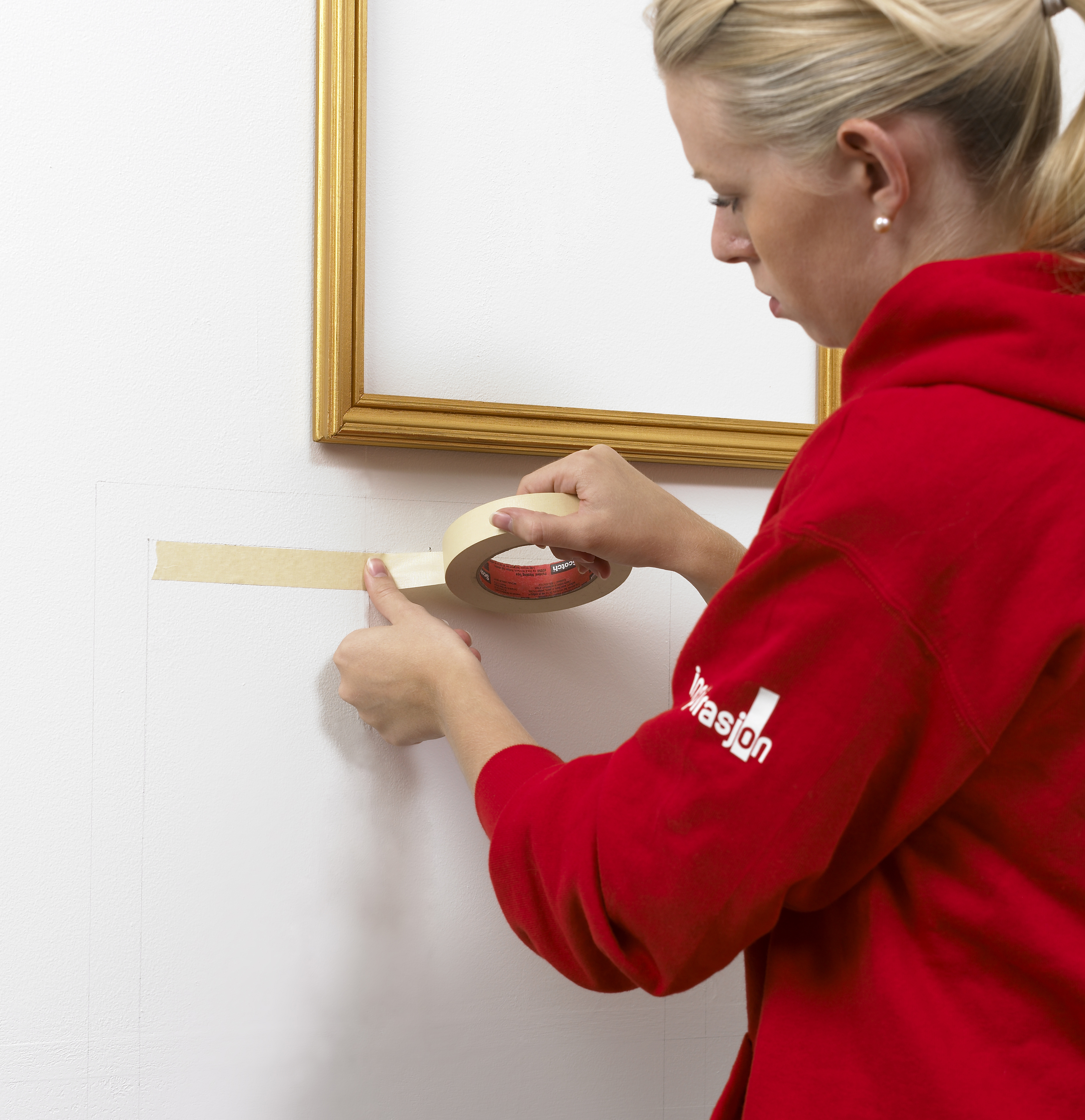 Sett maskeringstape langs blyantstrekene, slik at du ikke maler utenfor.
