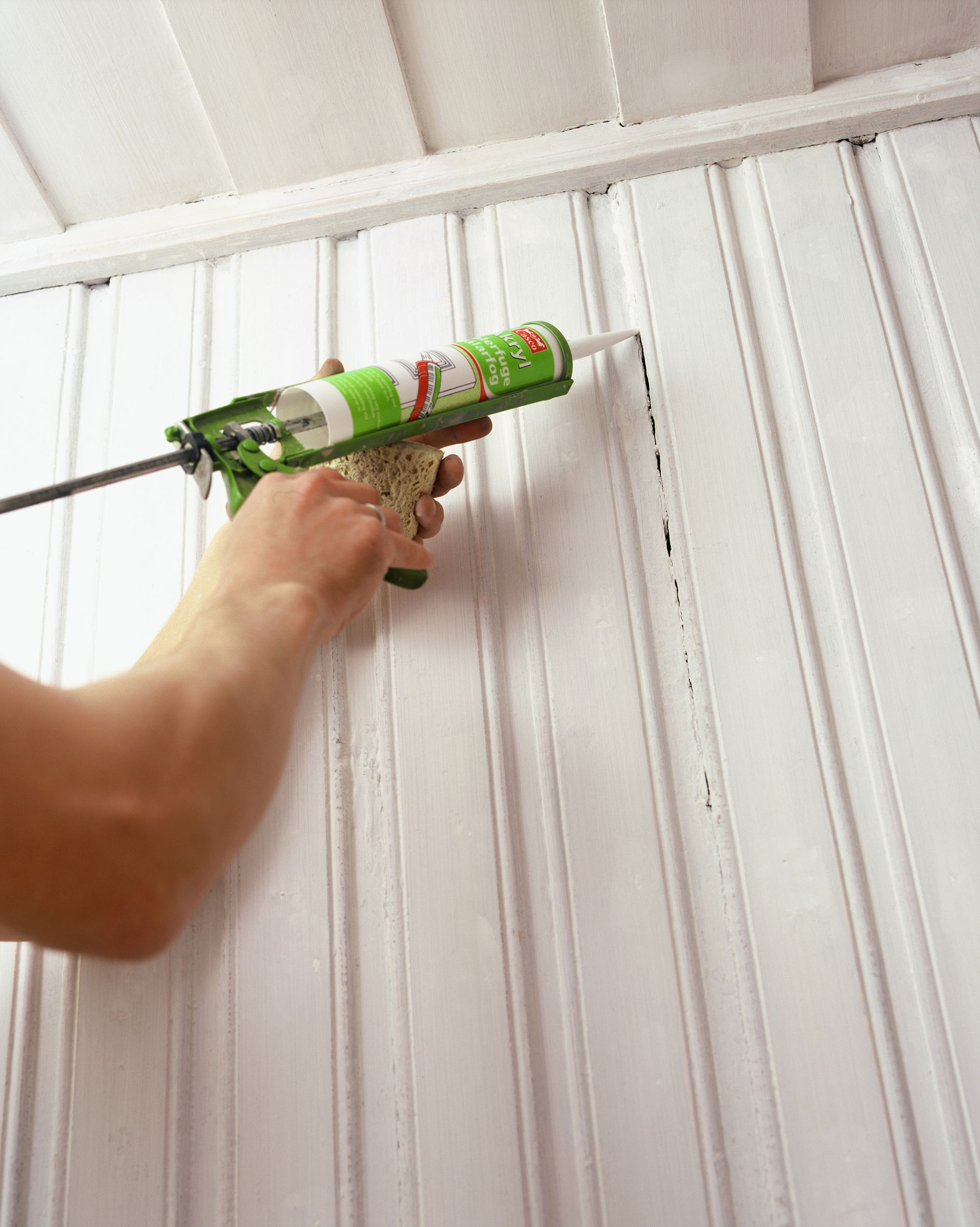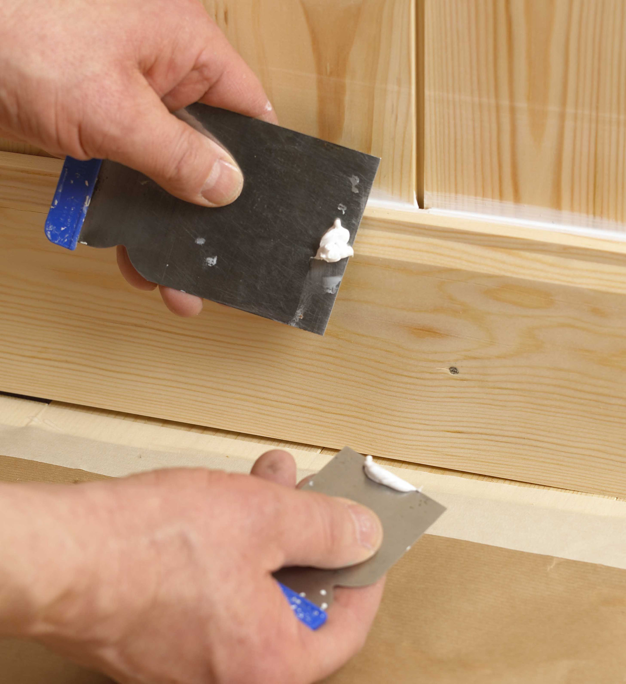 – Akrylmassen gir en glatt overflate, og hvis den brukes feil sted eller hvis det overskytende ikke fjernes, kan den malte flaten få en strukturforskjell sammenlignet med områdene rundt. Det gjelder for eksempel i ytter- og innerhjørner eller ved flekksparkling av huller, sier Espen Josten.