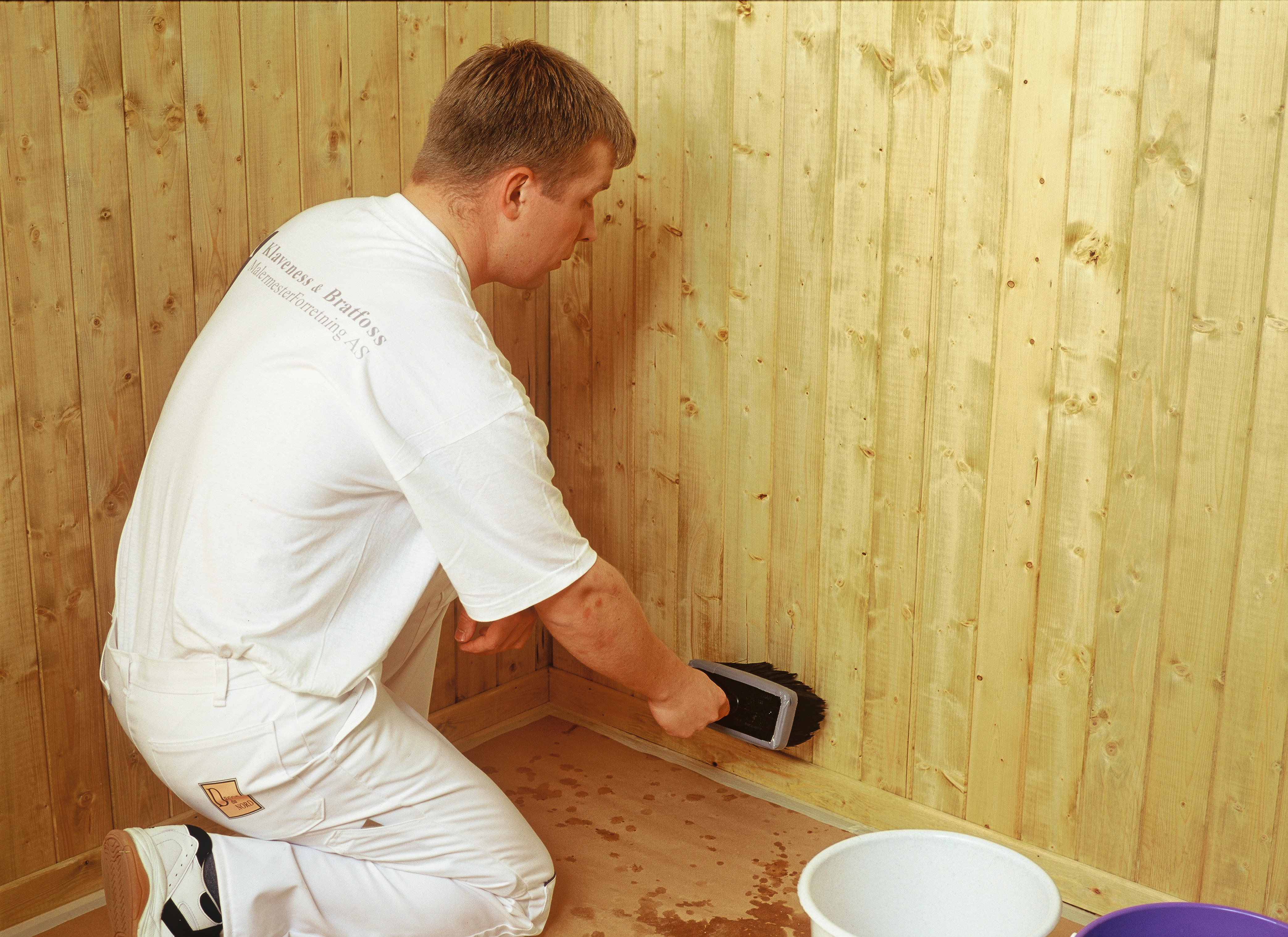 Maling av ubehandlet panel - ny og gammel Male vegger IFI.NOOppdatert 17.04.2012 (Publisert 14.04.2002) Alle gamle flater som skal males må rengjøres først. Etterfølgende arbeid er avhengig av hvor nøye du som oppusser er. Her har vi hentet råd fra malermester. Innhold Følg Dele Innhold Følj Følg ifi.no på Facebook, TikTok og Instagram.Registrer deg her og motta vårt nyhetsbrev, med nye artikler og nyttige tips 2-3 ganger i måneden. Motta nyhetsbrev Dele Send til epost Cancel Send Hvis panelen er helt ny, vurder om den trengs å vaskes. Gammel ubehandlet panel må alltid vaskes før maling. Tips:Treverk beveger seg hele tiden. Ved å grunne panelbordene før oppsetting unngås sprekker mellom panelbordene. Velger du denne framgangsmåten må hele prosessen gjennomføres: kvistlakk, utskraping av kvaelommer, sparkling og et strøk grunning. Bruk overmalbar akrylfugemasse langs tak, gulv, vegger og vinduer. Maling fester ikke til silikon, så bruk silikonmasse bare i overganger ved rørgjennomganger og lignende hvor det ikke skal males. Akrylfugemassen finnes i flere fargenyanser. Velg den som er så nær veggfargen som mulig. Legg ut en tynn streng langs listen, glatt ut med fingere og puss over med svamp. Gammelt panel vaskes med alkalisk vaskemiddel - ikke grønnsåpe. Bruk vaskekost for å komme lettere til. Start nederst på veggen og arbeid deg oppover for å unngå skjolder. Vaskemiddelet fås hos fargehandleren.Vær nøye med dosering av vaskemidlet. Følg alltid bruksanvisningen på emballasjen. Ha lite vann i bøtta. Skift vann ofte. Veggen blir ikke renere enn vaskevannet. Alkalisk vaskemiddel er sterkt. Benytt helst hansker under hele arbeidet. Bruk natursvamp til skylling/avtørking. Den suger lett og holder godt på vannet. Skyll to ganger, først nedenfra og opp, så ovenfra og ned. Alle kvister behandles med kvistlakk. Det gjelder spesielt for furu, men også for gran. Da forhindrer du utsiving av kvae og harpiks - noe som skjer når kvister blir overmalt, enten panelet er gammelt eller nytt. Ta lite på av gangen slik at du unngår sig. Lakken er overmalbar etter få sekunder. Skjær opp kvaelommer. De er fulle av harpiks som må skjæres ut, ellers vil flekkene komme frem en stund etterpå. Hullet vaskes med White Spirit for å få bort eventuelle rester. Påfør så kvistlakk. Sparkle hullet. Et stort hull bør sparkles tre ganger. Påfør heftgrunning på panel før sparkling og maling. Når grunningen er tørket er overflaten ru. Det er fibre i treverket som har reist seg etter påføring av grunningen. Det slipes lett av med slipepapir, slik at panelet blir glatt før overmaling. Det er lettere å oppdage sprekker og sår når underlaget har en farge. Grunningen underbygger dekkevnen til malingen, så velg en fargetone så nær den endelige fargen som mulig. Bruk riktig redskap. Velg en pensel som er like bred som panelbordene. En skråskåret pensel kommer lett til i mellomrom og ned mot belistning. Kvaehull, kvisthull og spikermerker sparkles med akrylbasert sparkelmasse for treverk. Dype hakk må sparkles tre ganger, de øvrige minimum to. Påfør en overmalbar fugemasse i alle sprekker og overganger mellom panel og listverk. Denne fugemassen er elastisk og sprekker ikke opp selv om treet beveger seg (slik vanlig maling gjør). Fugemassen kan etterslettes med en svamp eller med fingeren. Det sparklede treverket skal slipes. Lag slipe-pute ved å brette til papiret som vist på bildet. Da har du bedre føling med underlaget enn ved å bruke kloss. Bruk papir med korning 100. Etterpå støvsuges veggen. Masker eventuelle listverk med bred maskeringstape. Mal to strøk med din utvalgte farge på panelen. Det finnes både oljebasert og vannbasert maling til panel. Det første strøket sørger for godt dekke og jevnt inntrekk. Toppstrøket gir jevnt resultat Relaterte emner Male veggerMale taketVeggplater, panel og listverk Dette trenger du:Trerens (hvis panelet er gammelt) Kvistlakk Malepensel Skråskåret pensel Grunning (heftgrunn) Stålsparkel Sparkelmasse Akryl fugemasse Påføringspistol Natursvamp Maling Les også: Legg til huskeliste Se huskelisten din Hei, denne artikkelen er over 2 år gammel, og kan inneholde utdatert informasjon. Finn de siste artiklene om dette emnet. Vi anbefaler Rett skille mellom tak og vegg Mal fliser, i dusjen også Fra takplater til slette tak Male kjøkkenfronter som en proff Mer fra Male vegger Lyst treverk med blekelut Maling av takpanelet Beskyttelse og behandling med panellakk Kvisten lever, bruk kvistlakk Siste artikler Sjokolade, urter og smørtoner på kjøkkenet Mal panelet etter forholdene, ikke kalenderen Varme farger og myke former: Trendene fra Paris 2026 Bli kvitt knirk i gulvet