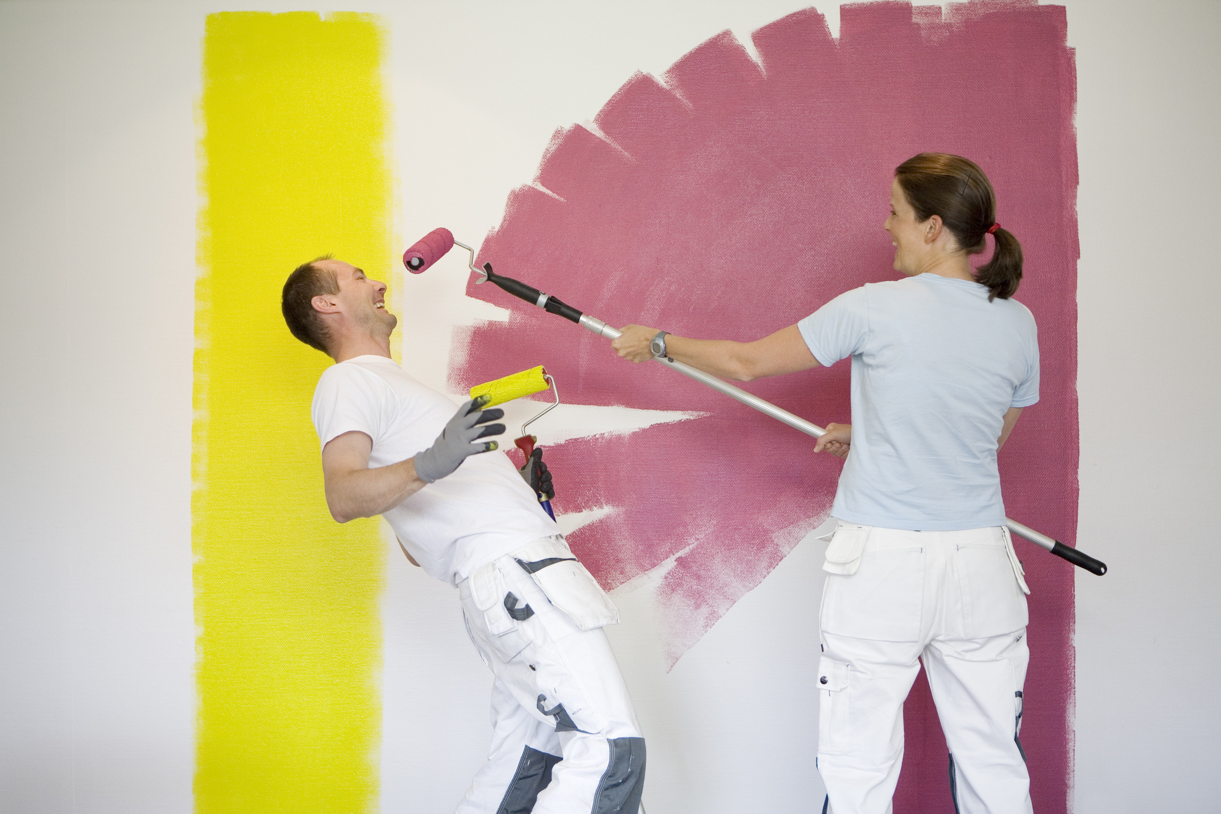 Kreativ leder hos IFI, Bjørg Owren, er ikke i tvil hva hun må ha på seg under malingsakten.