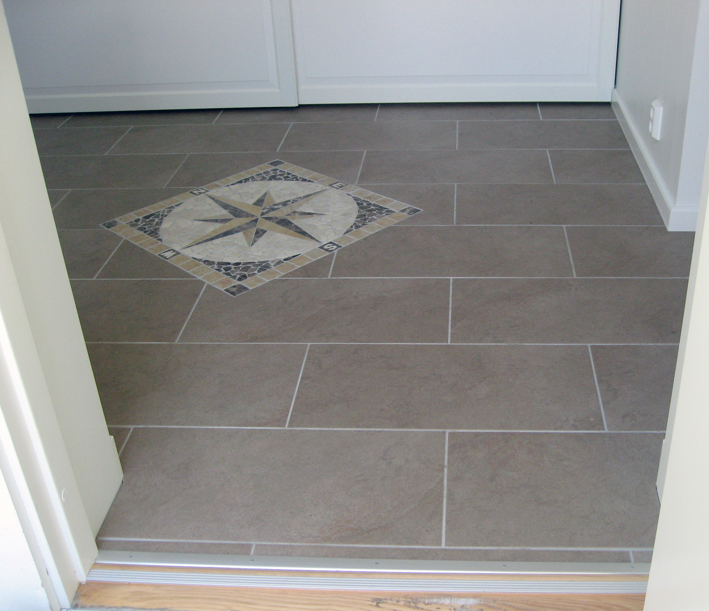 Kompassrosen inngår i standardsortimentet til flisleverandøren og rosen er montert på et nett, slik at den er enkel å legge.