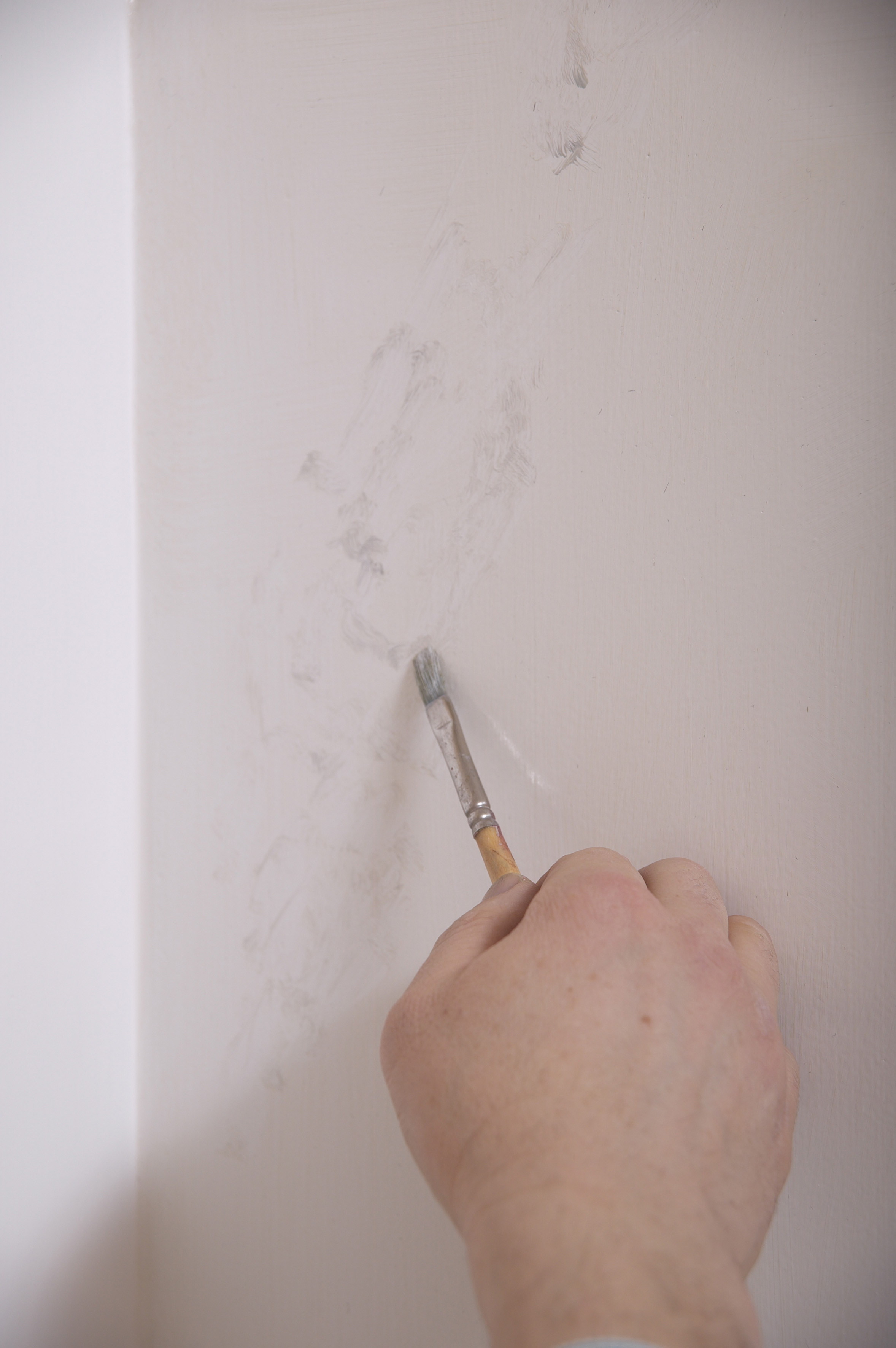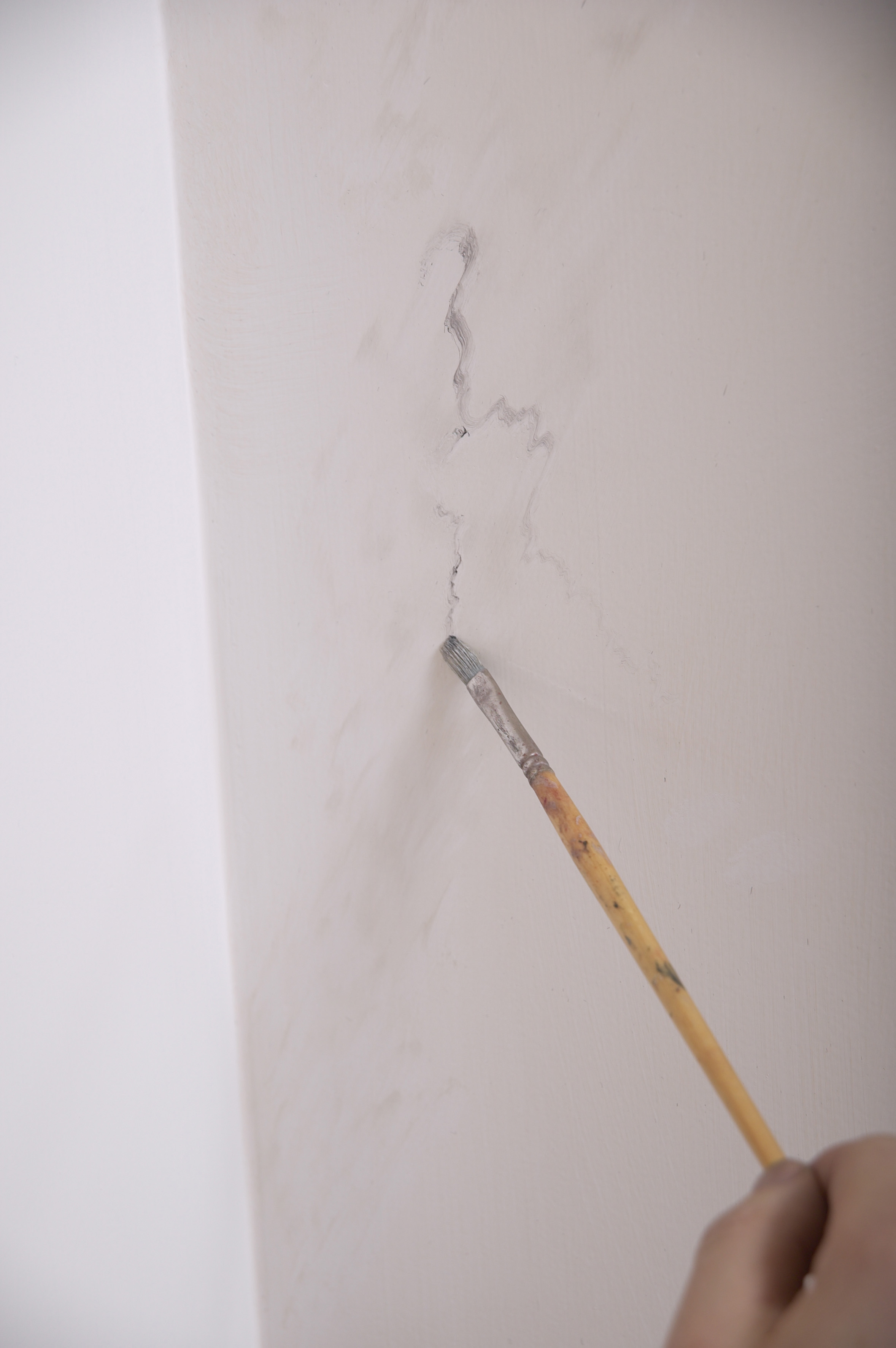 Peisen er ferdig grunnet med to strøk oljemaling oppå ferdig sparklet underlag. Det må være helt tørt før marmorering, slik at ikke pigmentene som brukes i teknikken blir dratt utover av fordriveren og blir "grisete".