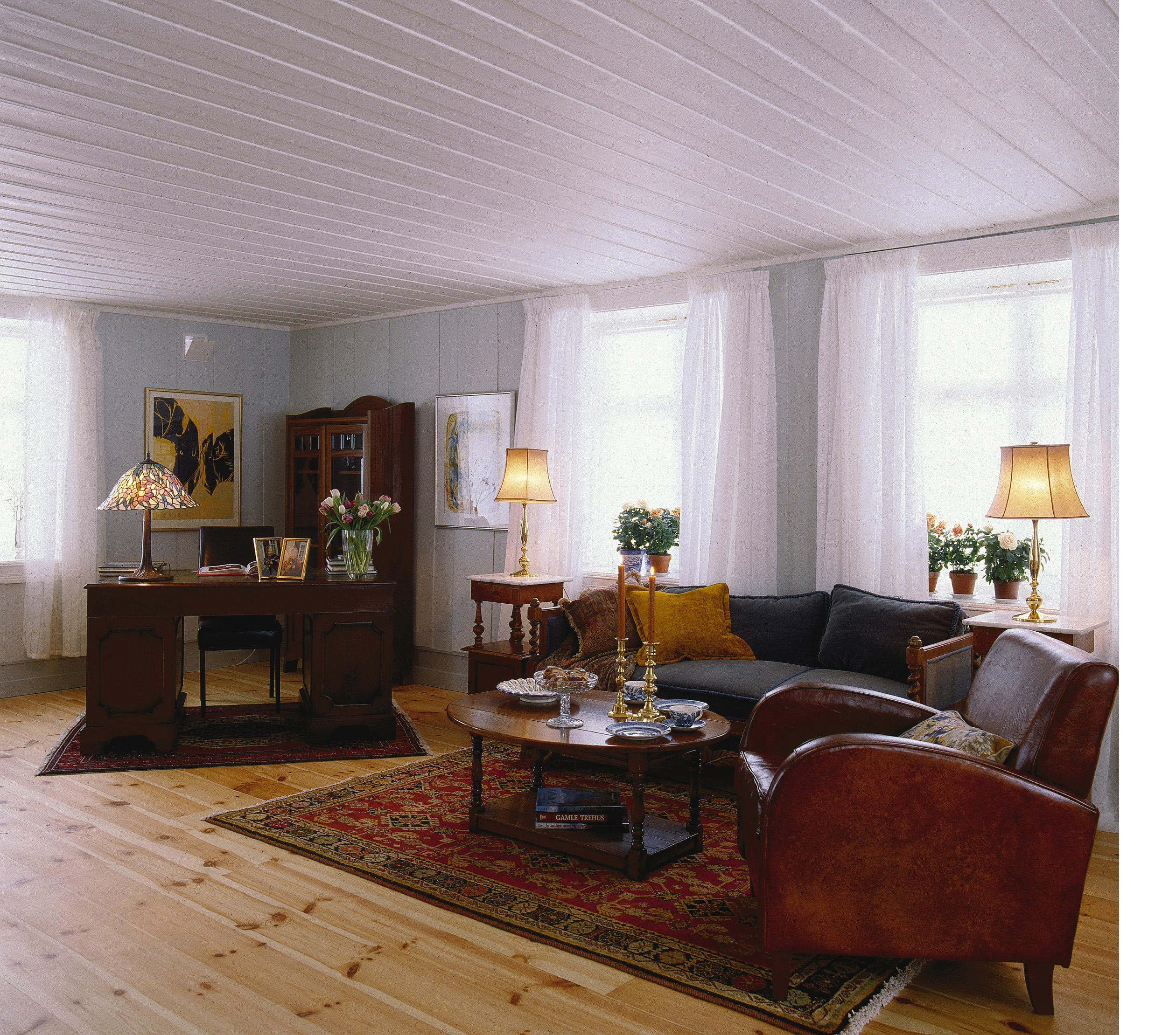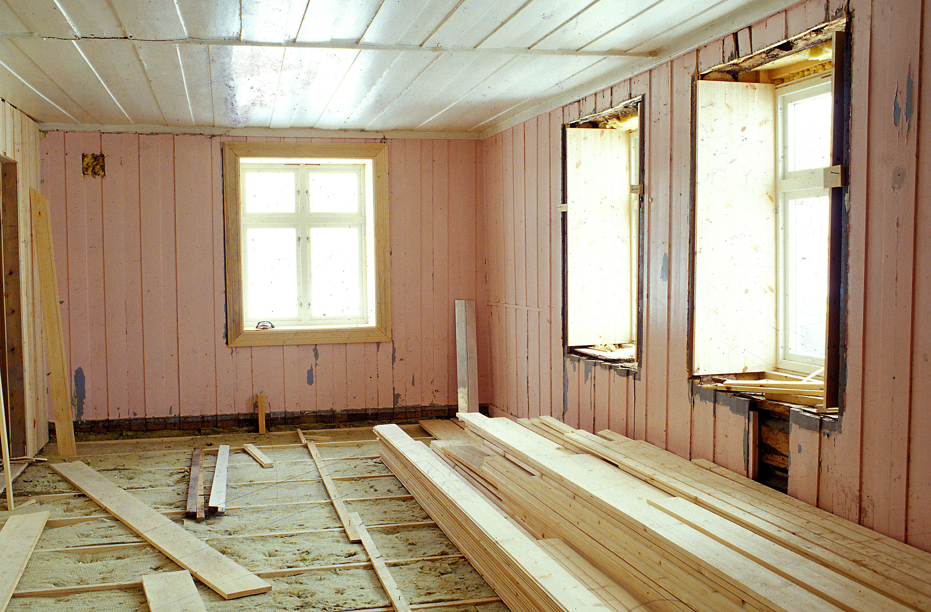 Overalt hvor det var mulig, ble de gamle, praktfulle gulvbordene restaurert. I første etasje var det store nivåforskjeller. Huset ble jekket opp og det ble lagt nye gulv, noe som gjorde det mulig med fullisolering. Vinduene ble skiftet ut med kopier av de gamle.