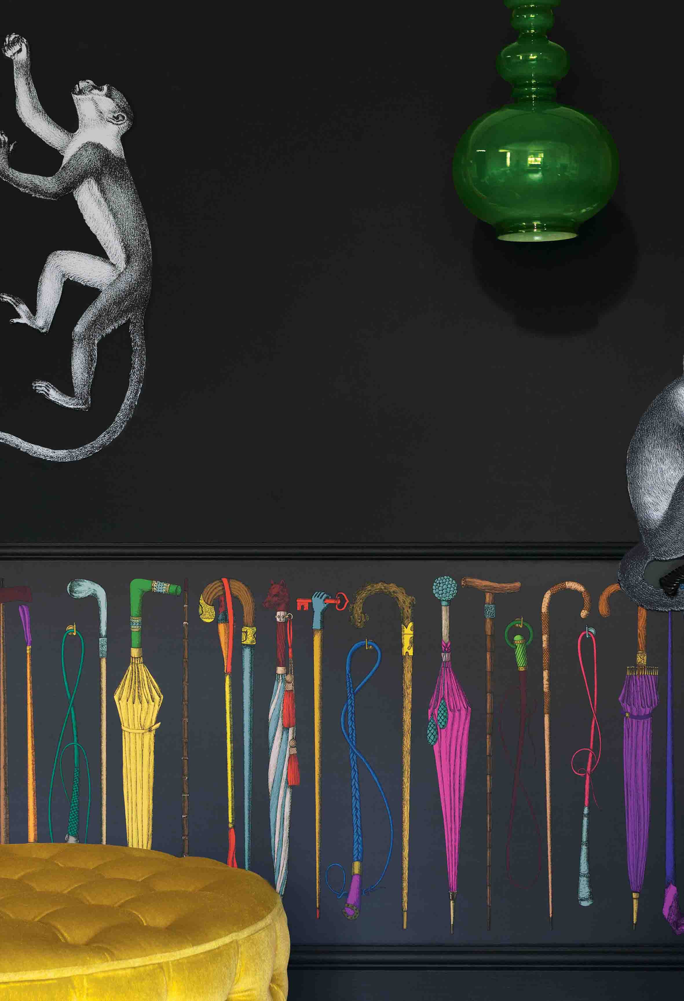 Fornasettis verden er bebodd av lekne apekatter, stirrende ugler og forunderlige klovnefisker. Her flyr besynderlige luftskip, mystiske nøkler henger i buskaset, og ni mann sykler på én og samme tandemsykkel. Kolleksjonen er mangesidig med mange muligheter for kombinasjoner av de 15 forskjellige designene, med brede border og friser, paneler og ekstra brede tapetruller.