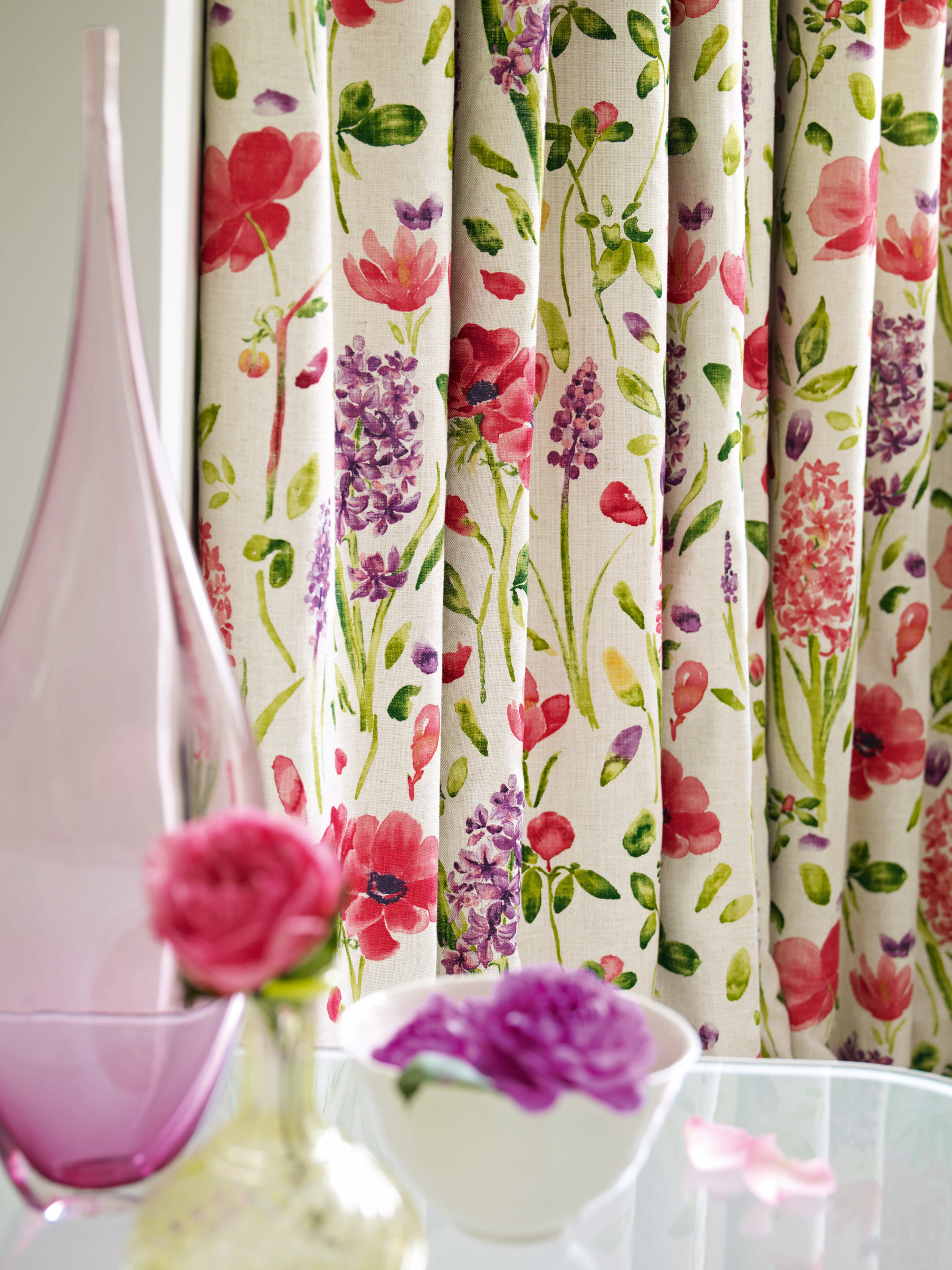 – Gardiner med maljer er ut, nå skal det være klassiske sømmer, og flere velger mellomfôr og fyldighet, forteller Lind. Det blir også mer blankhet i tekstilene, selv lin selges nå med metallisk print.