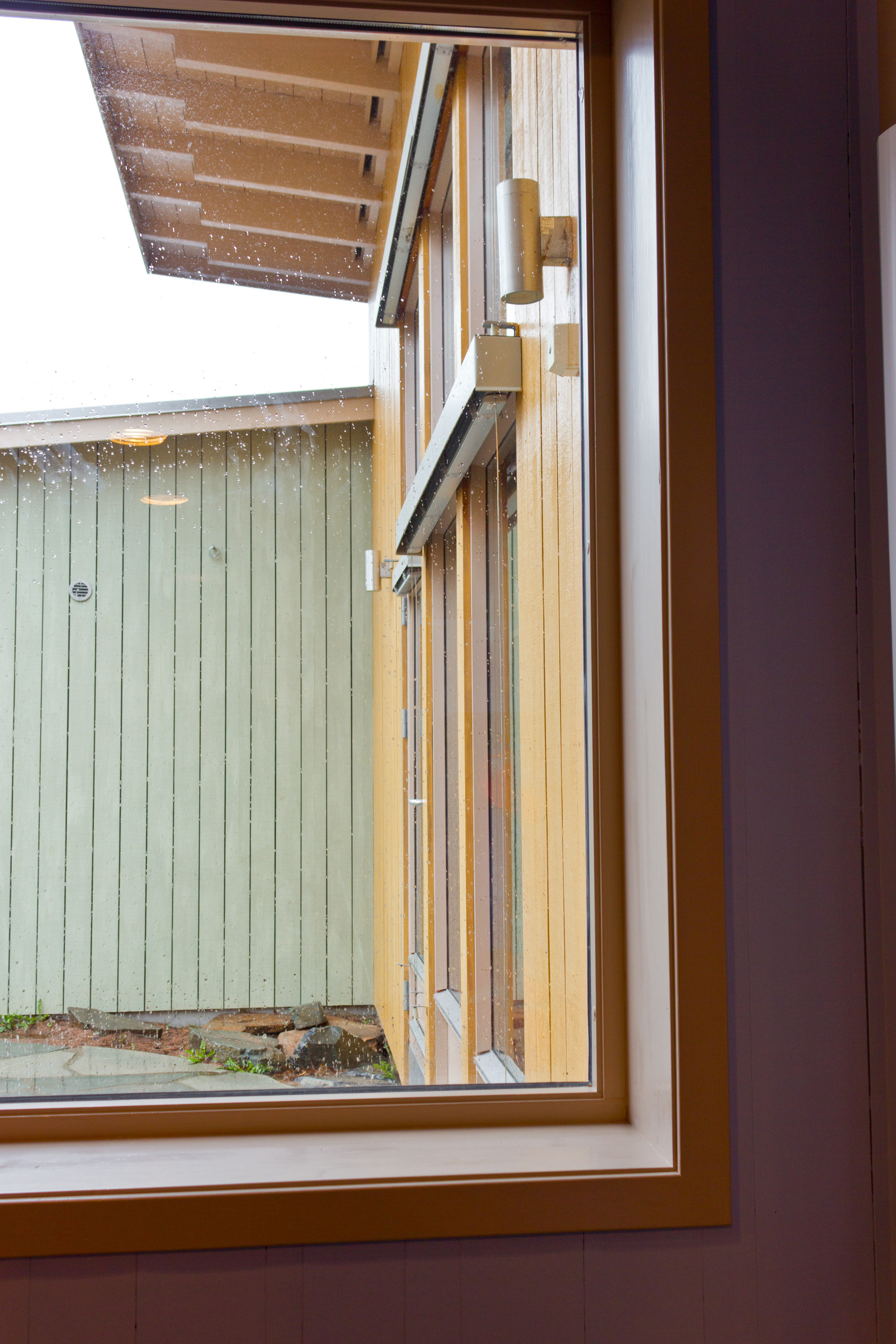 I begge avdelinger er dører, vinduer og omramminger malt i en rosaaktige farge som er hentet fra granittsteinen som er vanlig på Hurumlandet. Gulvet består delvis av gjenbruksmaterialer – naturstein fra taket til en kirke som skulle rehabiliteres.