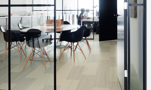 Den brede fargepaletten gir mulighet for å tilføre gulvet et oppsiktsvekkende, men samtidig et sofistikert uttrykk, som kan gi liv til et ellers kjedelig rom. Vi har sett at Marmoleum Modular med sine muligheter og sin slitestyrke, snart fant veien til kontor- og butikkgulv, hvor et gulv med mønster er med på å skape en positiv og inspirerende stemning.