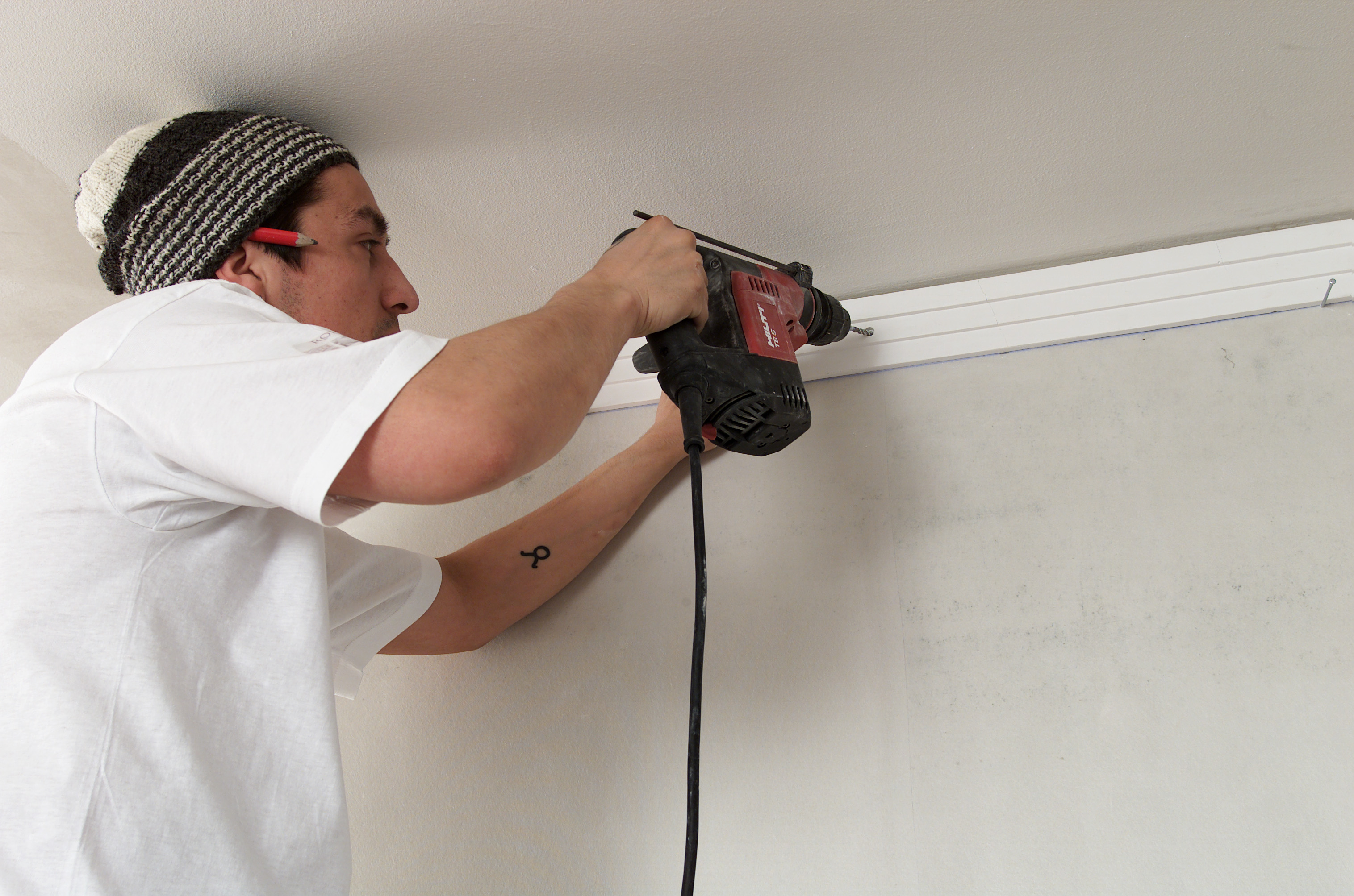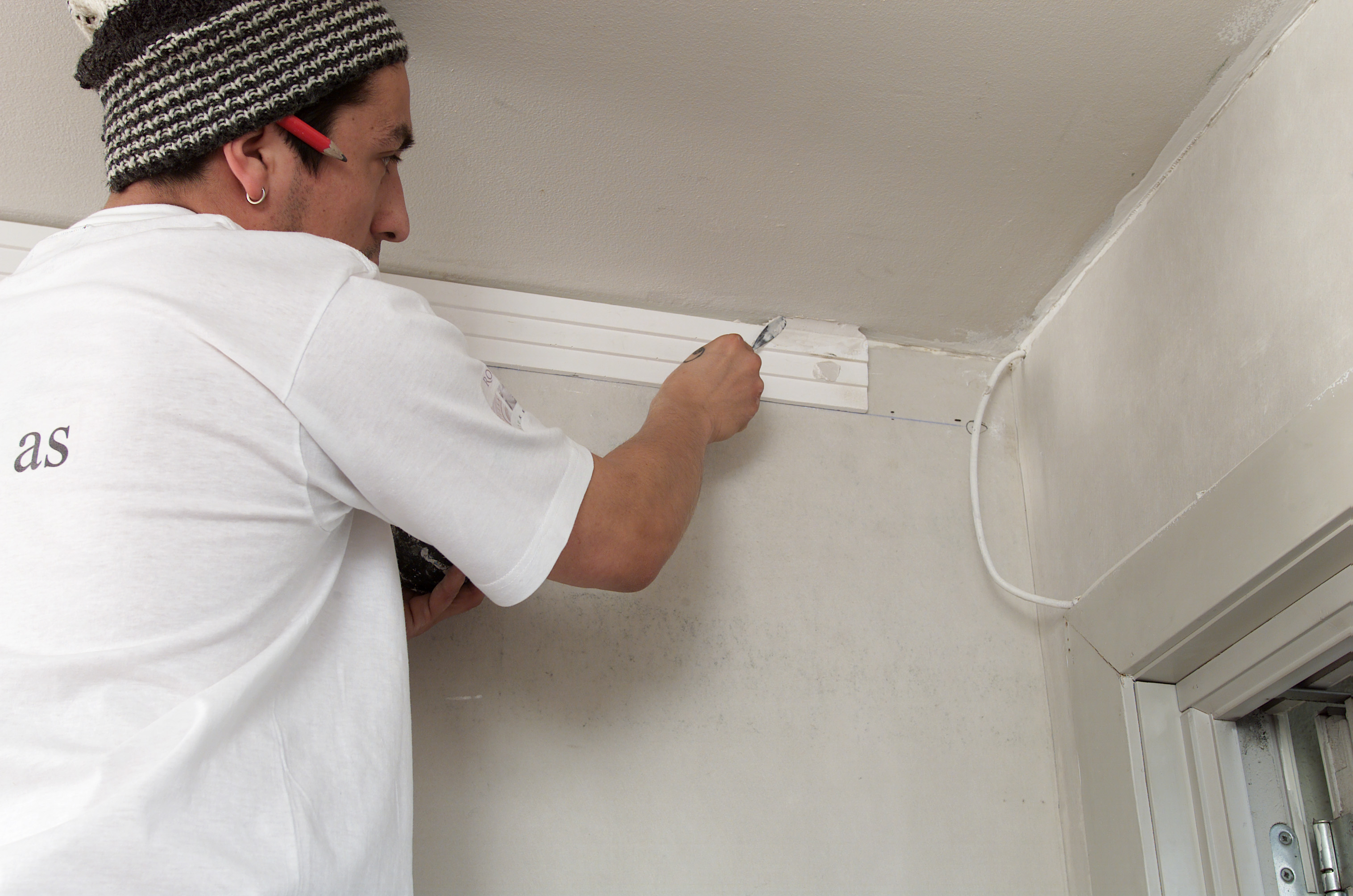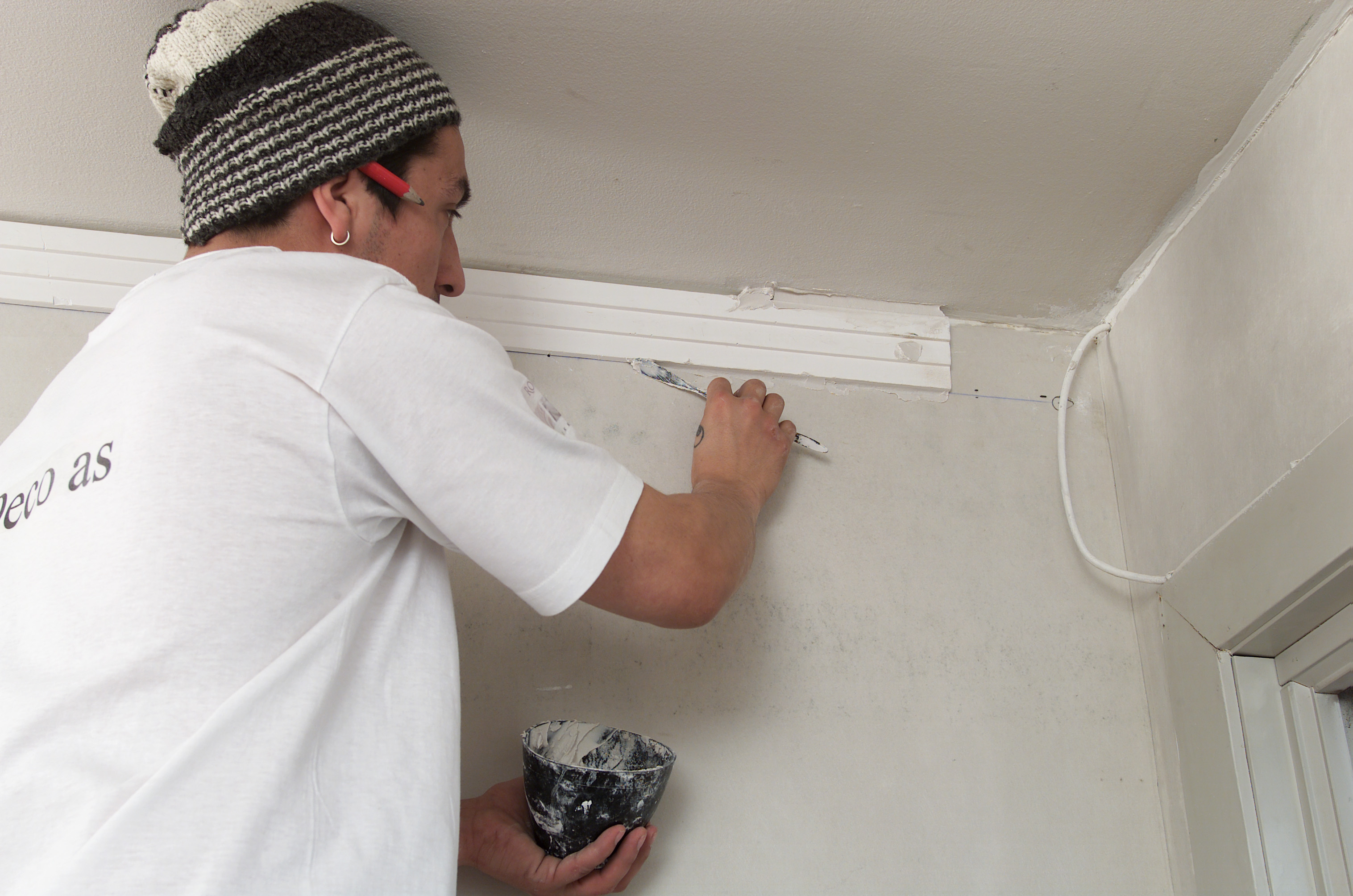 Montér gips Tak Kristian OwrenOppdatert 02.10.2015 (Publisert 13.06.2002) Skal du montere taklist, ikke bare tenk på tre, da kan gips være et alternativ. Mange assosierer gips med stukkatur og rosetter, men det finnes uttallige design som passer andre steder enn i herskapelige leiligheter. Ta kontakt med din lokale gipsmaker og se på deres utvalg. Innhold Følg Dele Innhold Følj Følg ifi.no på Facebook, TikTok og Instagram.Registrer deg her og motta vårt nyhetsbrev, med nye artikler og nyttige tips 2-3 ganger i måneden. Motta nyhetsbrev Dele Send til epost Cancel Send Montering av gips Ønsker du å skape en følelse av at veggen er høyere. Sett opp gips. Ved å trekke taket ned på veggen, virker det som om det har blitt høyere opp til taket. Gips monterer du selv, eller bruk en håndverker. Velger du å sette opp gisp selv burde dere være to. Godt å ha hjelp til å holde gipsen under montering. Gips kan monteres både på mur og tre. Hvordan skal det gjøres? 1. Lån prøver av forskjellige design. Det kan være vanskelig å se for seg hvordan en list tar seg ut fra en katalog. Gipsmakere har prøver som lånes ut. 2. Når du har funnet ut hvilken list du vil bruke, mål omkrets av rommet, og finn lengden du trenger. Dette trenger du av verktøy. 3. Ved oppsetting av gips skal underkanten av listen være i vater. Start med å slå en linje rundt hele rommet med en krittsnor i listens høyde + 2 -3 mm. Linjen skal være i vater. Kontroller at listen ikke stikker under streken. Gjør den det, må du lage en ny strek. Sett i spiker i linjen, disse kan du hvile listen på under montering. 4. Bor hull i listene før du begynner montering. Dette kan også gjøres med en kniv. Gipsmakeren her bruker et forsenkningsbor. Bor hullene i gipsen hvor det er lett å tette/sparkle hullene med gipsmasse. 5. Bor hull i vegg og sett i plugger. 6. Fukt endene med en svamp, for å få lengre arbeidstid på gipsmassen. Legg på gipsmasse på baksiden av listen. 7. Begynn alltid monteringen i et hjørne. Gipslisten legges etter linjen du markerte med rettesnoren. Skru fast med gipsplateskruer. Er veggen veldig skakk, kan du bruke kiler for å rett opp listen. Kilene fjernes først når gipsen er herdet. 8. Hullene til skruene tettes igjen med gipsmasse. 9. Legg gipsmasse i gapet mellom vegg/tak og list. 10. Bruk sparkel og jevn gipsmassen mellom vegg/tak og list. Gipsmassen blir hvit etter at den har tørket. 11. Puss eventuelt over med et fint sandpapir etter at gipsen har herdet. 12. Gips skal alltid etterbehandles. Påfør et strøk med heftgrunning, mal etterpå med ønsket maling. Oppbevar gipslistene loddrett og i et tørt rom. Gipslistene er armert, brekker en list, kan man fortsatt bruke den. Stopp aldri listoppsettingen i et utadgående hjørne, som ved for eksempel en skorstein. Relaterte emner Tak Dette trenger duGipsstukkatur - InDeco as tlf 67 17 17 36GipsmasseKilerPensel/svampSparkelHammerSpikerRettesnorBlyantSkruerVinkeljernTommestokkRørebeger Legg til huskeliste Se huskelisten din Hei, denne artikkelen er over 2 år gammel, og kan inneholde utdatert informasjon. Finn de siste artiklene om dette emnet. Vi anbefaler Parkett, laminat og klikkvinyl – tre lune gulv å velge mellom Sweet Embrace er Årets farge 2024 fra Nordsjö Nye taklister i rekordfart Hvordan matche et tapet? Mer fra Tak En rosett blir til Lim fast lister og rosetter Maling av stukkatur og rosetter Tradisjonalisten Siste artikler Sjokolade, urter og smørtoner på kjøkkenet Mal panelet etter forholdene, ikke kalenderen Varme farger og myke former: Trendene fra Paris 2026 Bli kvitt knirk i gulvet