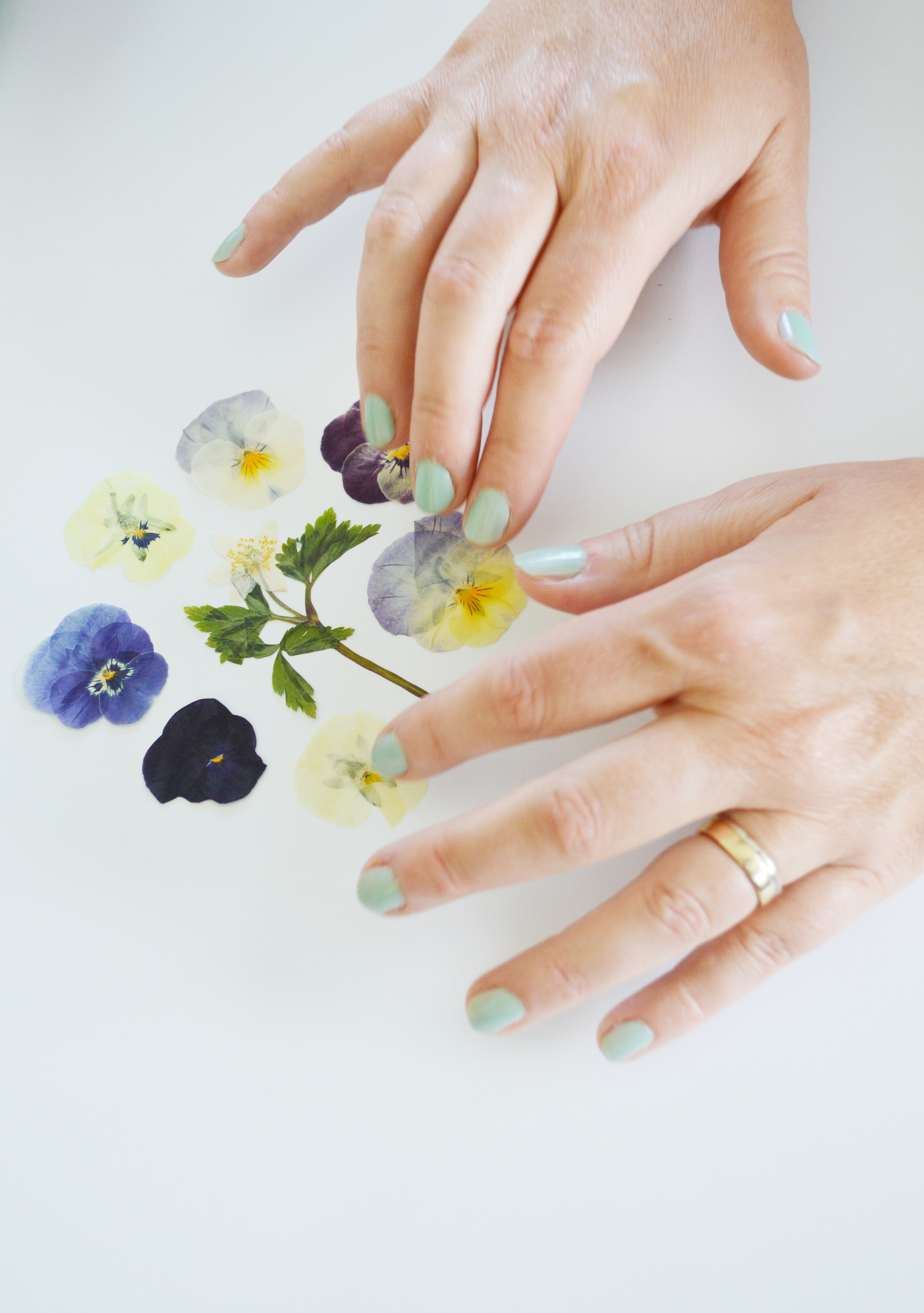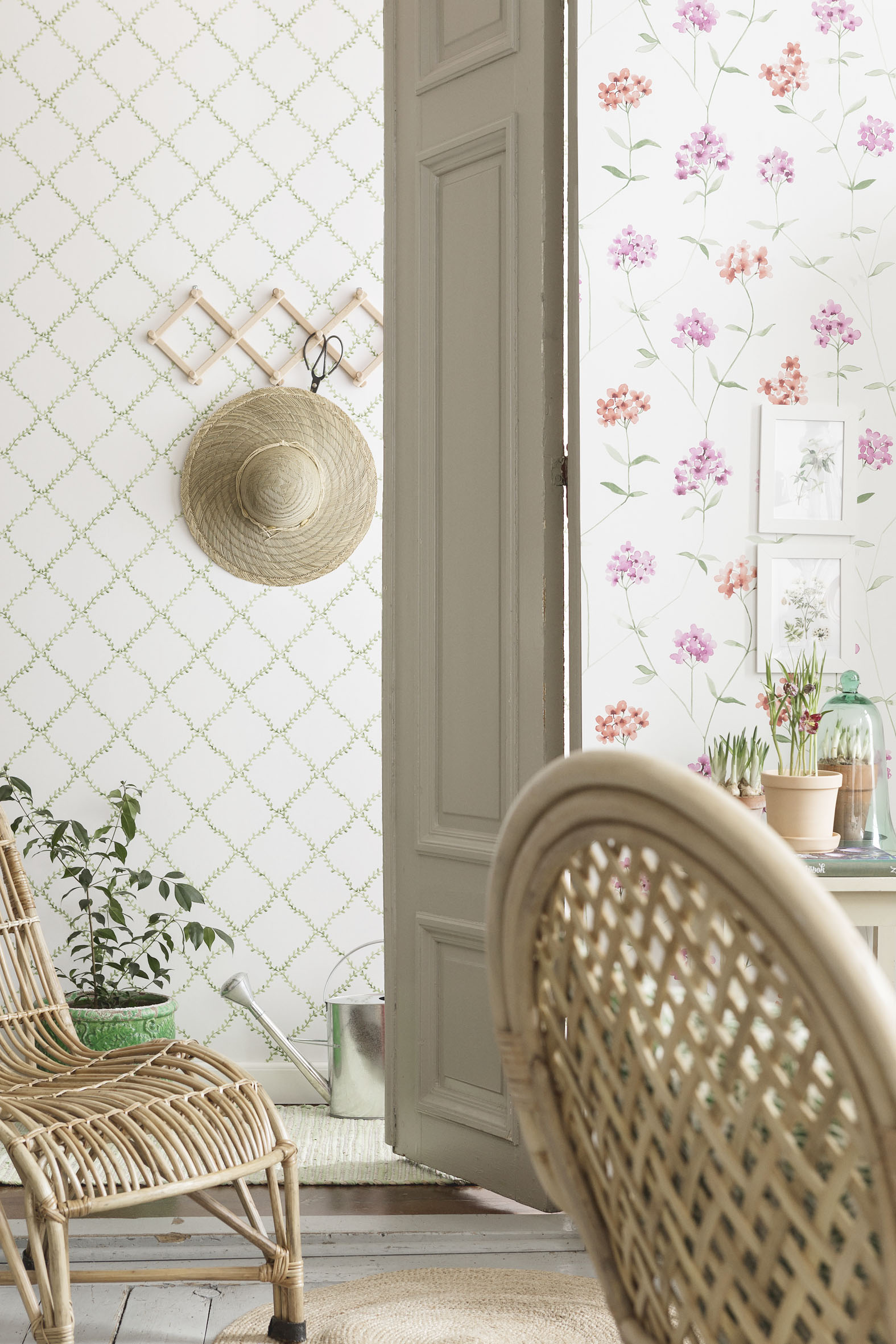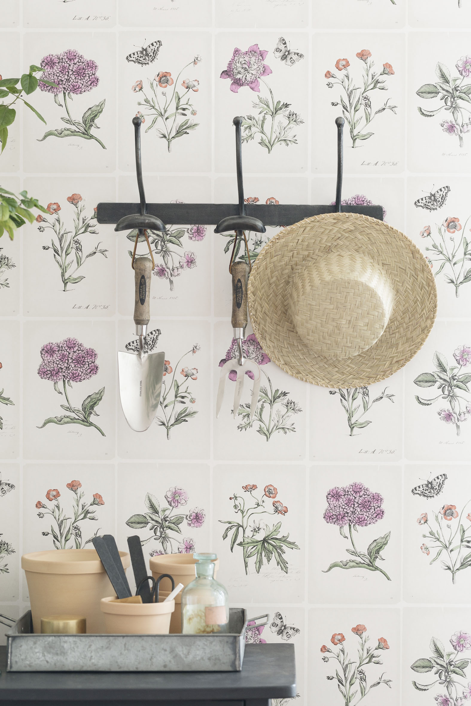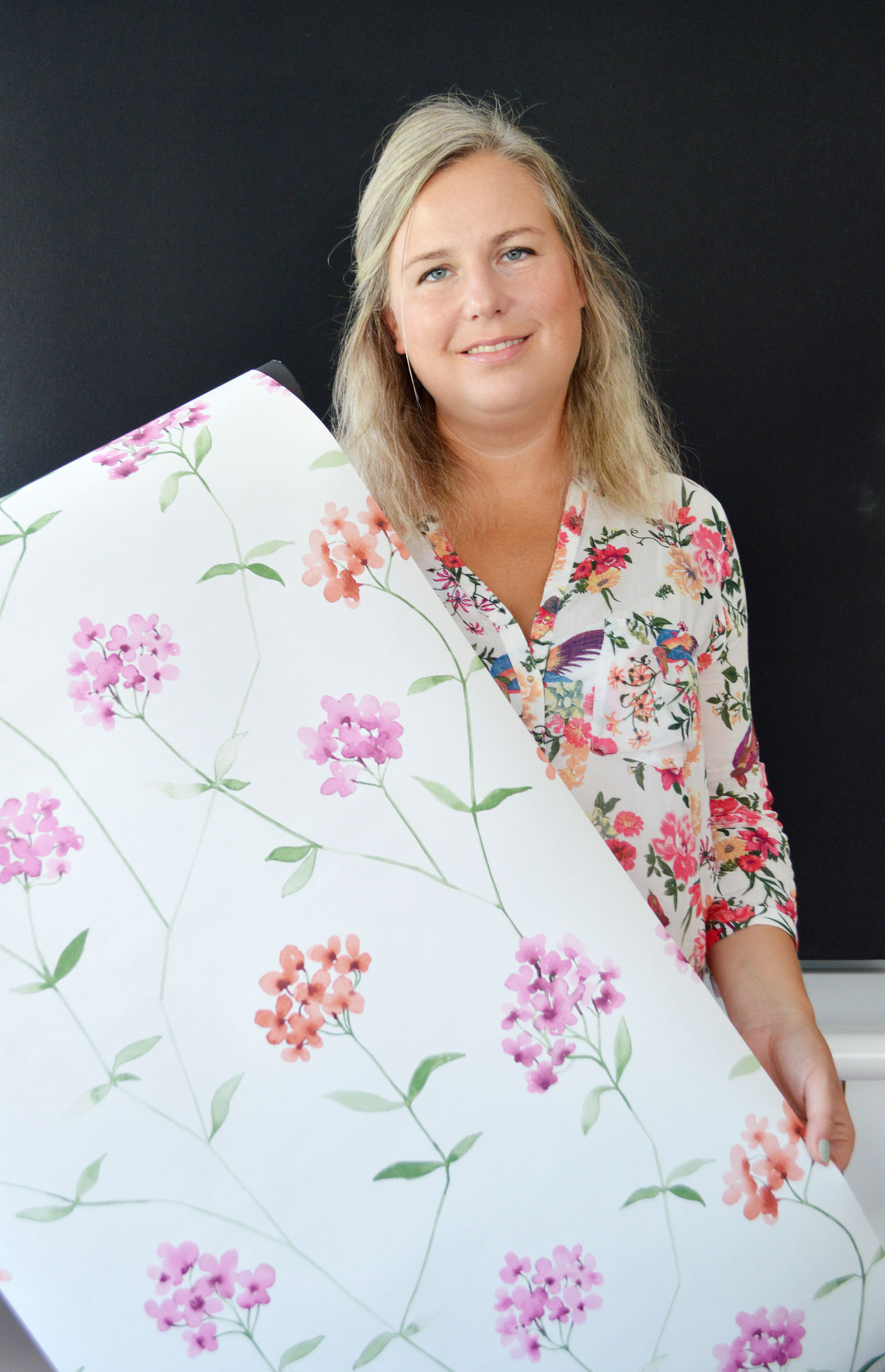 – Rutene kan passe til kjøkken, mens små blomster kan passe til soverom. De enkle tapetene kan du feste bilder med egne blomster på i rammer med glass, sier hun mens hun leker seg med pressede blomster på bordet foran seg.