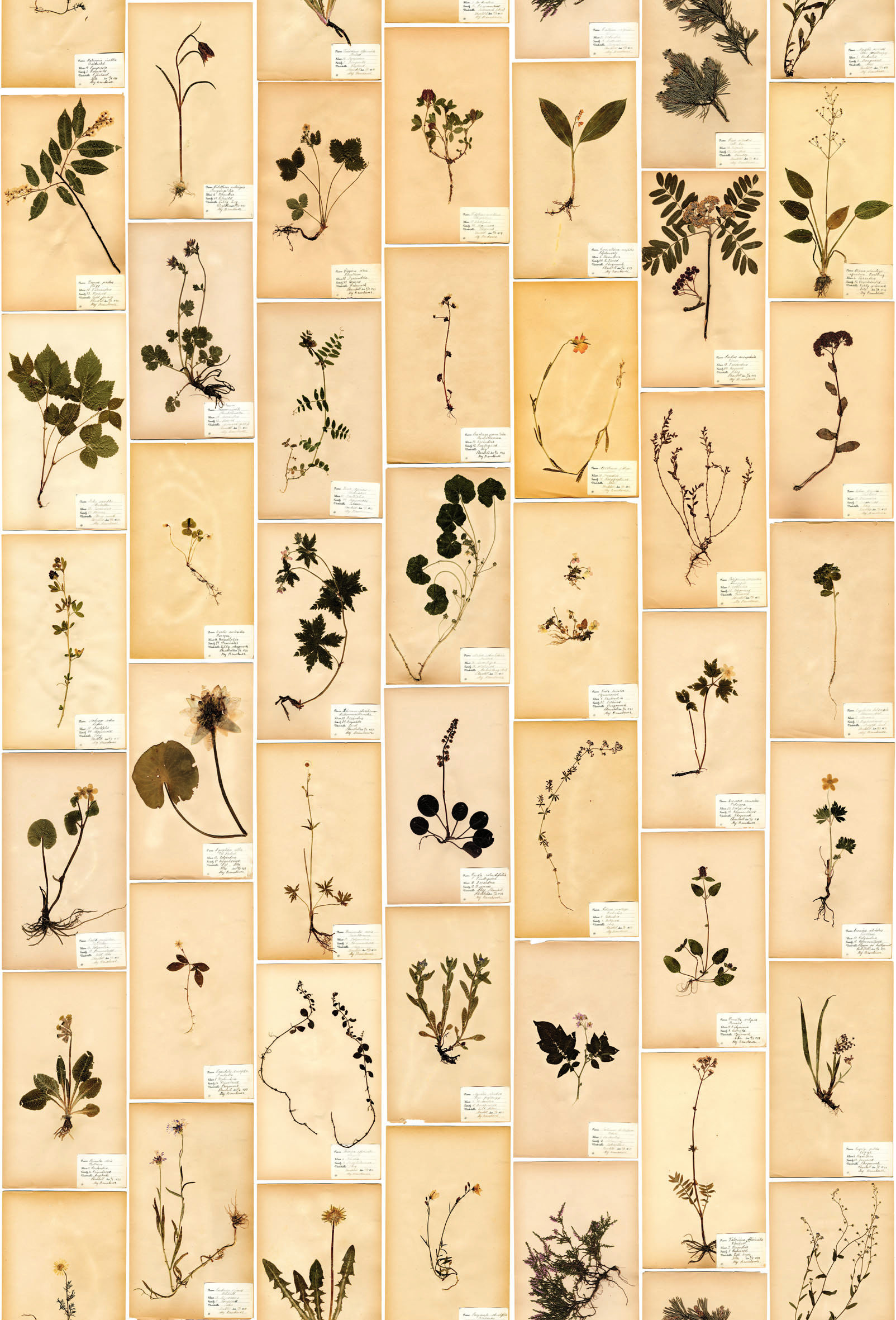 – Jeg tror hun hadde det som sitt sommerprosjekt. Det morsomme er at hun ikke bare har plukket og presset dem, men også nøysomt har sydd fast blomstene til papiret og skrevet lapper ved siden av hver blomst med navn, forteller hun.