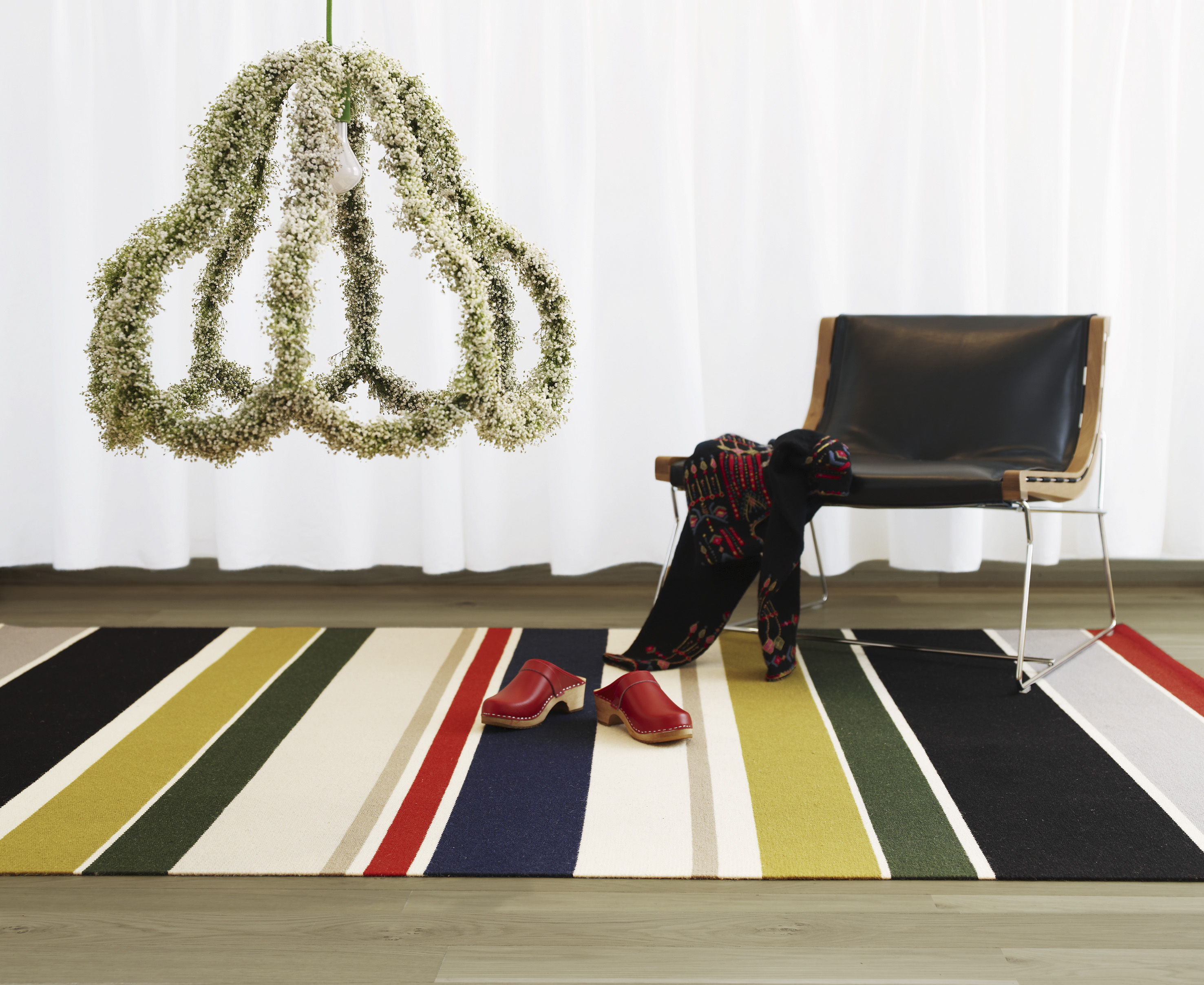 Striper går igjen i alle materialer fra harde gulv og vegg til tekstiler, i alle varianter. Stripene kan være i kontrastfarger, kontrastmateriale, som en struktur i materialet, matt eller blankt.