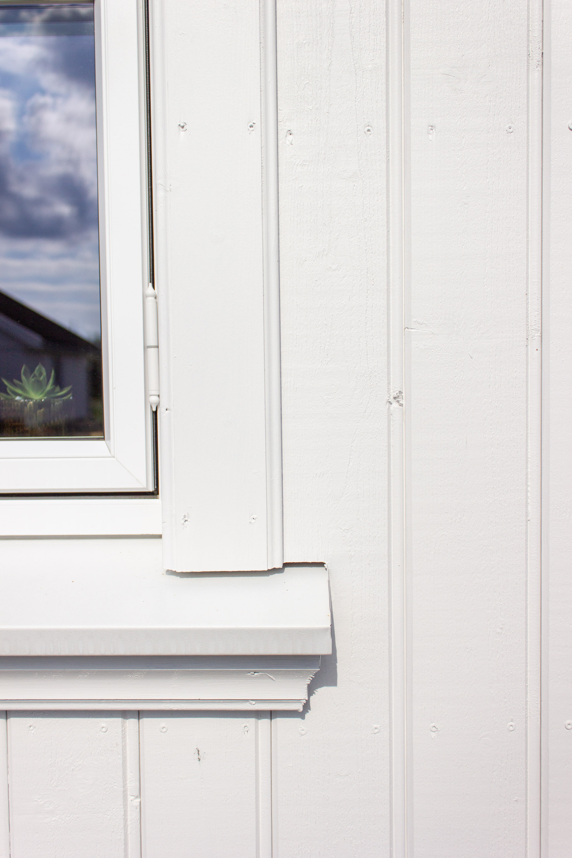 For at et kritthvitt gårdshus skal være praktisk å leve med, må malingen tåle mye. Her falt valget på Nordsjö One Supreme – en selvrensende, heldekkende tremaling med halvmatt glans, tilpasset trefasader i nordisk klima med store temperatursvingninger, mye nedbør og kraftig UV-påvirkning.