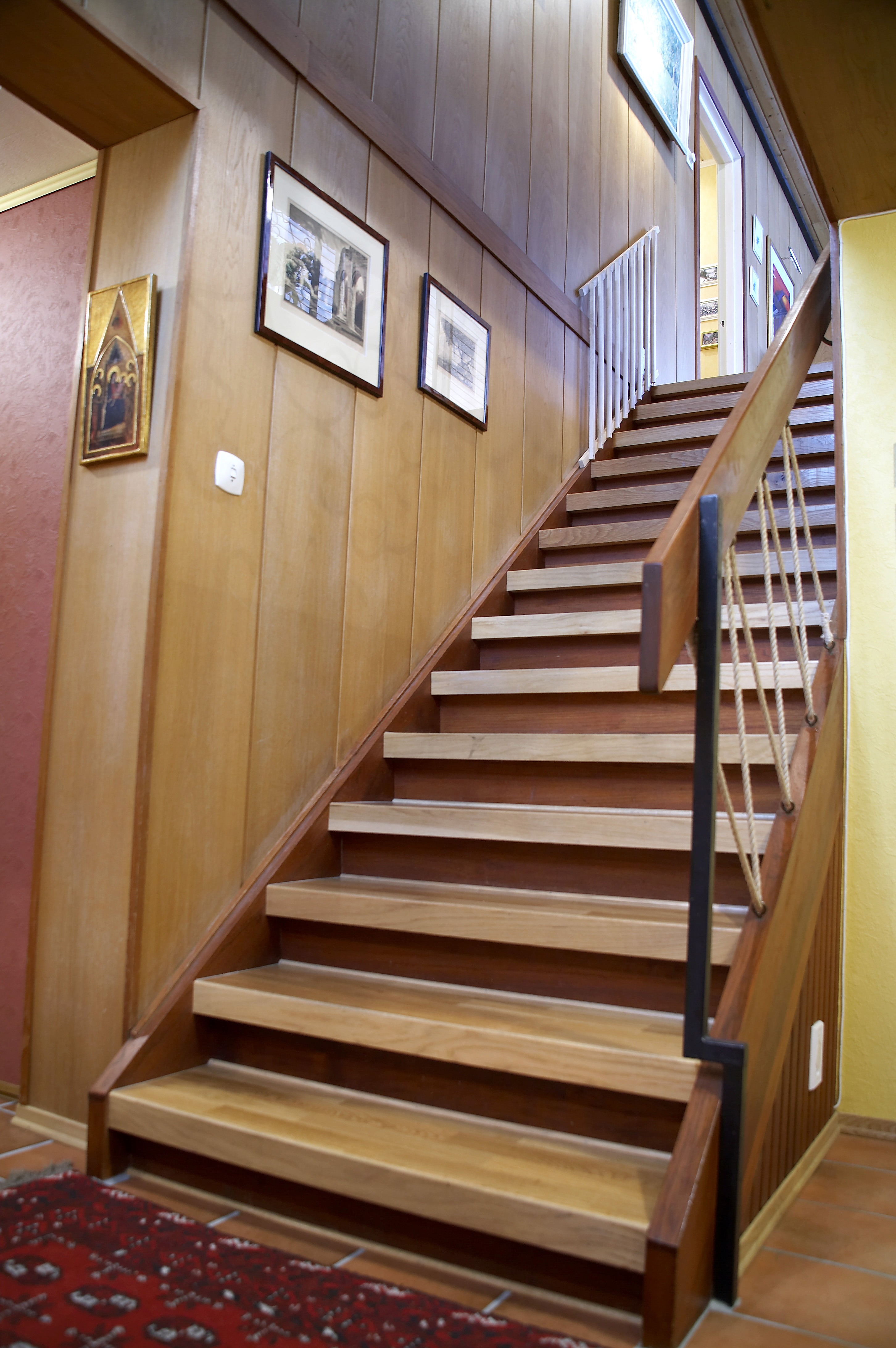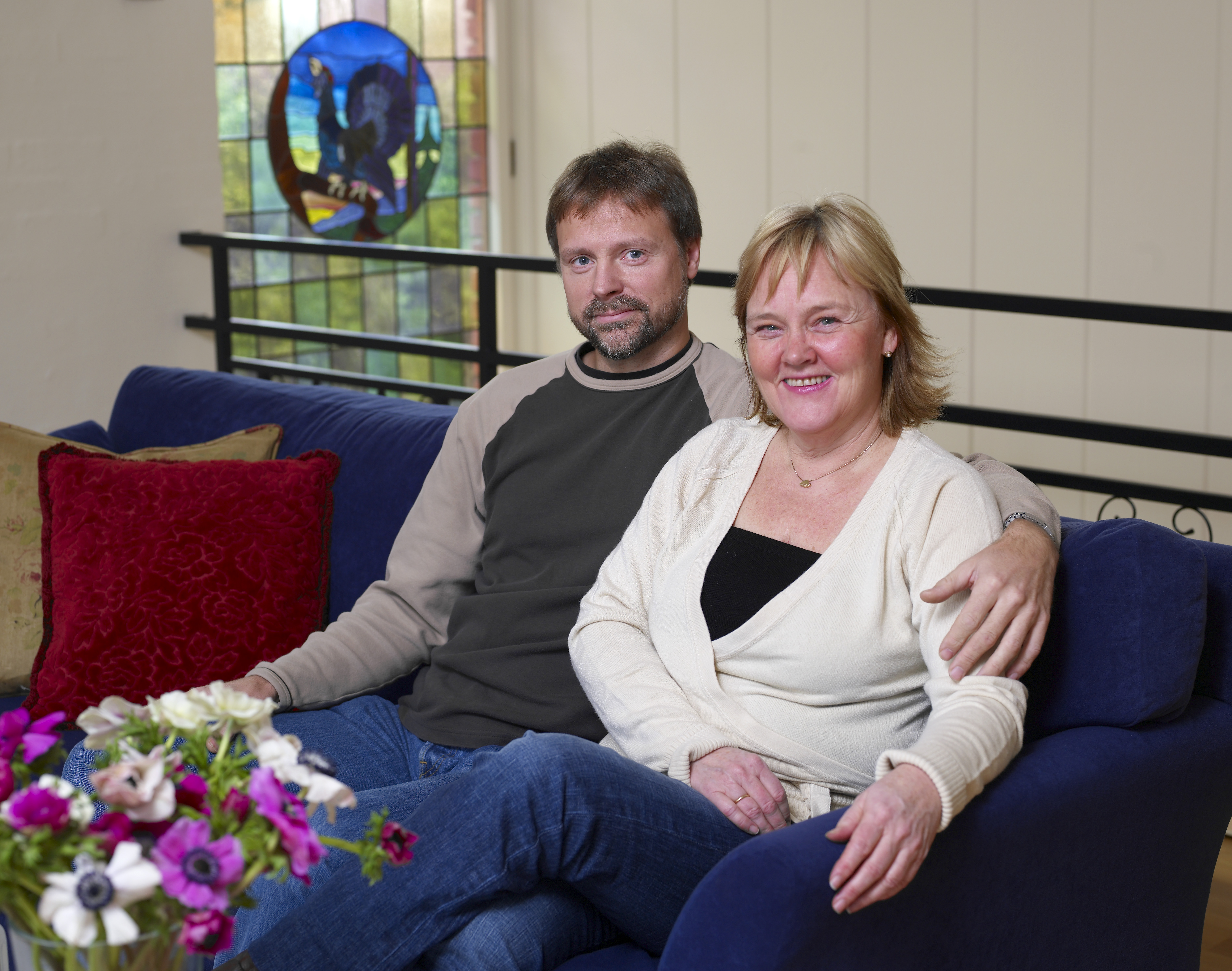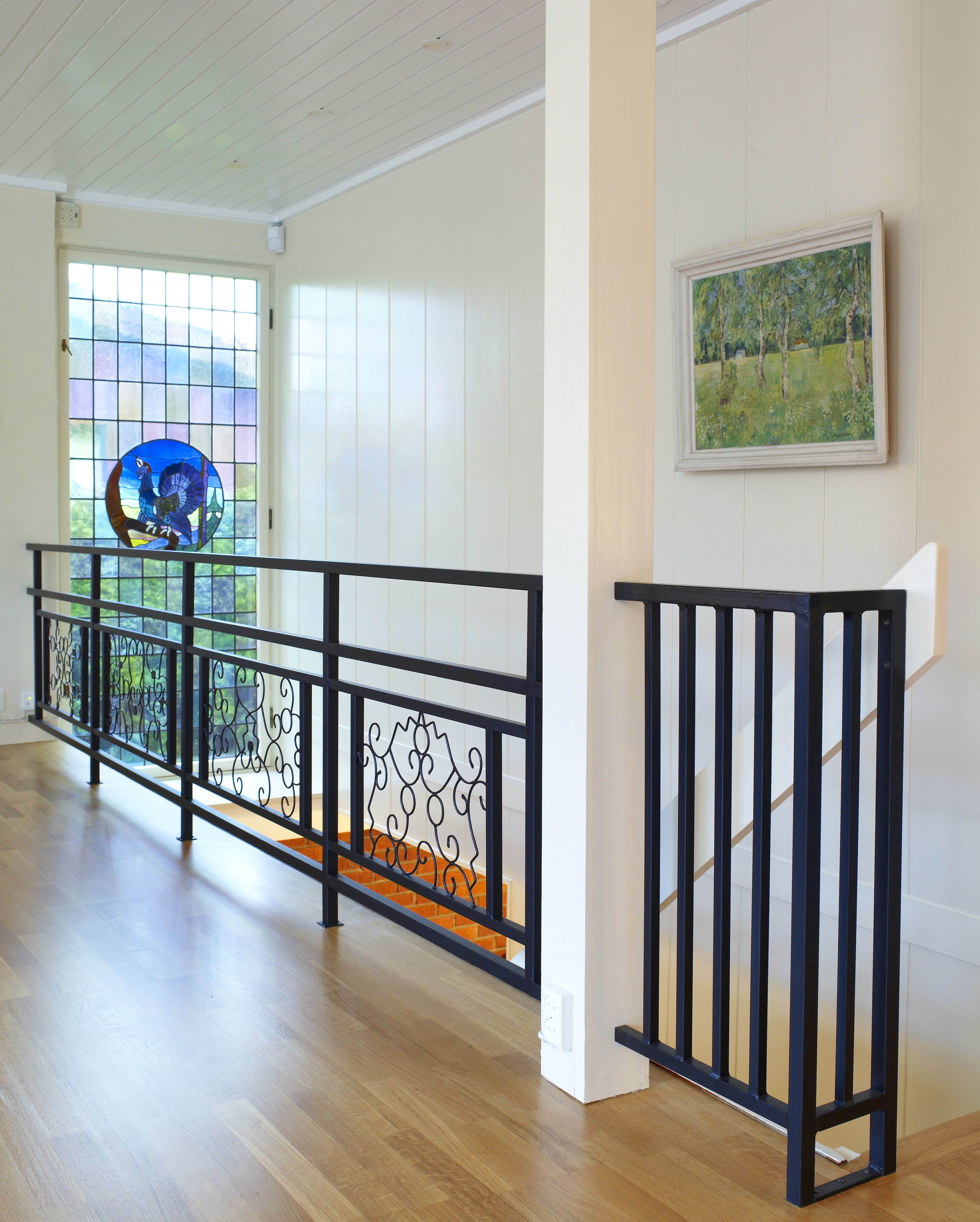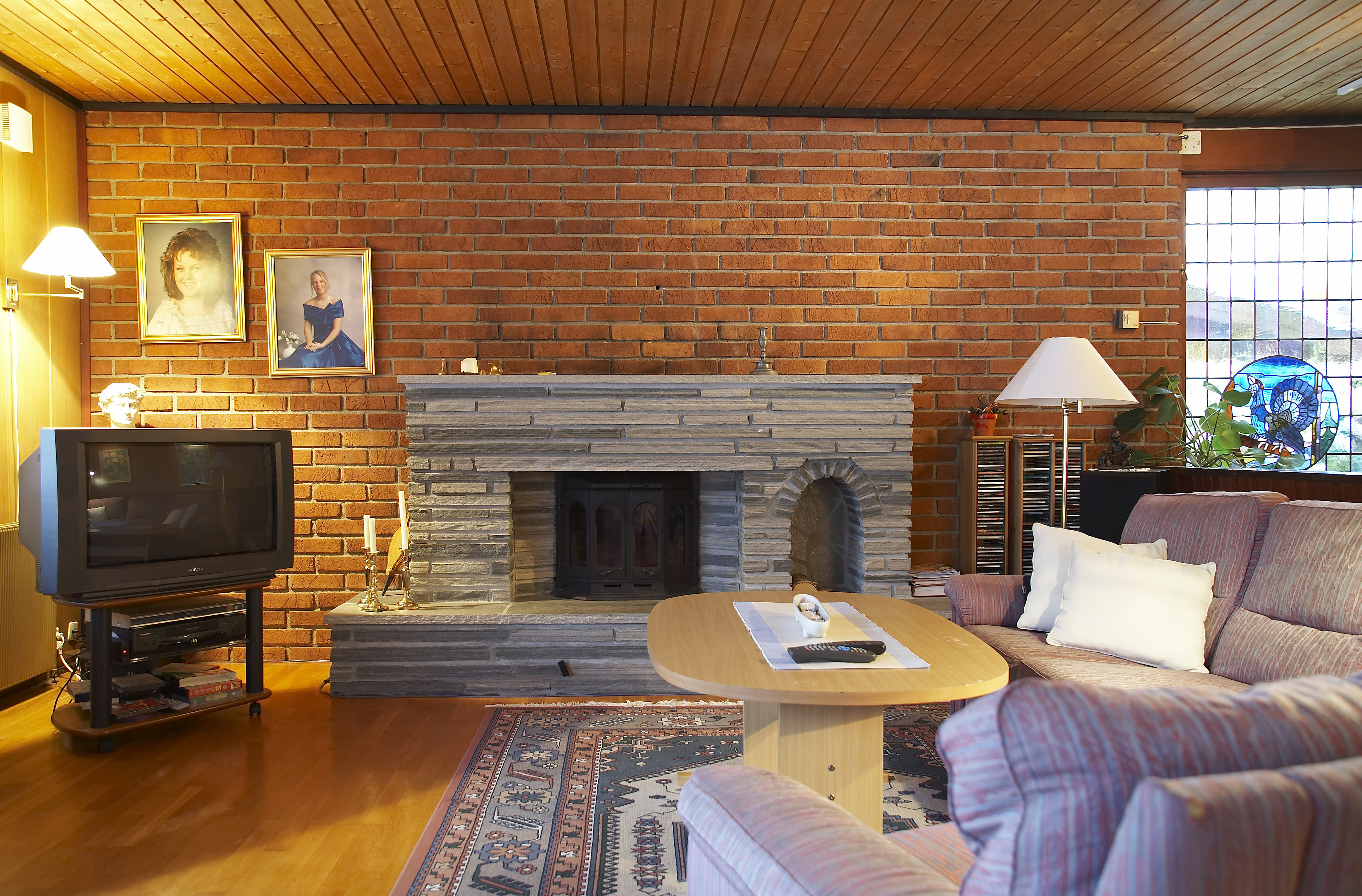 Huset har 140 kvm grunnflate i hver etasje og store rom. At stuen er hele 14 meter lang og har vinduer langs hele den ene veggen, gjør den vanskelig å møblere. Marianne og Hans Martin var lei av alt det mørke panelet, den dominerende peisen og mursteinsveggen. Nå ville de fornye rommet, rydde opp i møblene og skape mer ro og hygge. De ville ha lyse, nøytrale veggfarger, slik at de senere enkelt kunne bytte farger på møbler og gjenstander uten å behøve å pusse opp på nytt. Og de ønsket seg en peistype i engelsk stil, men var redd for å gjøre noe med mursteinsveggen. For å få hjelp og gode råd kontaktet de interiørkonsulent Ellen Skifjeld Lønnestad. Men da Ellen kom, stoppet hun nede i hallen og spurte: "Hva har dere tenkt å male her?" Og de skjønte at huset er en helhet. De måtte gjøre noe med hallen og trappen også.
