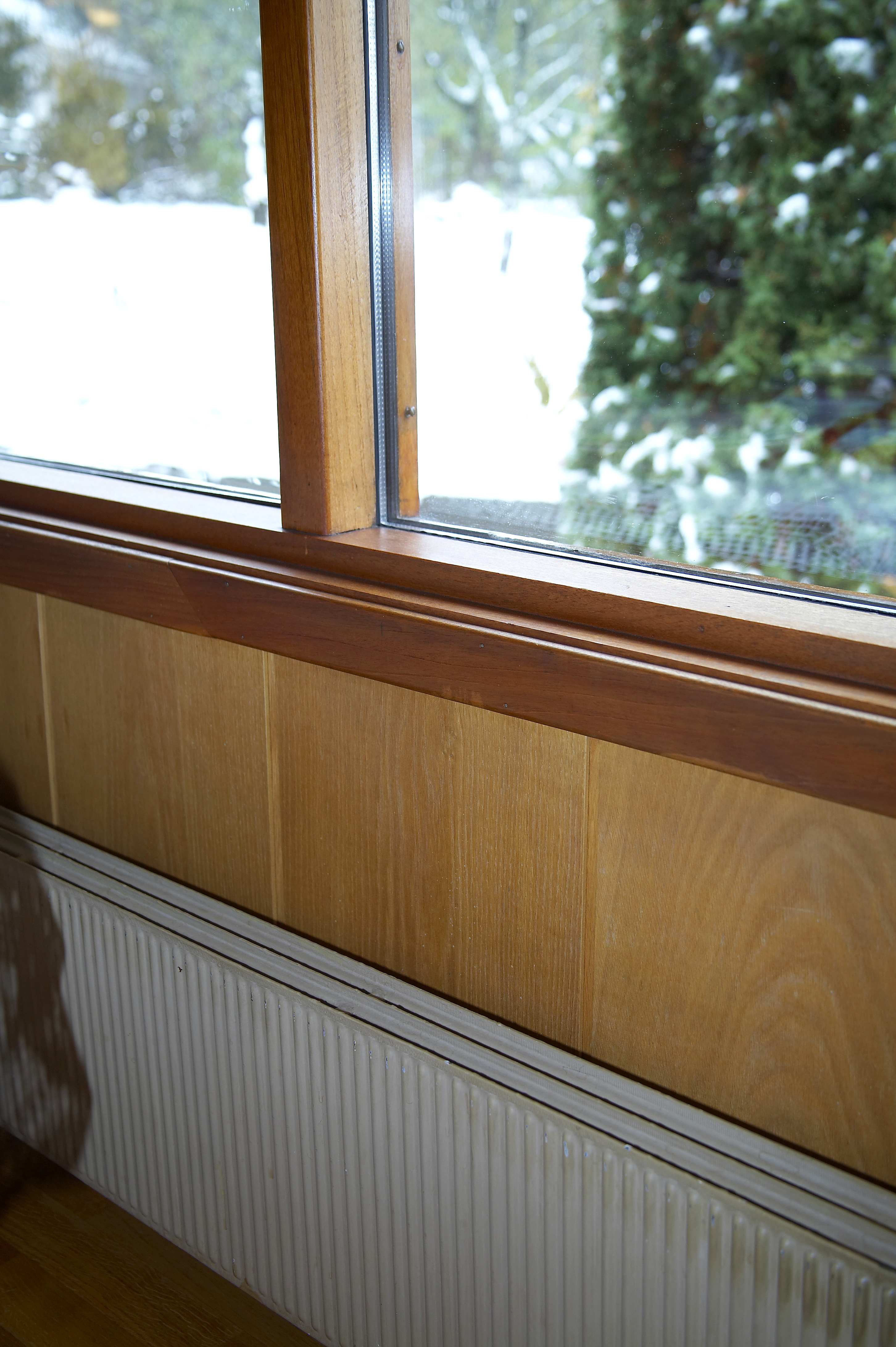 Alt var litt loddent og lummert, med mange ulike møbler og en peis som ikke ble brukt. Det mørke paneltaket fikk rommet til å virke veldig lavt. For å få det mer moderne og lettere måtte peisveggen bort, og alt panelet males i en lys farge. Så måtte vi sortere og samle møblene, og sette tingene i system.