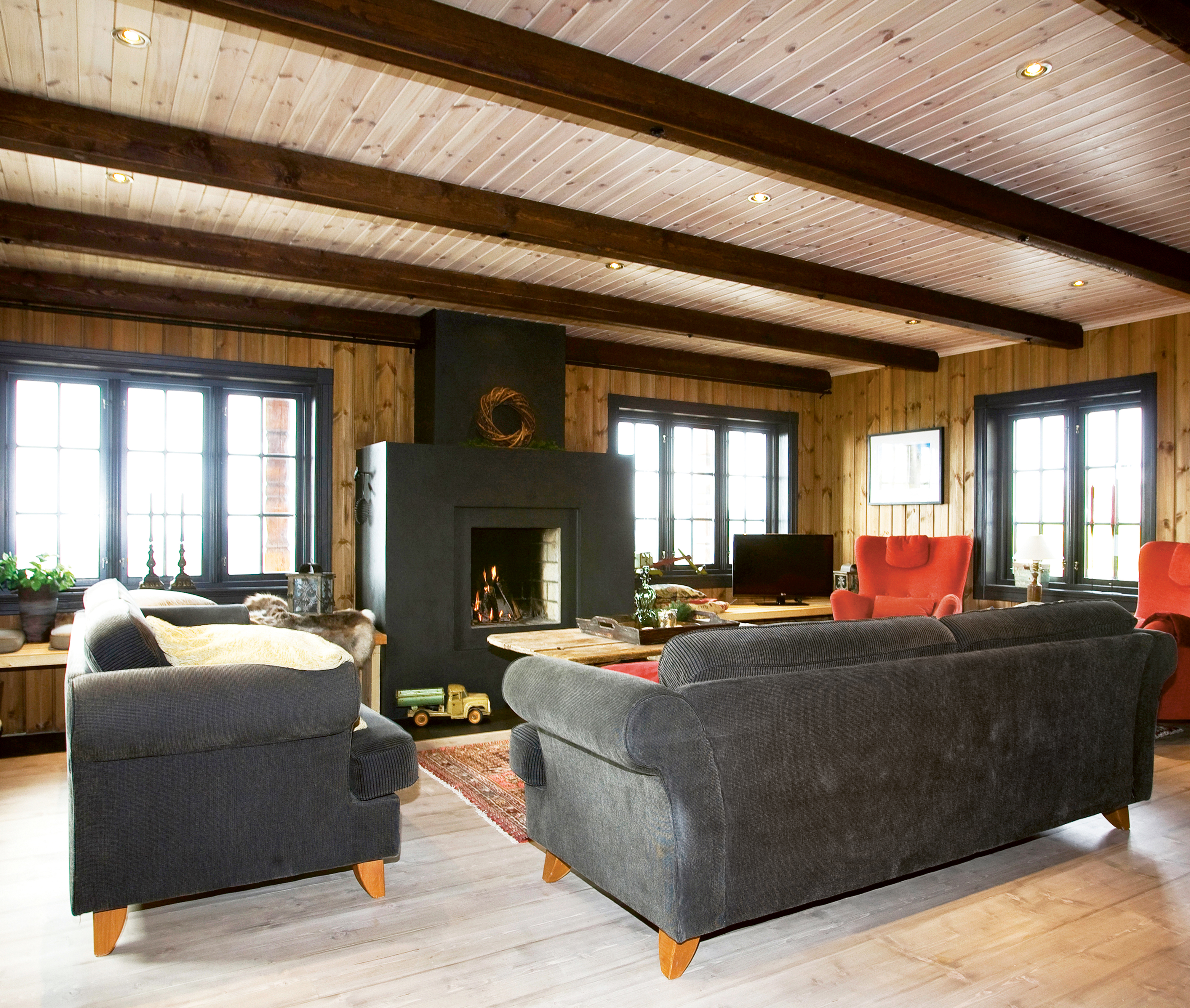 Eierne hadde noen forskjellige ønsker og noen felles. Han: Strøm, vann, kloakk, vannbåren varme, varmepumpe og badstue. Hun: Utsikt, rominndeling, treverk, panel, vinduer og farger. Så ble det å sette det hele sammen.