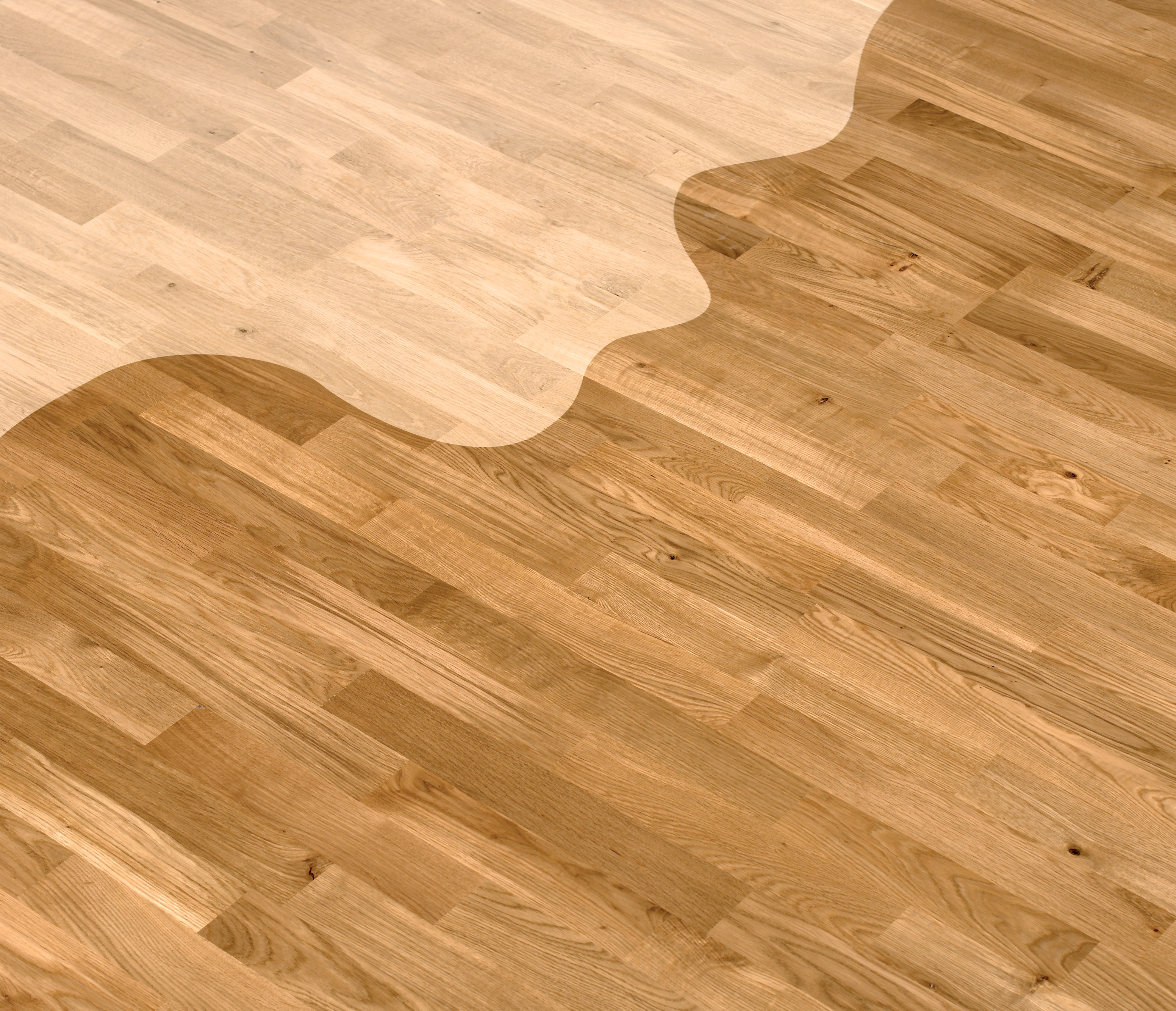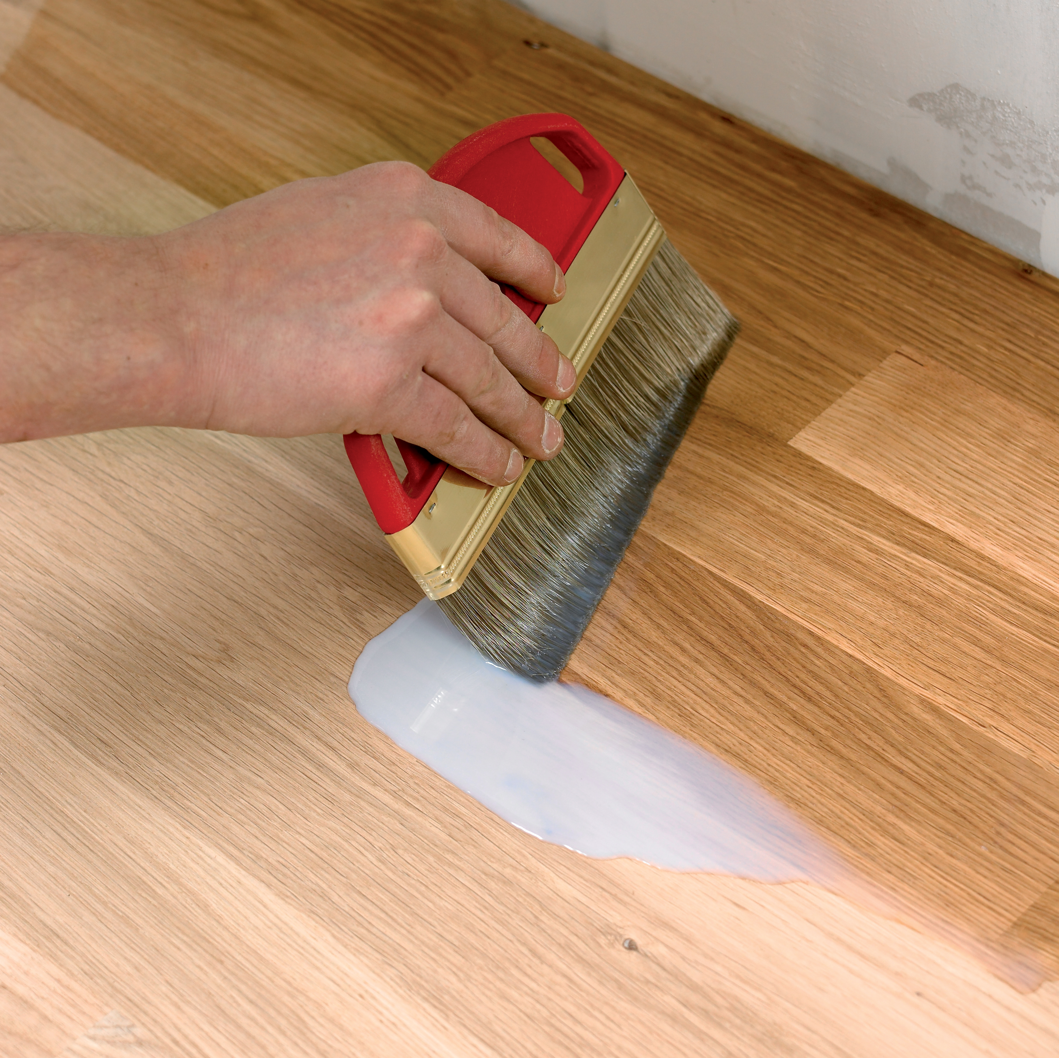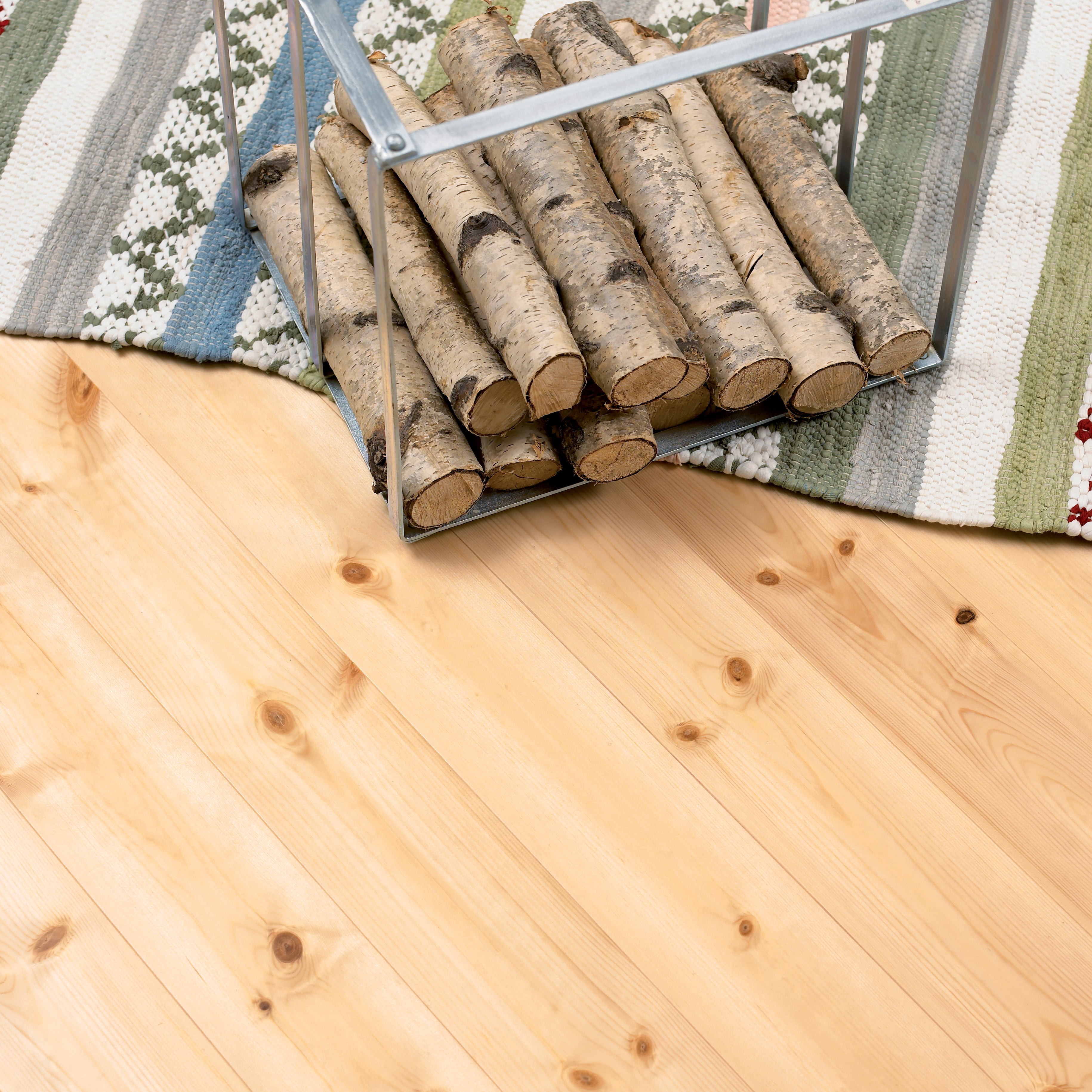 Begynn alltid med en rens av gulvet. Da unngår du at smuss og skitt blir slipt ned i gulvet, noe som igjen medfører at lakken flasser. Bruk en gulv-/panelrens i samme serie som lakken du har valgt.