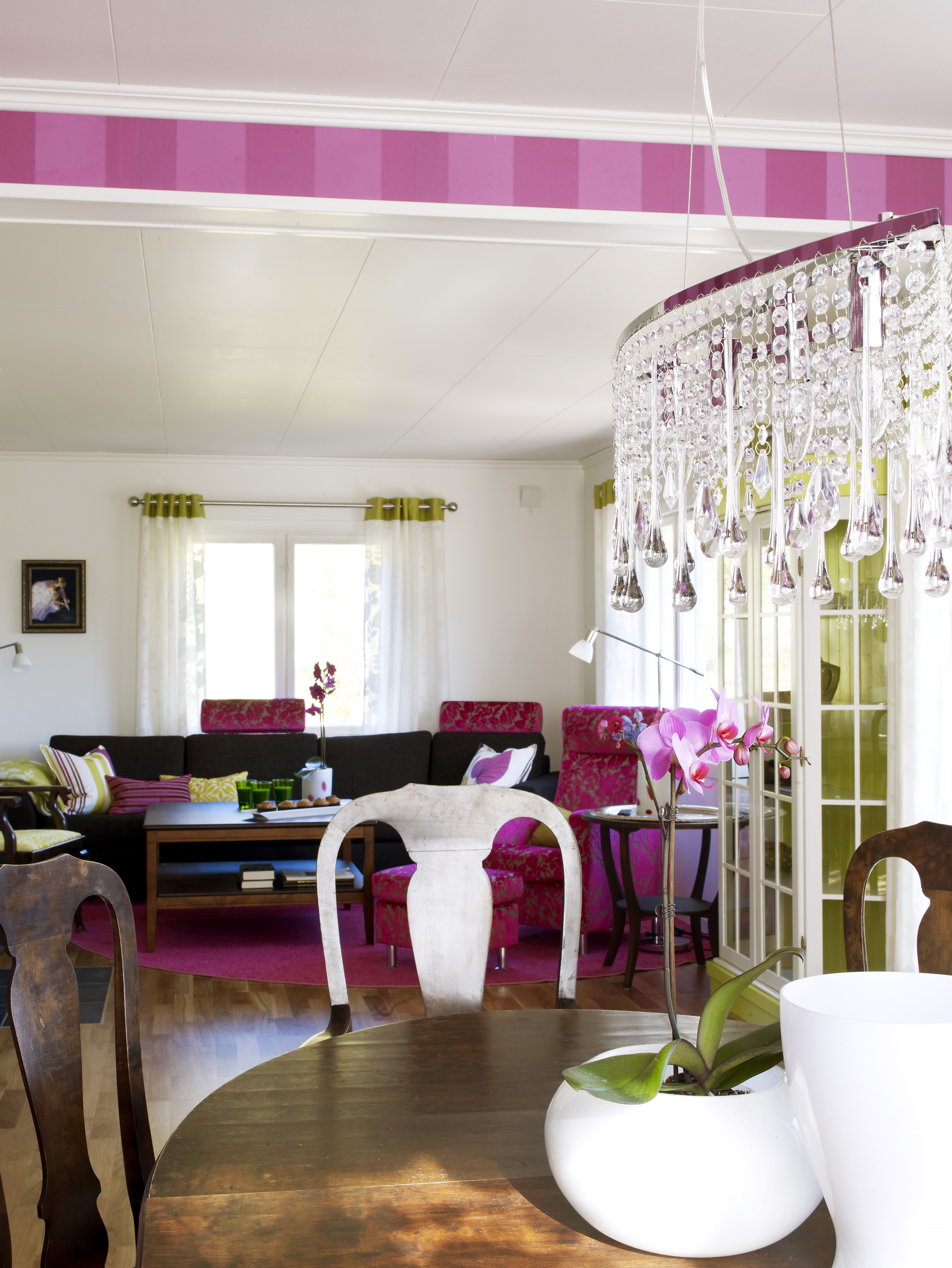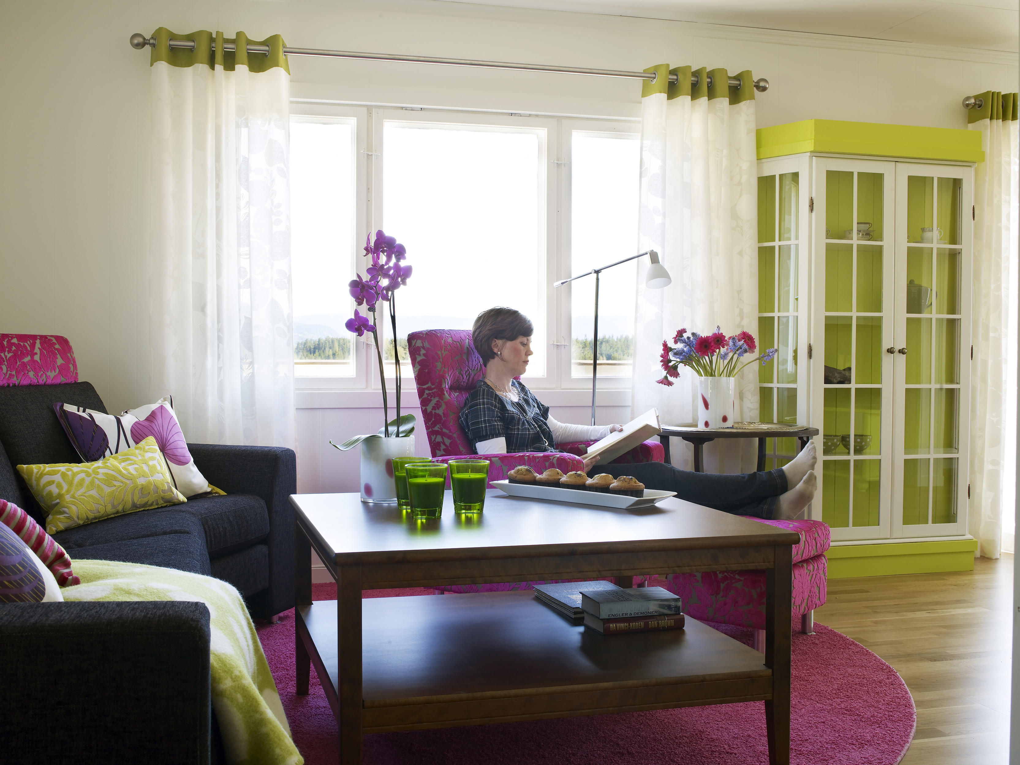 - Rommet er langt og smalt med mange vinduer og dører, noe som låser møbleringen. Dessuten bor vi på landet, 15 minutter til nærmeste by, det gjør det vanskelig å deponere på møbler, tepper og tekstiler, forklarte Liv.