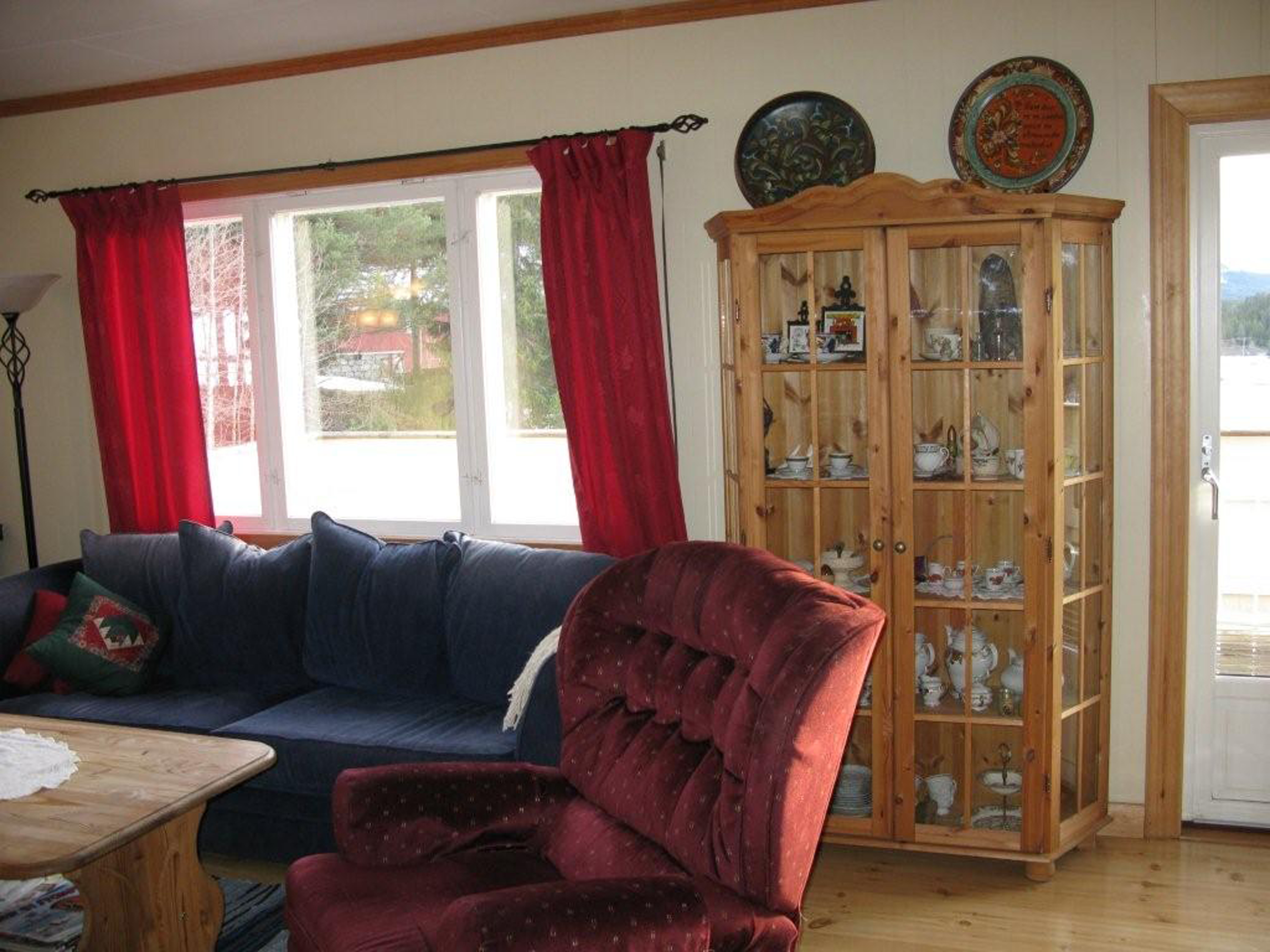 Av møbler hadde rommet gamle sofaer og en hvilestol som tok altfor stor plass, et spisestuemøblement etter mormor, et vitrineskap og en TV-benk i ubehandlet furu.