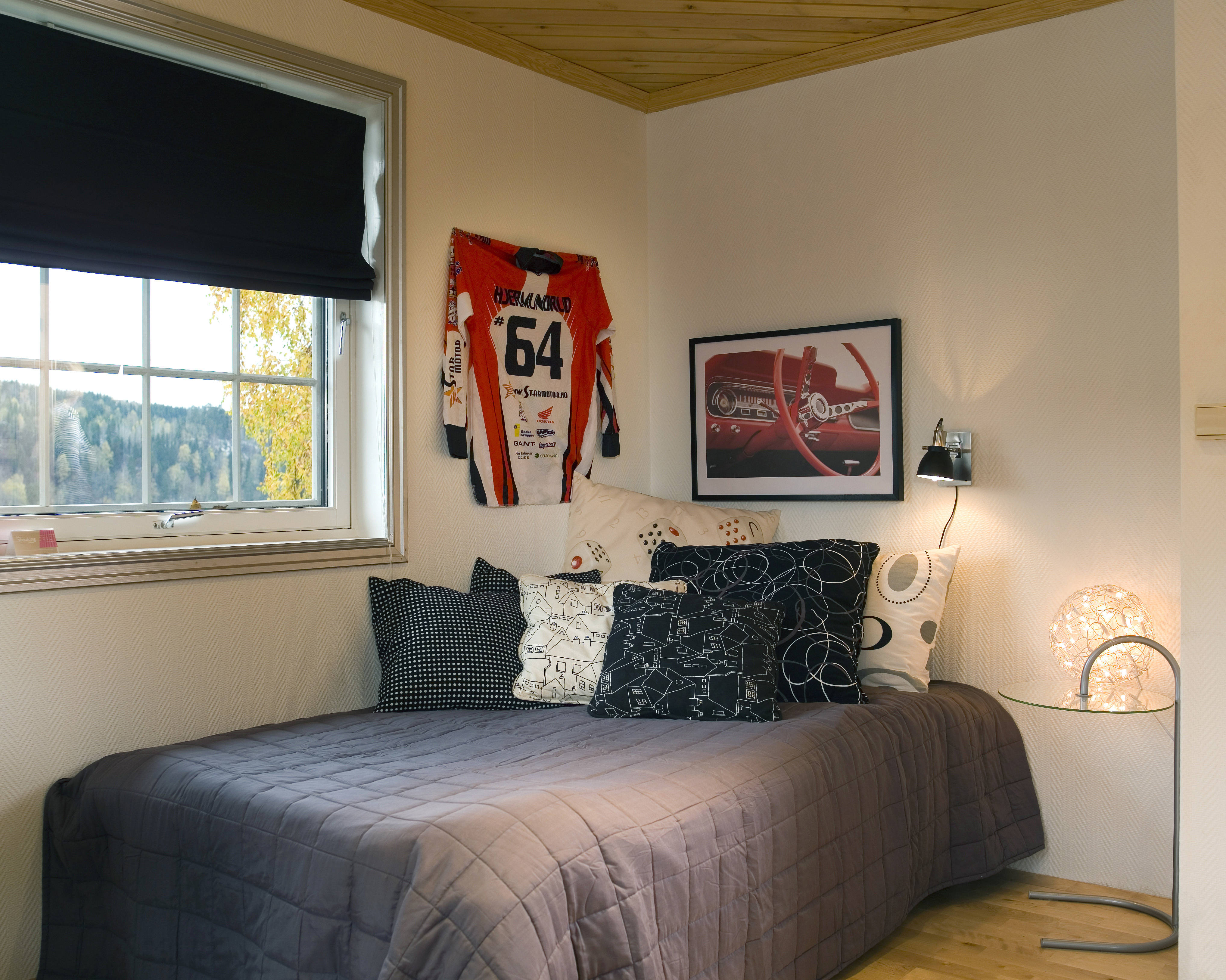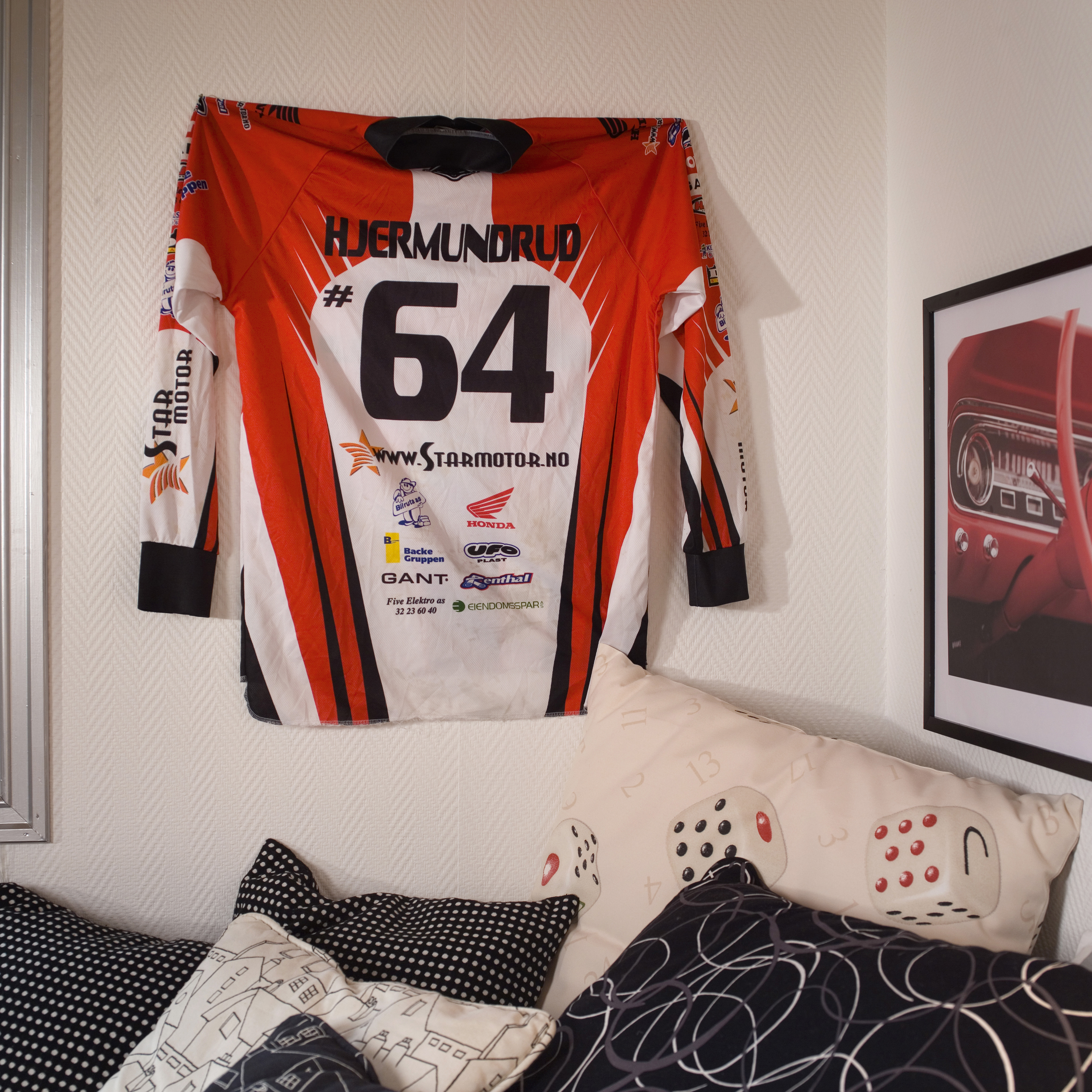 Først ut ble eldstemann, Joachim. Han kjører motocross på høyt plan og er interessert i data. På det nye rommet sitt ønsket han fargene sort og sølv, ispedd røde detaljer. Det var viktig å få plass til et skikkelig pokalskap der han kunne stille ut premiene sine fra motocross-konkurransene.